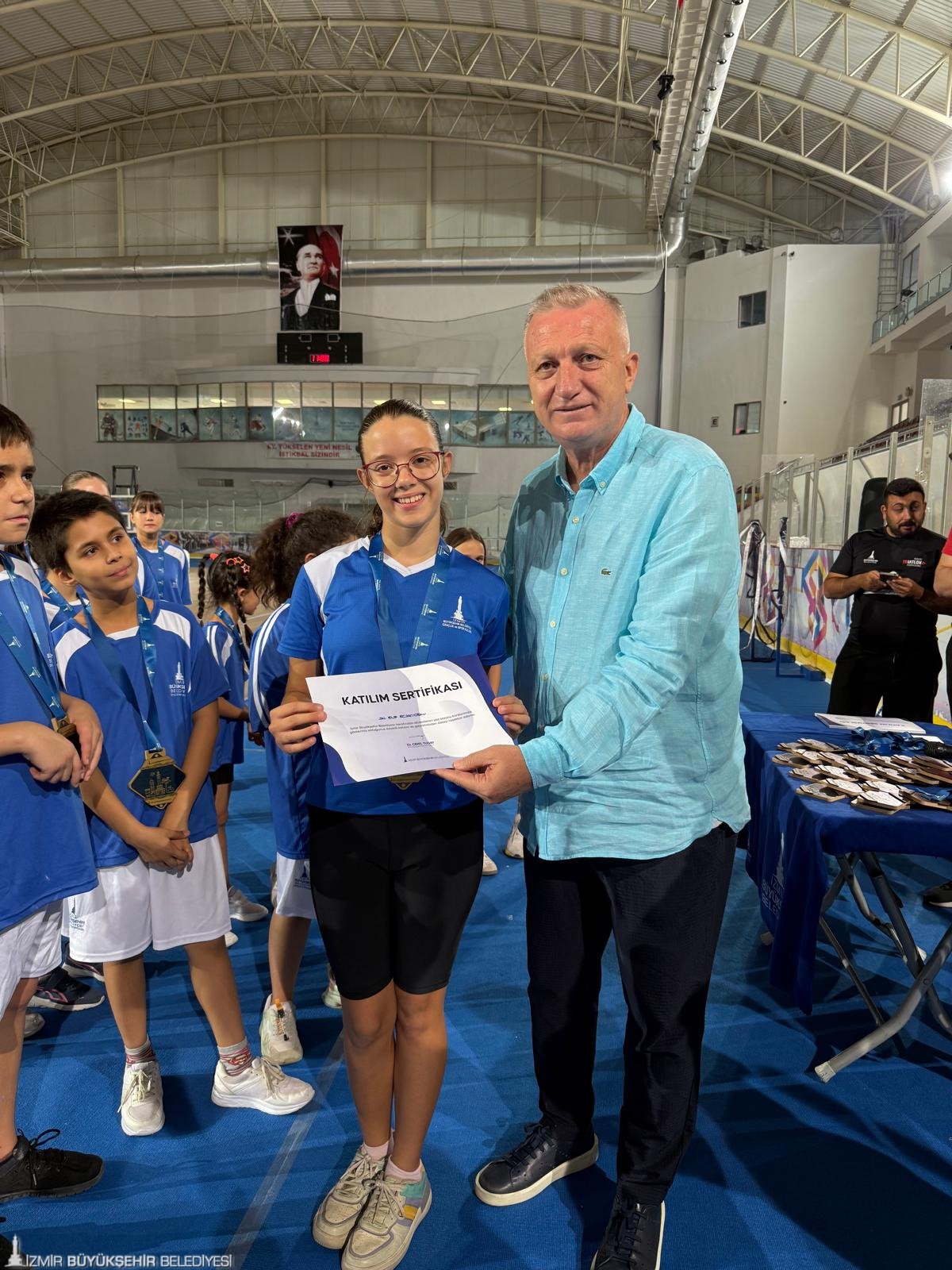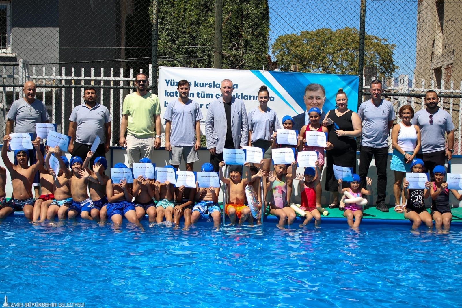 Minik yüzücüler ve yaz spor okullarına katılan çocuklar düzenlenen törenle sertifika ve madalyalarını aldı. Törene katılan İzmir Büyükşehir Belediyesi Gençlik ve Spor Hizmetleri Dairesi Başkanlığı Spor Çalışmaları Şube Müdürü Gürcan Temizel, “Portatif havuz sayımızı gelecek yaz artırarak çok daha fazla çocuğumuza yüzme öğreteceğiz. İzmir Büyükşehir Belediyesi olarak sporu her yaş grubuna ve toplumun tüm kesimlerine ulaştırmayı hedefliyoruz” dedi.