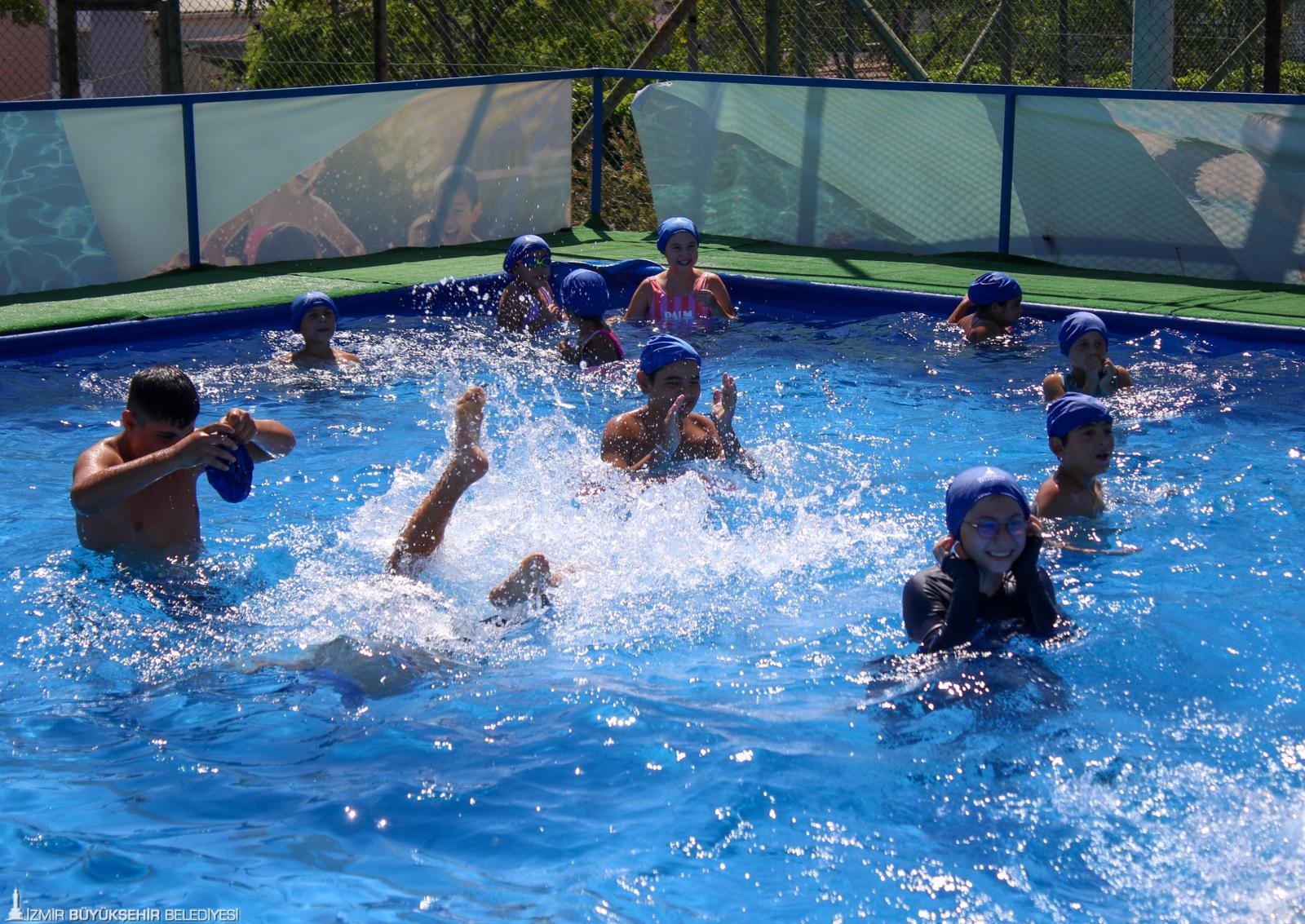 Konak Pazaryeri Mahallesi ve Bayraklı Cengizhan Mahallesi’nde 18 Temmuz’dan itibaren hizmet vermeye başlayan portatif havuzlarda 3 bin 200 öğrenci yüzme öğrendi. Haftanın altı günü 10.00-18.00 saatleri arasında uzman antrenörlerden eğitim alan çocuklar yaz tatilini eğlenerek ve yüzme öğrenerek geçirdi.