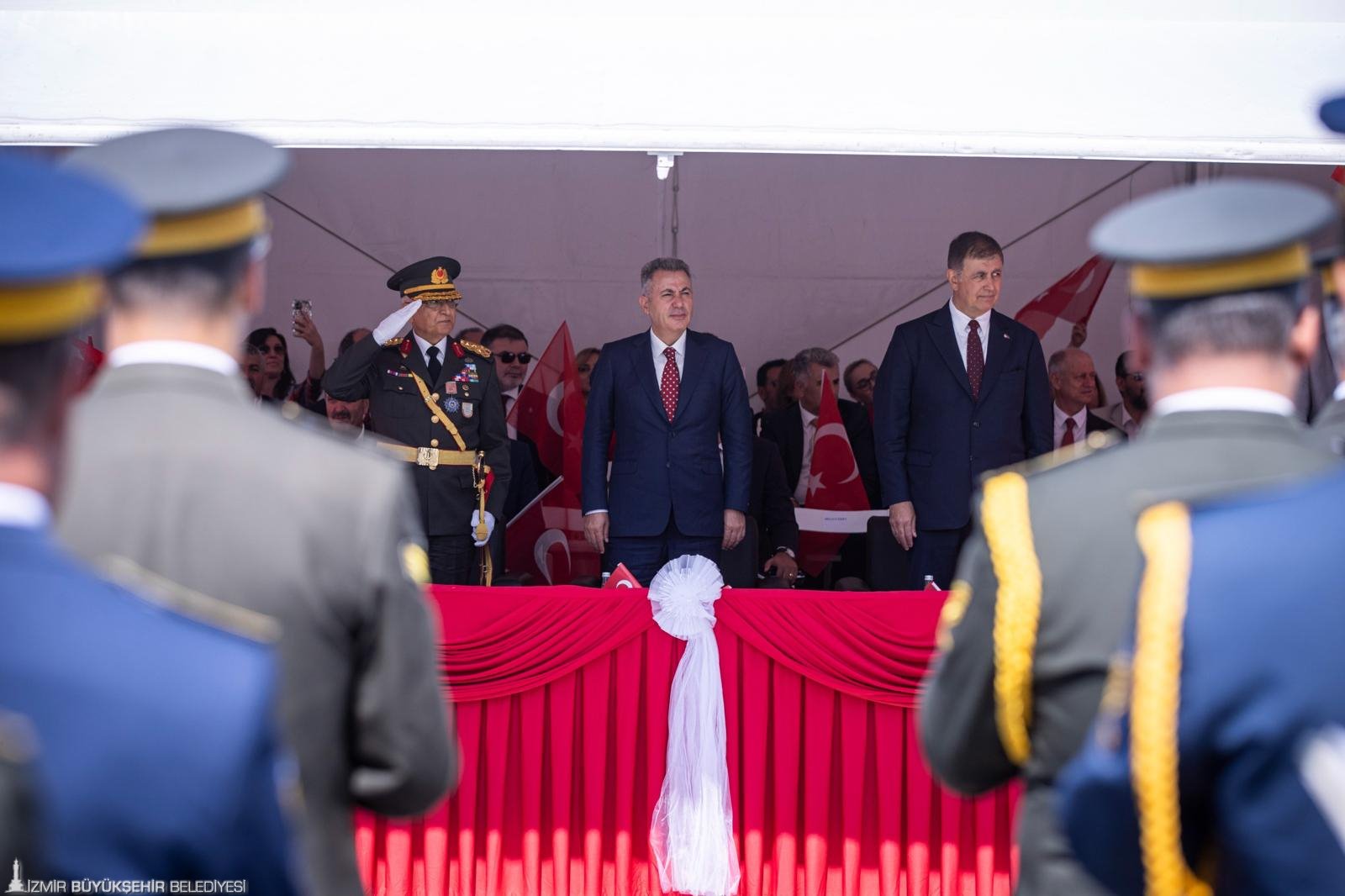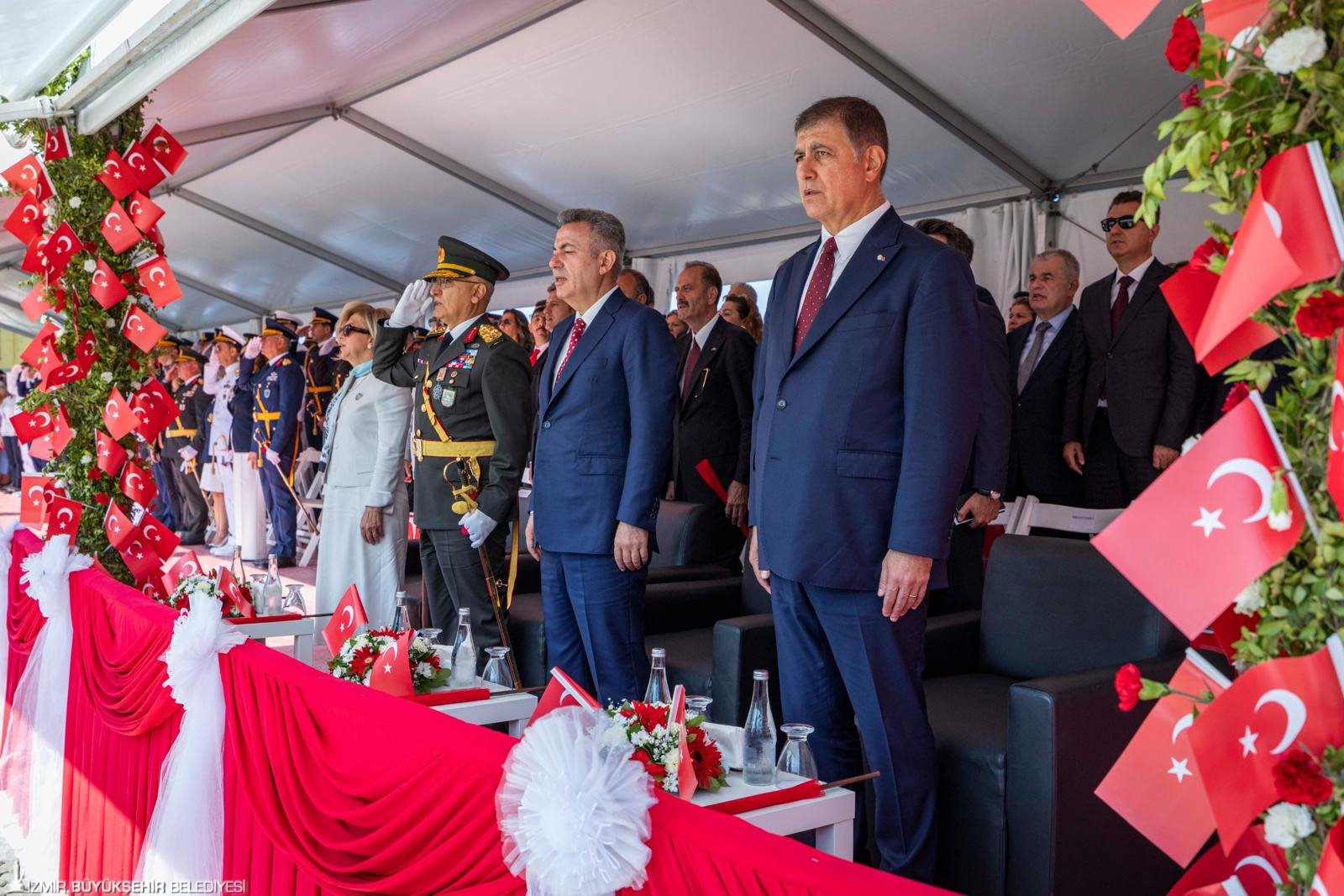 İzmir’de 30 Ağustos Zaferi’nin 103’üncü yıl dönümü kutlamaları Cumhuriyet Meydanı'ndaki törenlerle devam etti. Törene katılan İzmir Büyükşehir Belediye Başkanı Dr. Cemil Tugay, İzmir Valisi Dr. Süleyman Elban, Ege Ordusu ve Garnizon Komutanı Orgeneral İrfan Özsert yurttaşların bayramını kutladı.