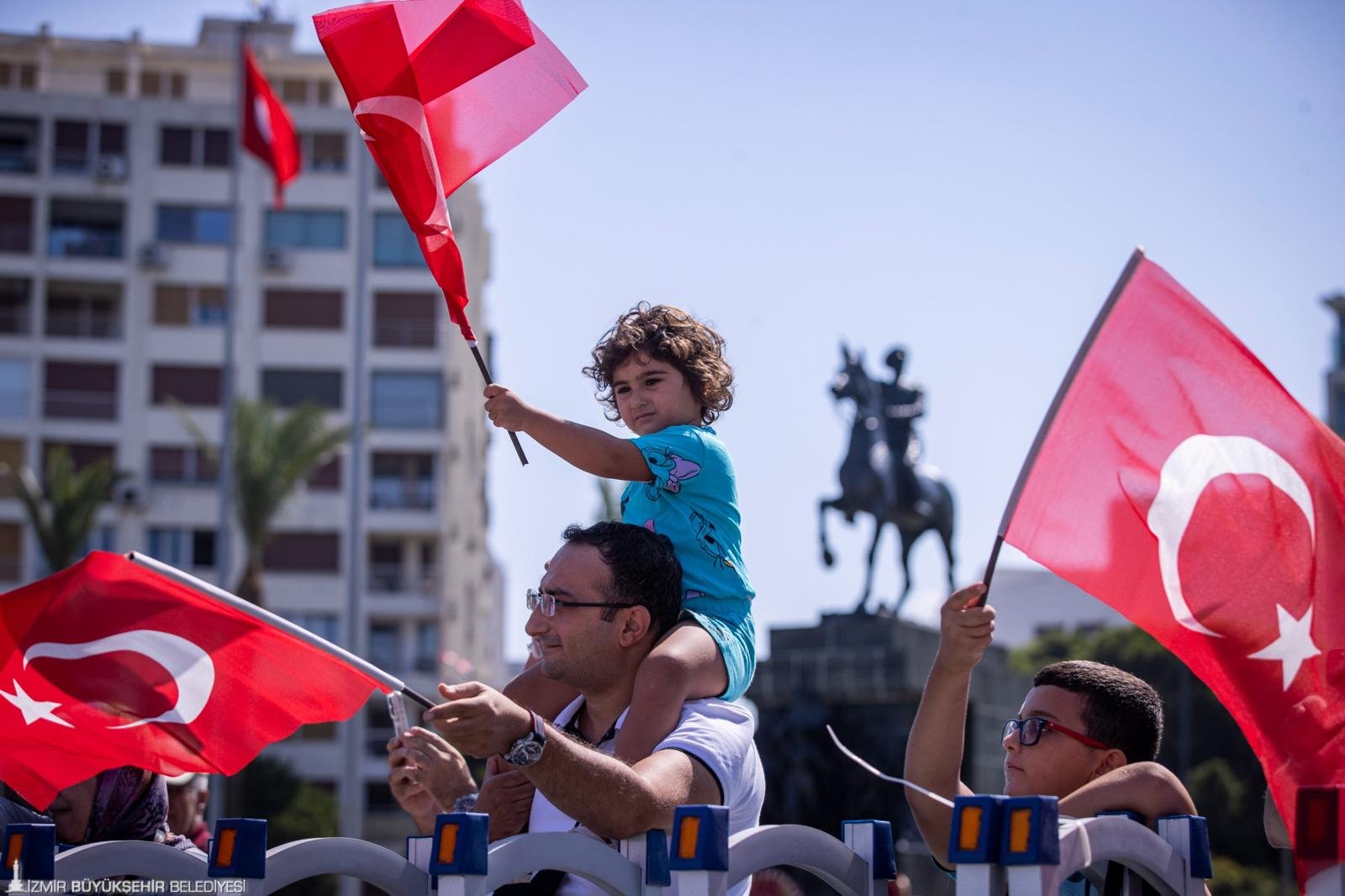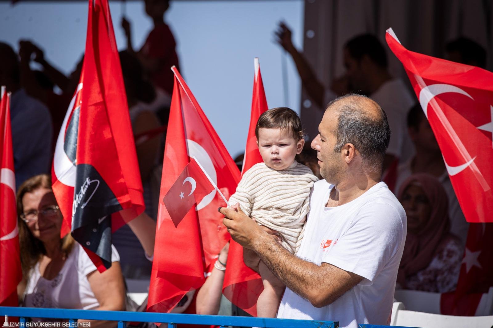 30 Ağustos Zafer Bayramı kutlamaları Cumhuriyet Meydanı'ndaki törenle devam etti. Törene katılan İzmir Büyükşehir Belediye Başkanı Dr. Cemil Tugay, Ege Ordusu ve Garnizon Komutanı Orgeneral İrfan Özsert, İzmir Valisi Dr. Süleyman Elban yurttaşların bayramını kutladı. Türk bayrakları ile alanı dolduran İzmirliler, bayram coşkusuna ortak oldu. Törende İstiklal Marşı’nın okunmasının ardından Cumhurbaşkanı Recep Tayyip Erdoğan’ın mesajı paylaşıldı.