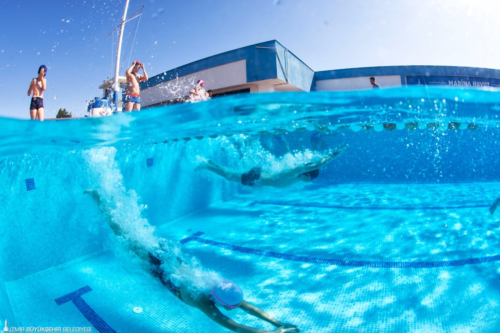 İzmir Marina, yaz tatilini yüzme öğrenerek değerlendirmek isteyen çocuklar için de fırsat sunuyor. İzmir Büyükşehir Belediyesi Gençlik ve Spor Dairesi Başkanlığı Buz ve Su Sporları Şube Müdürlüğü iş birliğiyle, İzmir Marina Eğitim Havuzu'nda çocuklara özel yüzme dersleri başladı. Uzman eğitmenler eşliğinde bir ay süren bu programla minikler hem yüzme öğreniyor hem de yazın tadını çıkarıyor. Başvurular, Sporİzmir uygulaması üzerinden yapılıyor.