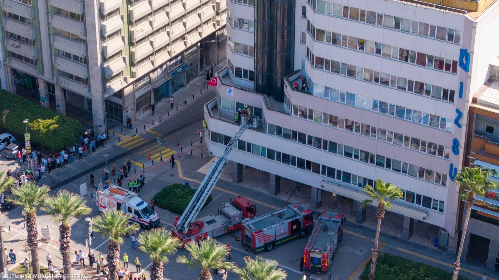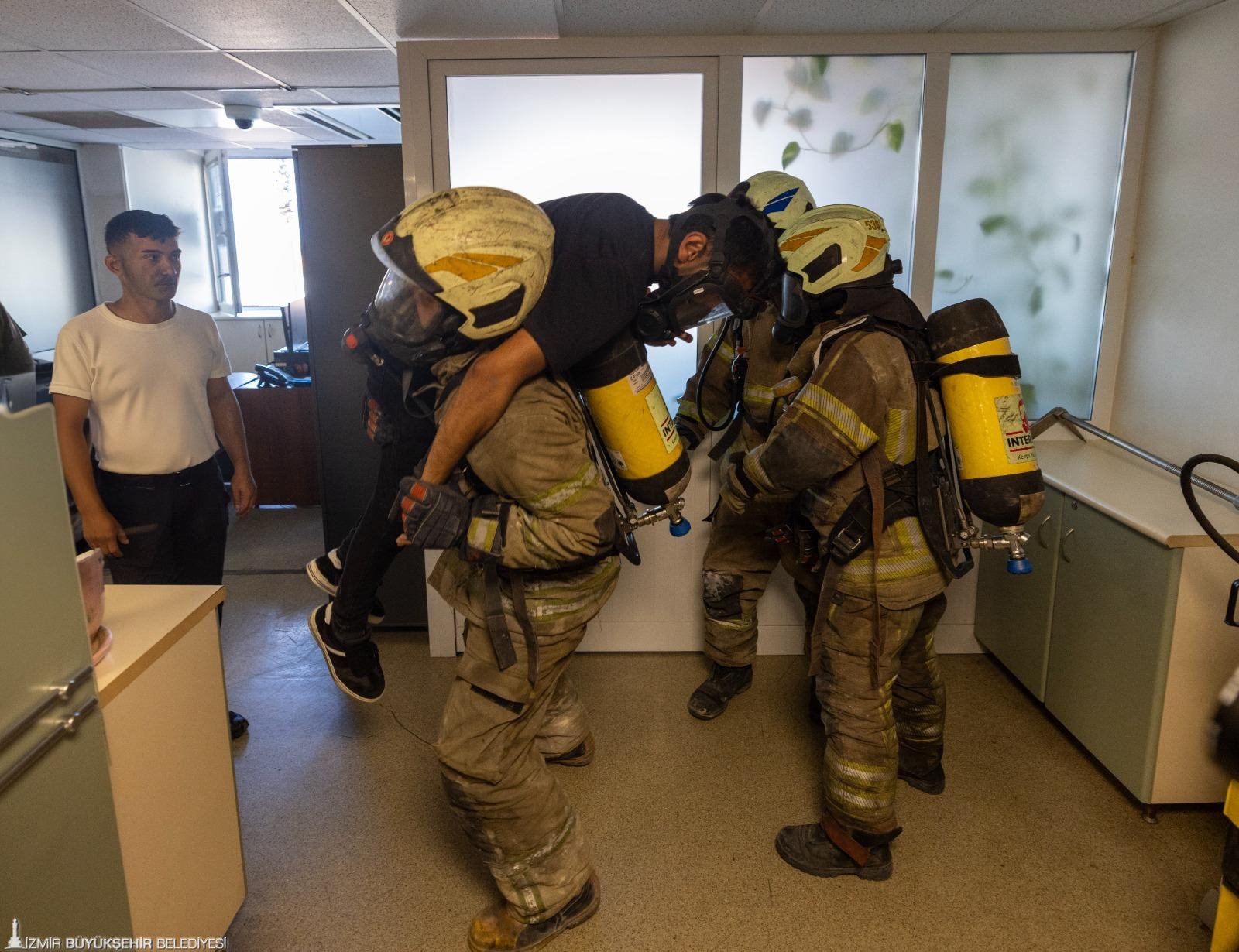 İtfaiye Haftası etkinlikleri kapsamında İzmir Büyükşehir Belediyesi İtfaiye Daire Başkanlığı, İZSU Genel Müdürlüğü Afet ve Acil Durum Yönetimi Birimi iş birliği ile Konak’taki 8 katlı İZSU Genel Müdürlüğü binasında yangın söndürme, tahliye ve kurtarma tatbikatı gerçekleştirdi. Tatbikat senaryosuna göre binanın ikinci katındaki santral odasında yangın çıktı. Santral görevlisi yangına müdahale etmeye çalıştı ancak başarılı olamayınca durumu İZSU acil durum ekiplerine bildirdi. Ekipler, 112 Acil Çağrı Merkezi’ne haber verdi. İhbar üzerine İzmir İtfaiyesi, 2 AKS aracı, 1 merdivenli araç, 2 arazöz ve 1 kurtarma aracıyla hızla olay yerine sevk edildi.