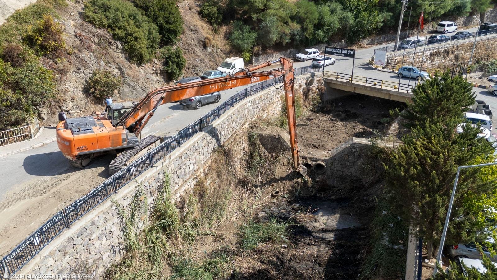 İZSU, kent merkezindeki Meles, Arap, Manda ve Mavişehir dereleri başta olmak üzere 98 dereyi temizledi. Bu derelerden yaklaşık 100 bin ton malzeme çıkarıldı. Çalışmalar sayesinde Körfez’e kum ve çakıl taşınması engellendi, yağışlarda yaşanabilecek taşkın riskleri ortadan kaldırıldı. Derelerin ağızları sedde ile kapatılıp içlerindeki su boşaltıldı, çamurlar uzun bomlu kepçelerle çıkarıldı.