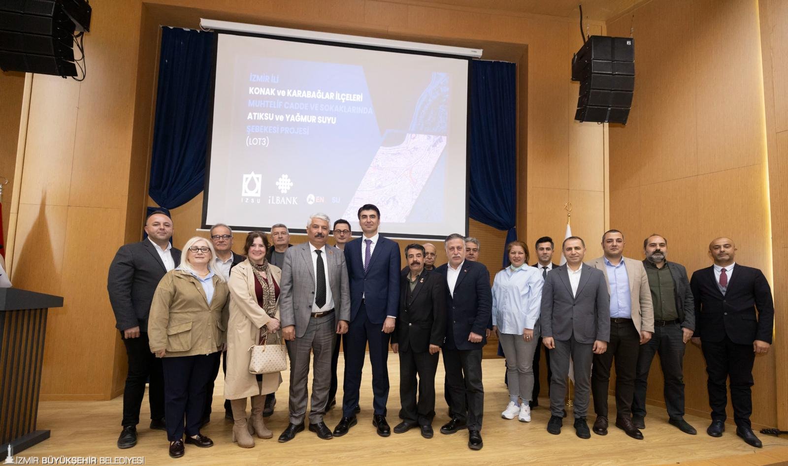 Toplantıda konuşan İZSU Genel Müdürü Gürkan Erdoğan, üç projeden ilkinin Bayraklı ve Konak ilçelerindeki bir bölüm mahalleyi, ikinci projenin Alsancak’ta yeni ve yoğun yapılaşmanın olduğu Ege Mahallesi’ni kapsadığını belirterek, “Üçüncü projemizde Karabağlar ilçemizde ve yine Konak’ın mahallelerinde büyük bir altyapı çalışması yapacağız. Uzun ve meşakkatli sürecin son safhasındayız. Bu çalışmalar tamamlandıktan sonra sahile kadar eğimli olan bu bölgelerde hem taşkınlara dirençli kentsel altyapıyı oluşturmuş olacağız hem de Körfez’de kirliliğin önlenmesine büyük bir katkı koymuş olacağız” dedi.