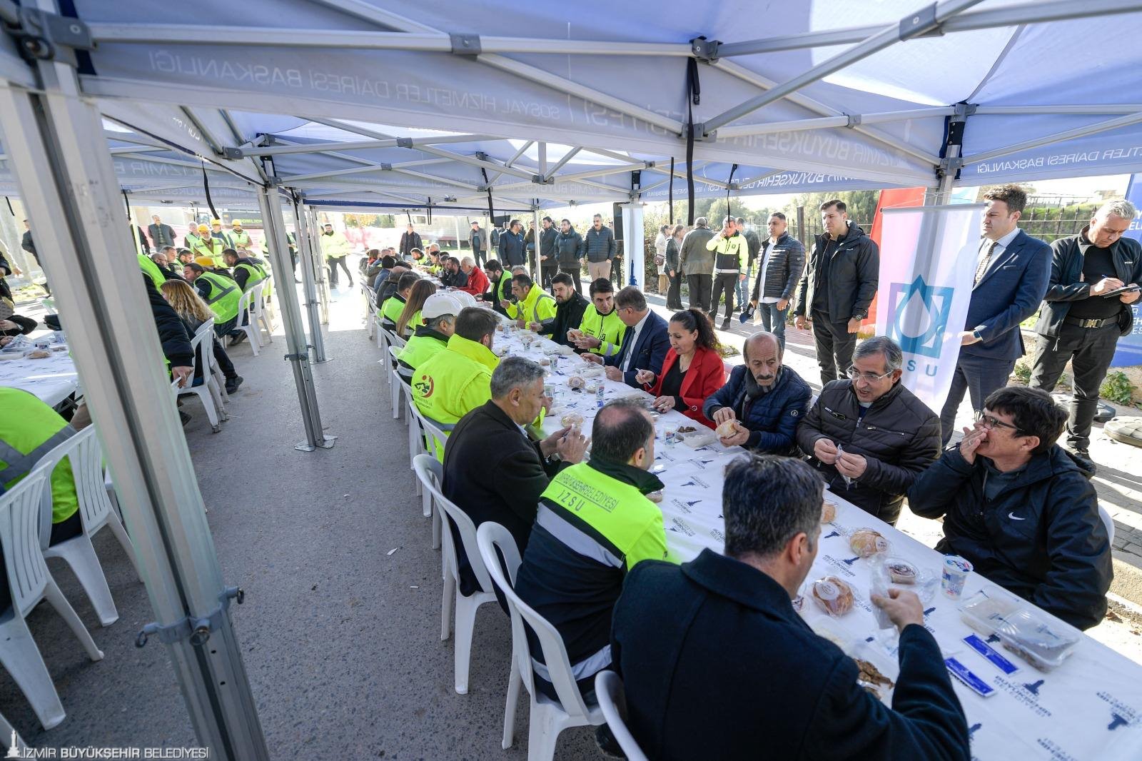 İZSU ile birlikte yol yürümekten duyduğu gururu ifade eden İzmir Büyükşehir Belediye Başkanı Dr. Cemil Tugay, “Siz emekçilere asla hakkınızı ödeyemeyiz. İzmir için 24 saat çalışarak şehrin alt yapısını güçlendiriyorsunuz. Bizler büyük bir aileyiz. Her biriniz ile gurur duyuyorum. 2025 yılında daha güçlü yatırımlarla şehri kalkındırmayı temenni ediyorum” dedi.
