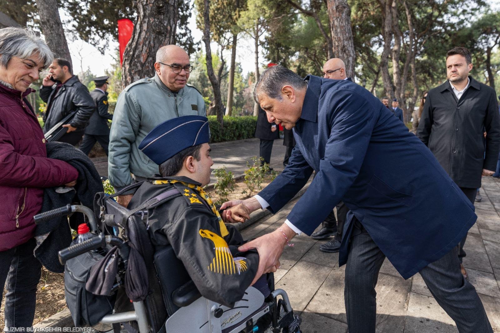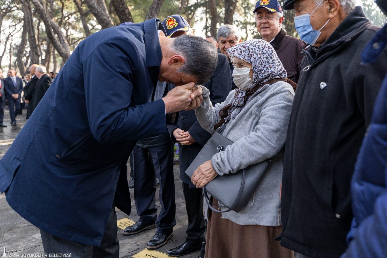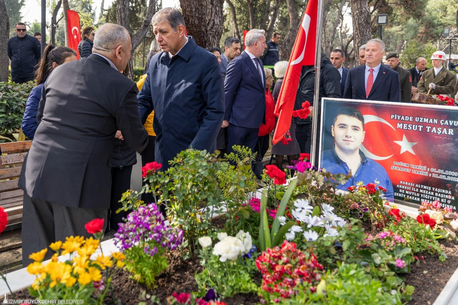 Törende Narlıdere Arkas Mesleki Teknik Anadolu Lisesi öğrencisi Gökçe Kurtcebe, “Çanakkale” adlı şiiri okudu. İzmir Valisi Dr. Süleyman Elban şehitlik defterini imzalandı. Kuran-ı Kerim Tilaveti ve dua okundu. Daha sonra şehit kabirleri ziyaret edildi ve karanfil bırakıldı. Şehitliklere karanfil bırakarak dua okuyan İzmir Büyükşehir Belediye Başkanı Dr. Cemil Tugay, şehit yakınları ve gazilerle de sohbet etti. Tugay, geçtiğimiz günlerde kullandığı F-16 tipi savaş uçağının düşmesi sonucunda şehit olan Hava Pilot Binbaşı İbrahim Bolat’ın kabrini de ziyaret edip ailesine başsağlığı diledi.