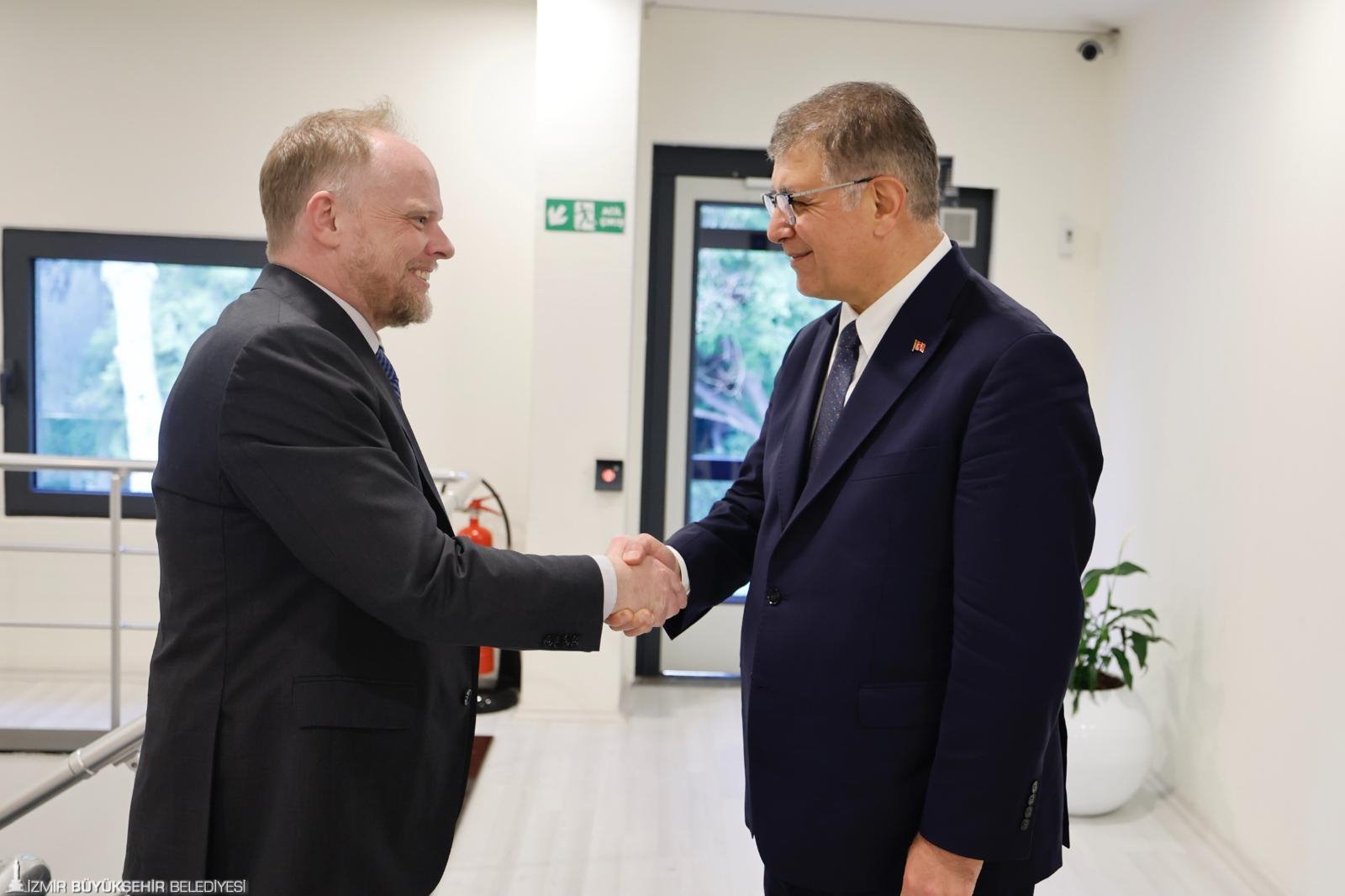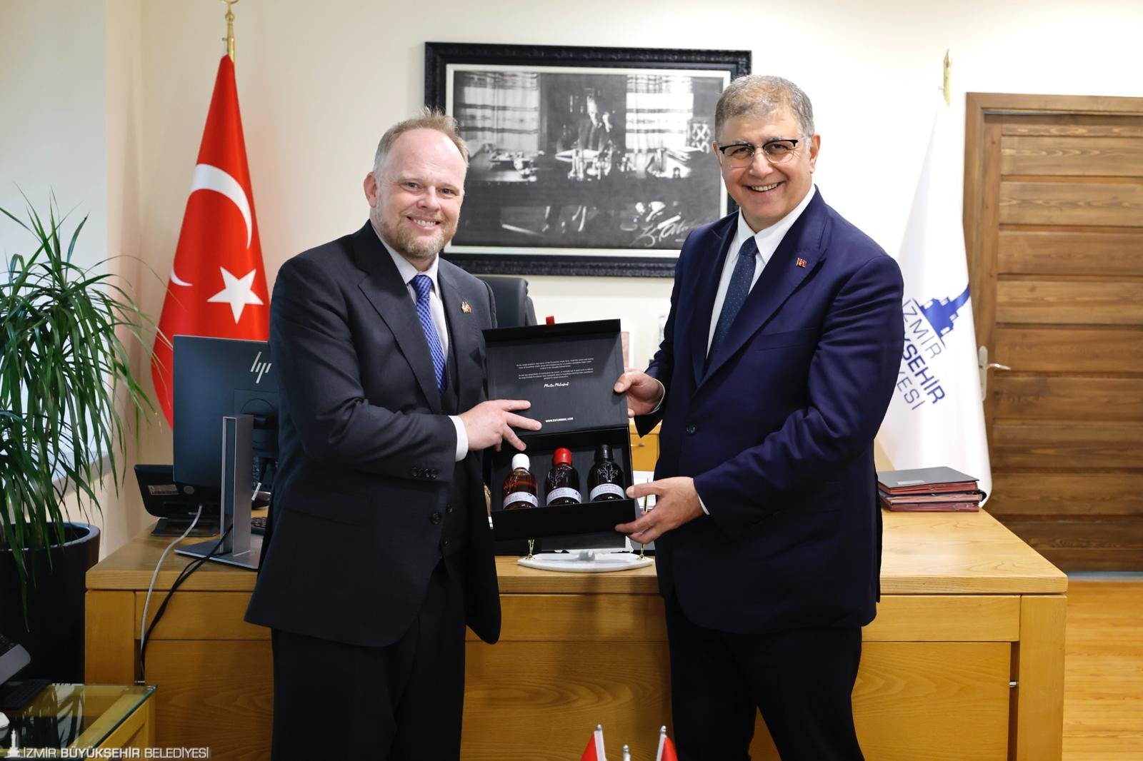İzmir Büyükşehir Belediye Başkanı Dr. Cemil Tugay, Kanada Büyükelçisi Kevin Hamilton’ı makamında ağırladı. Görüşmede, iki ülke arasındaki iş birliklerinin artırılması ve karşılıklı kültürel ilişkiler gündeme geldi.