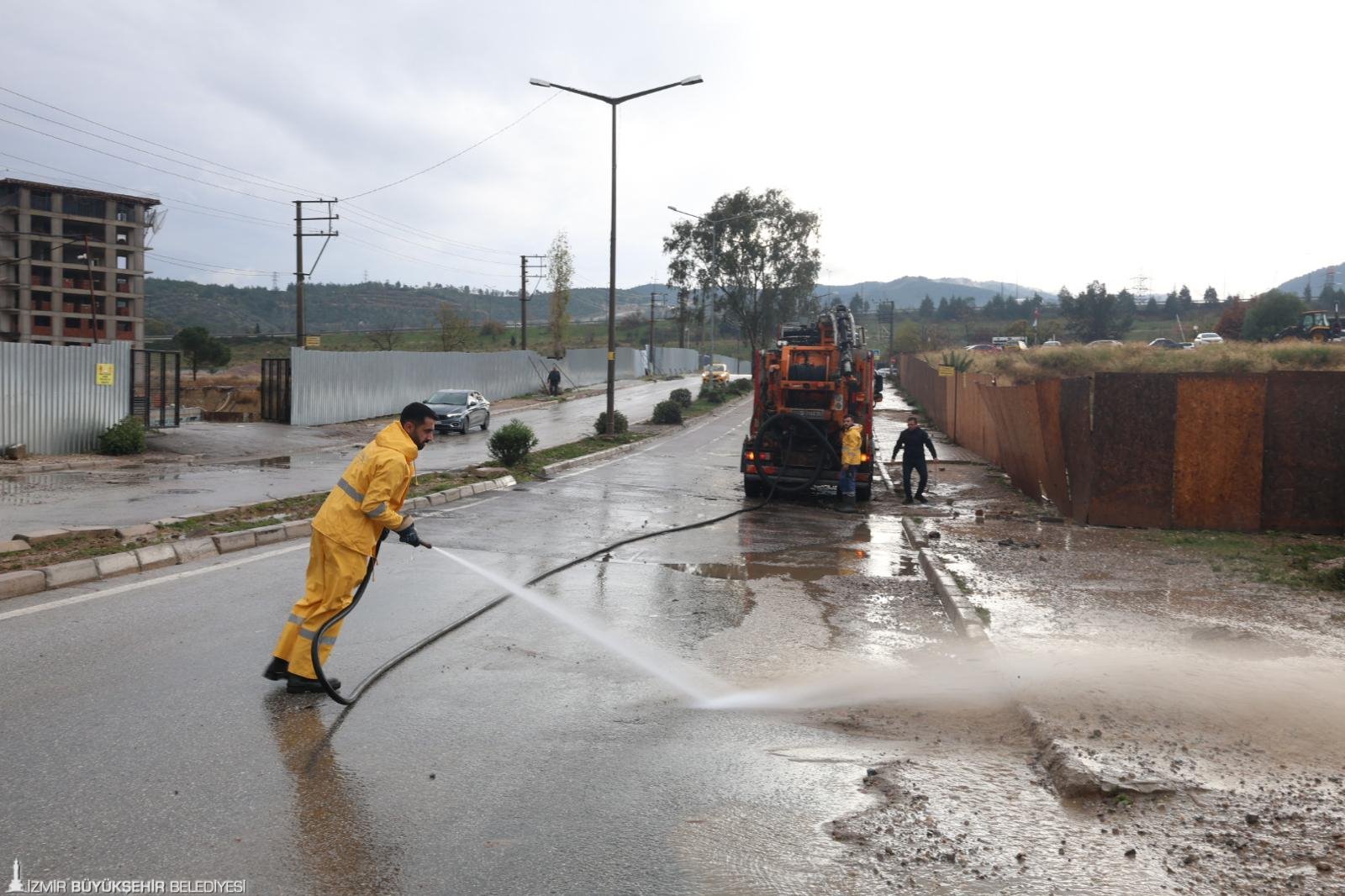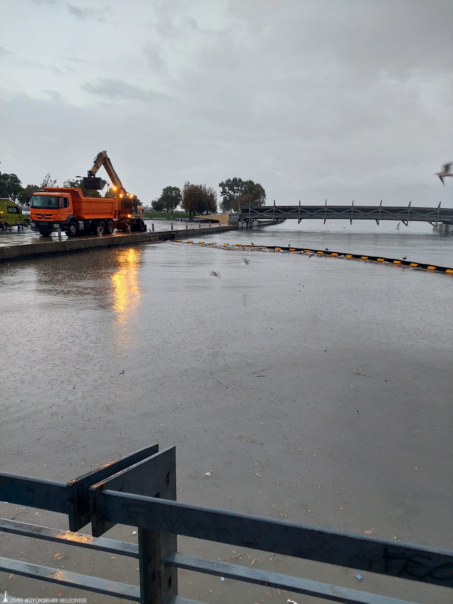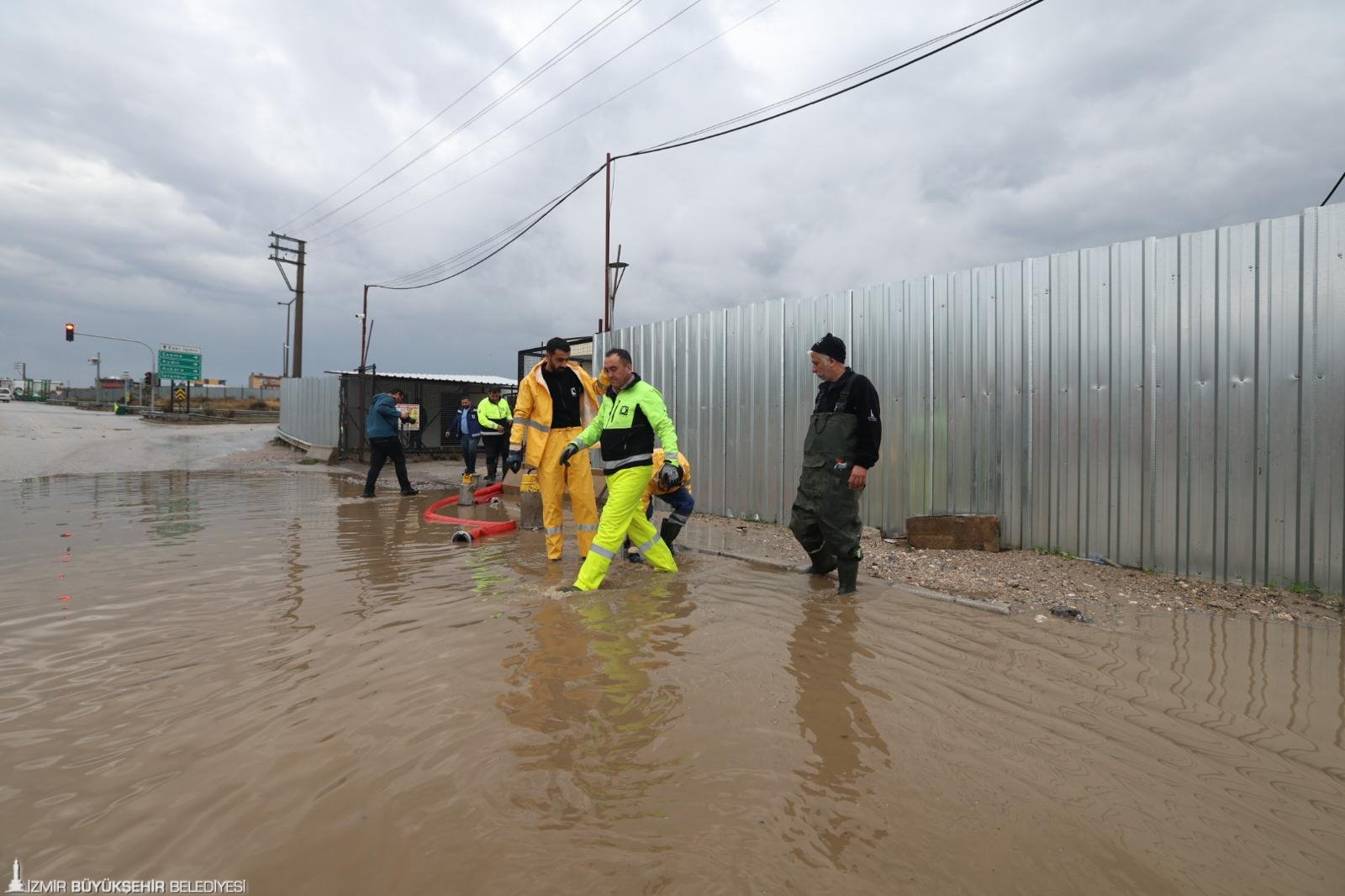 Dün akşam saatlerinden bu yana İzmir genelinde devam eden yağışlar özellikle Karaburun, Foça, Çeşme ve Dikili'de etkili oldu. Karaburun'da son 24 saatte metrekareye 165, Foça'da 137, Çeşme'de 131, Dikili'de 110 kg yağış düştü. Deniz seviyesinin de yükselmesiyle birlikte su baskınları yaşandı. İZSU Genel Müdürlüğü ve itfaiye ekipleri ihbarlara müdahale etmek için bölgeye sevk edilen takviye ekiplerle birlikte seferber oldu. İzmir Büyükşehir Belediyesi bin 200 personel 342 araç, 200 iş makinesi ve pompa ile su taşkını yaşanan bölgelerde yaşamı normale döndürmek için kesintisiz çalışıyor. Çeşme, Karaburun, Foça gibi kıyı bölgelerin yanı sıra Alsancak, Bostanlı, Konak ve Karşıyaka ilçelerindeki kritik noktalarda ve dere altgeçitlerinde ekipler takip ve müdahale çalışmalarını sürdürüyor. Dere temizlik çalışmalarının özellikle Çeşme, Karaburun ve Seferihisar'da büyük taşkın sorunlarını önlediği bildirildi.