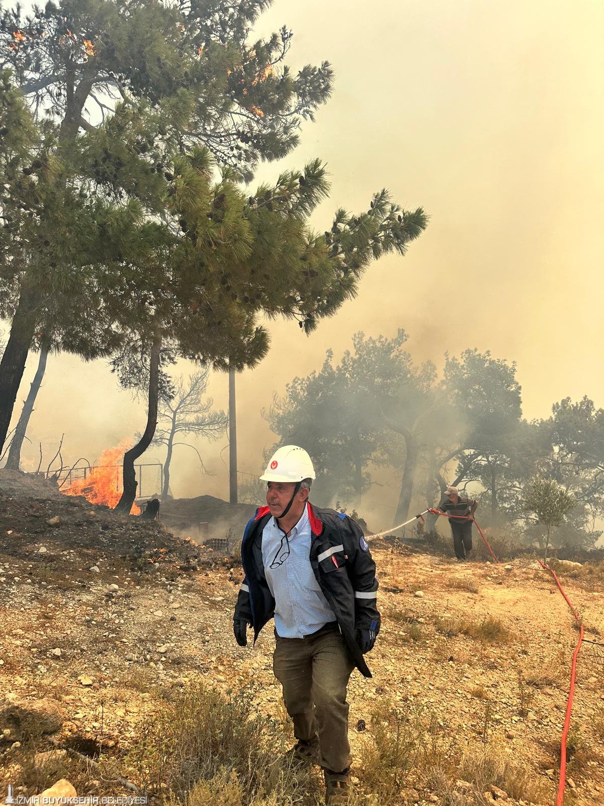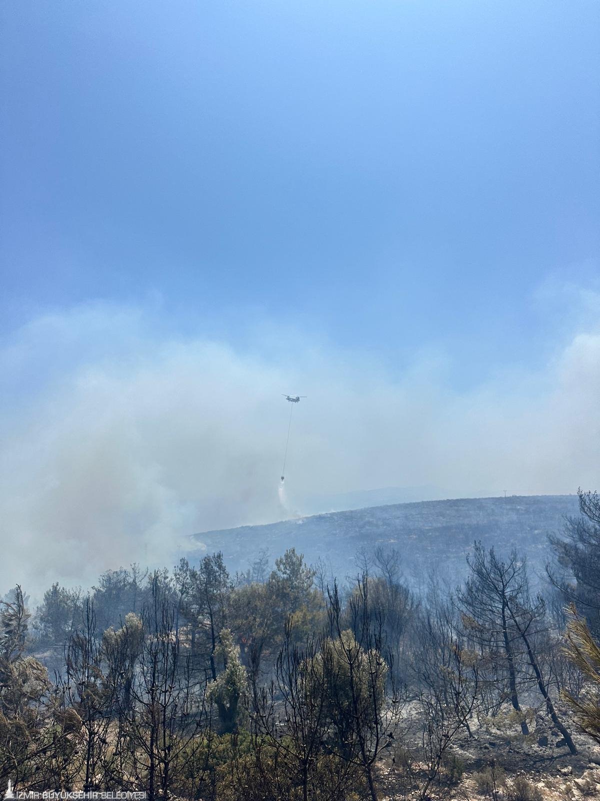İzmir Büyükşehir Belediyesi İtfaiye Dairesi Başkanlığı ekipleri, öğle saatlerinde Karaburun Mordoğan’da başlayan orman yangınını kontrol altına almak için yoğun mesai harcıyor. İzmir İtfaiyesi ekiplerinin yanı sıra İzmir Orman Bölge Müdürlüğü’ne ait 2 uçak, 6 helikopterin havadan müdahale ettiği yangını söndürme çalışmalarında çok sayıda arazöz ve ilçe belediyelerince gönderilen su tankerleri kullanılıyor. Çalışmalara orman gönüllüleri de destek veriyor. Yangının yerleşim yerlerine ulaşmasını engelleyen ekipler, alevleri kontrol altına almak için çalışmalarını sürdürüyor.