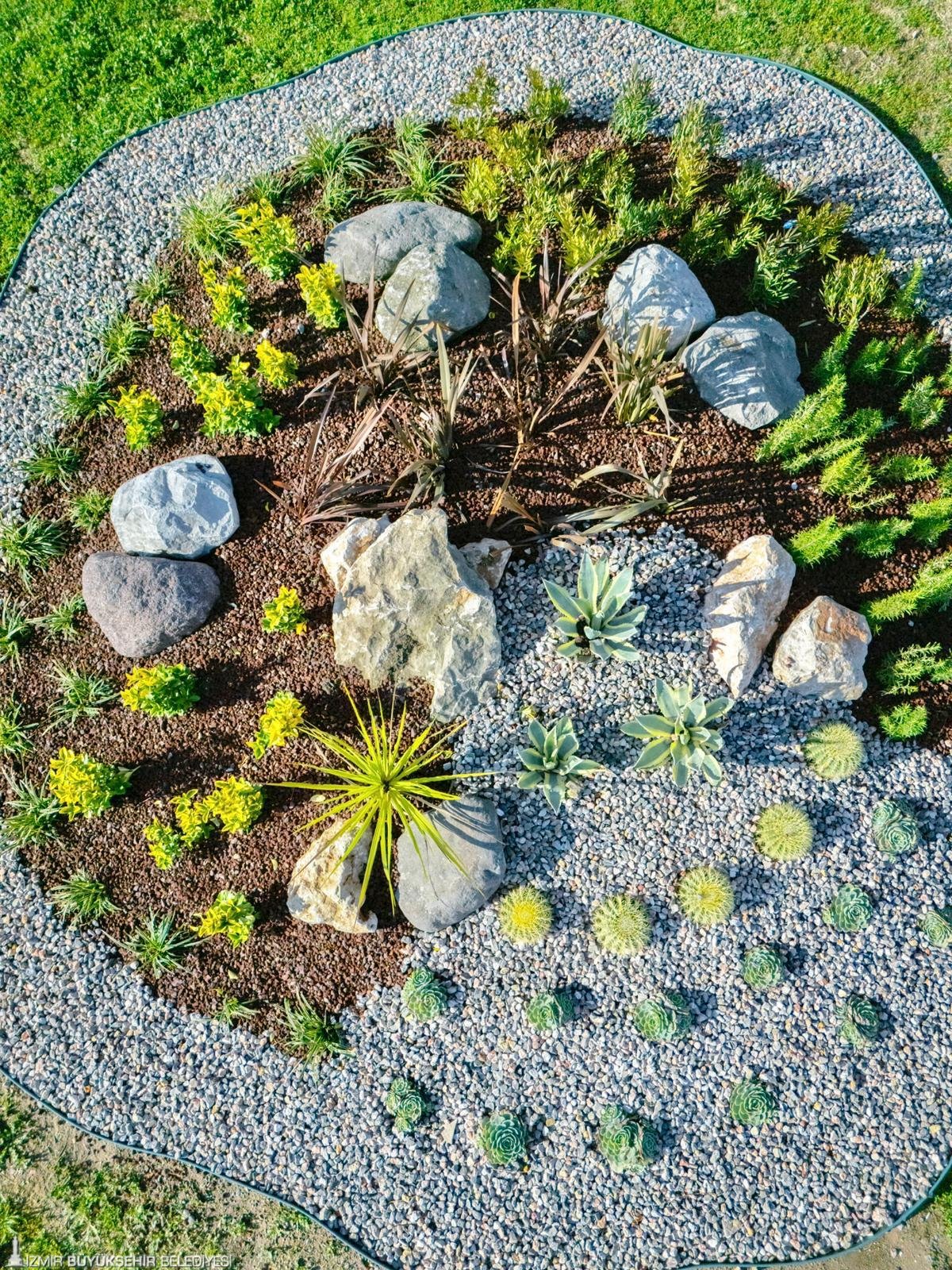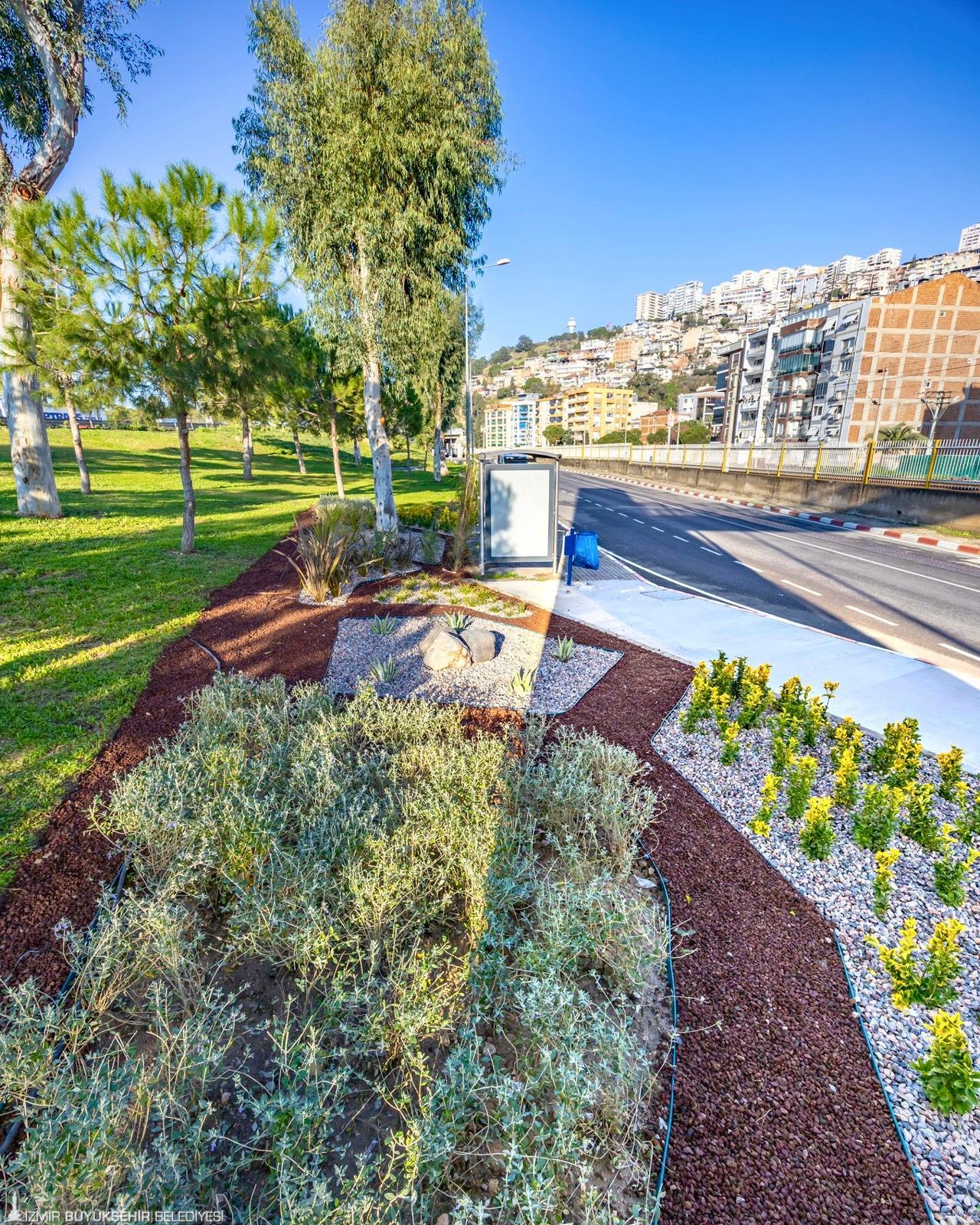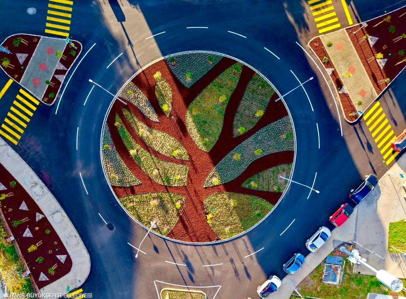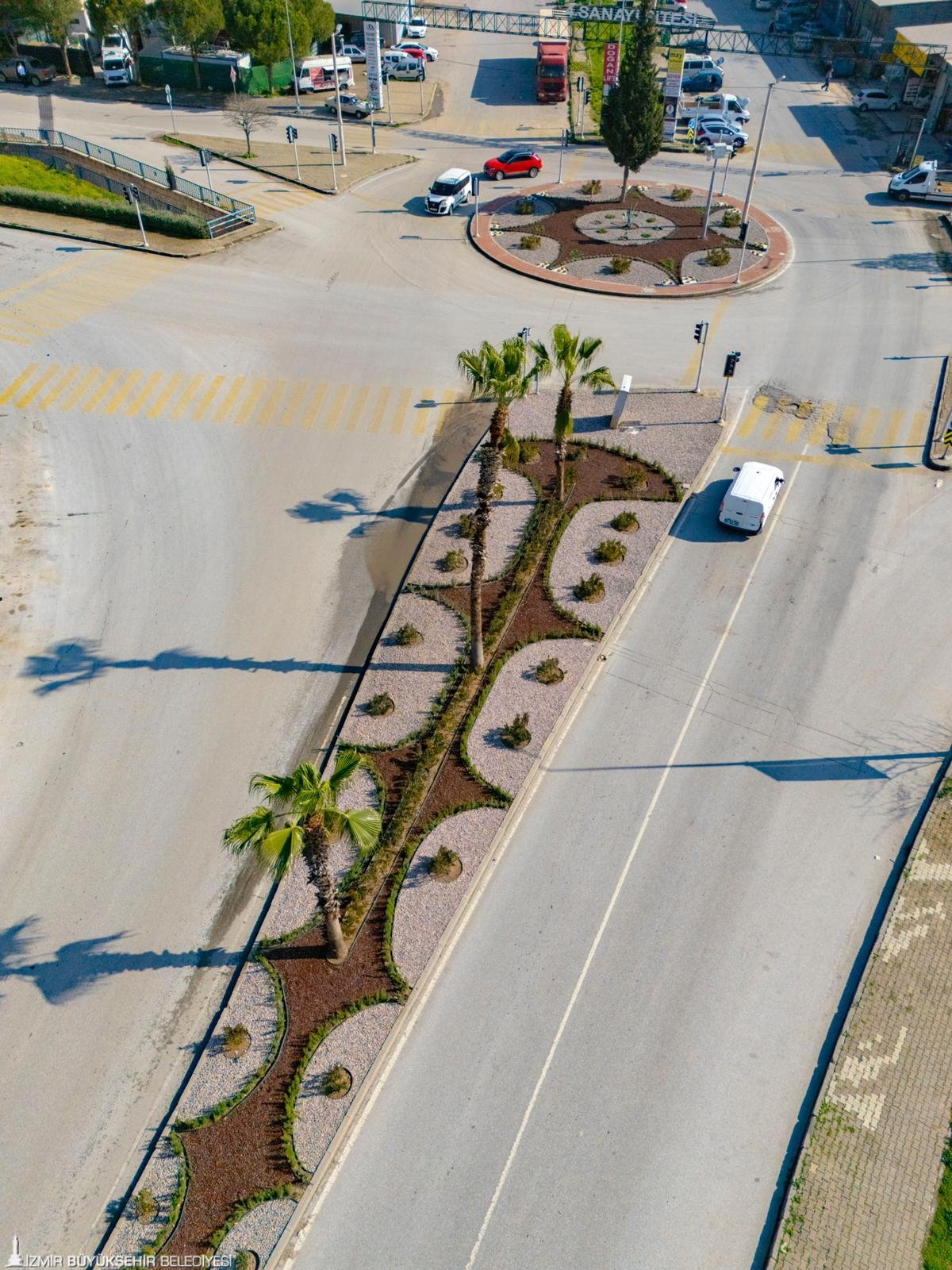 İzmir Büyükşehir Belediyesi, özgün peyzaj tasarımlarını kentin dört bir yanına kazandırmayı sürdürüyor. Park ve Bahçeler Dairesi Başkanlığı tarafından yürütülen çalışmalar kapsamında, kent merkezinden çevre ilçelere kadar onlarca noktada düzenleme yapıldı. Büyükşehir Belediyesi mühendislerinin imzasını taşıyan tasarımlar; kavşaklar, refüj ve orta alanlar, yol kenarları ile atıl alanlarda hayata geçirildi. İzmir’in çehresini değiştiren bu uygulamalarda su tasarrufu sağlayan kurakçıl bitki türleri ve dekoratif peyzaj unsurları tercih edildi. Yeni nesil tasarımlar hem uzun ömürlü oluyor hem de kentin su kaynaklarının verimli kullanılmasına katkı sağlıyor.