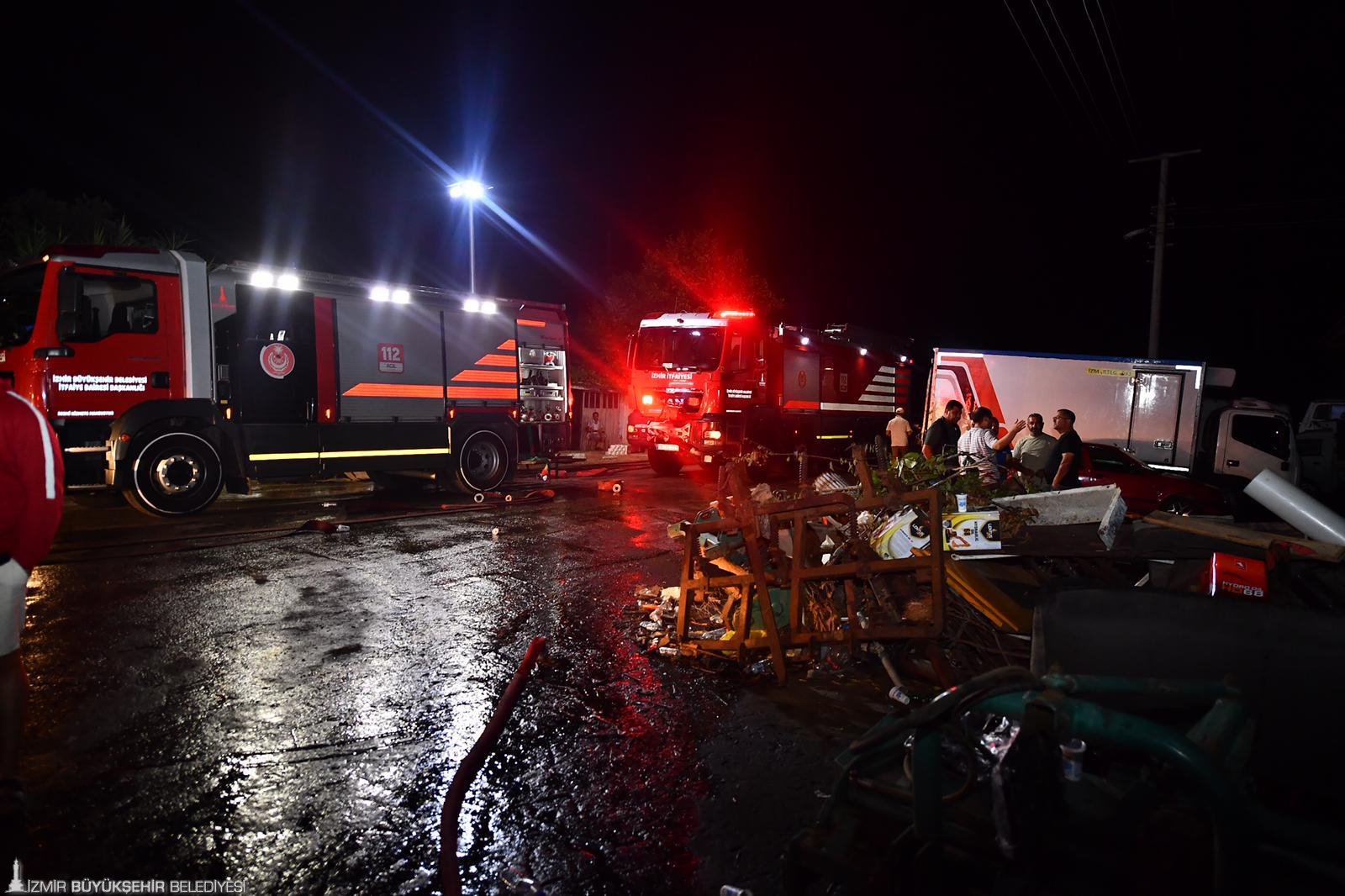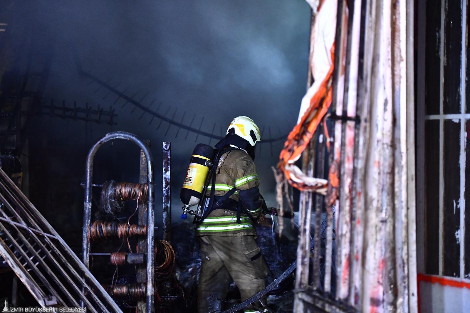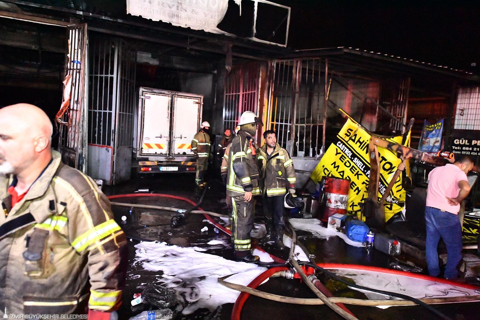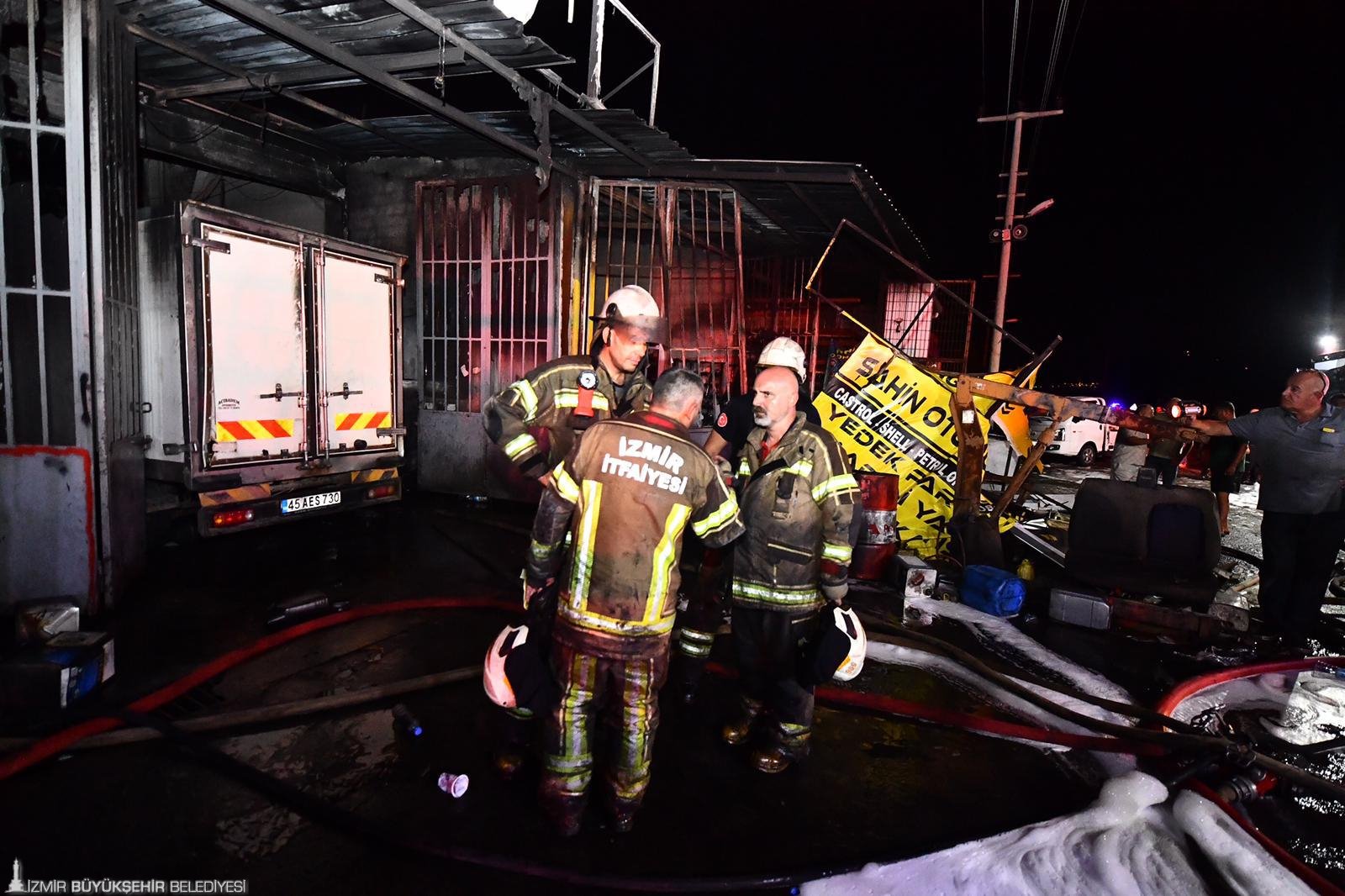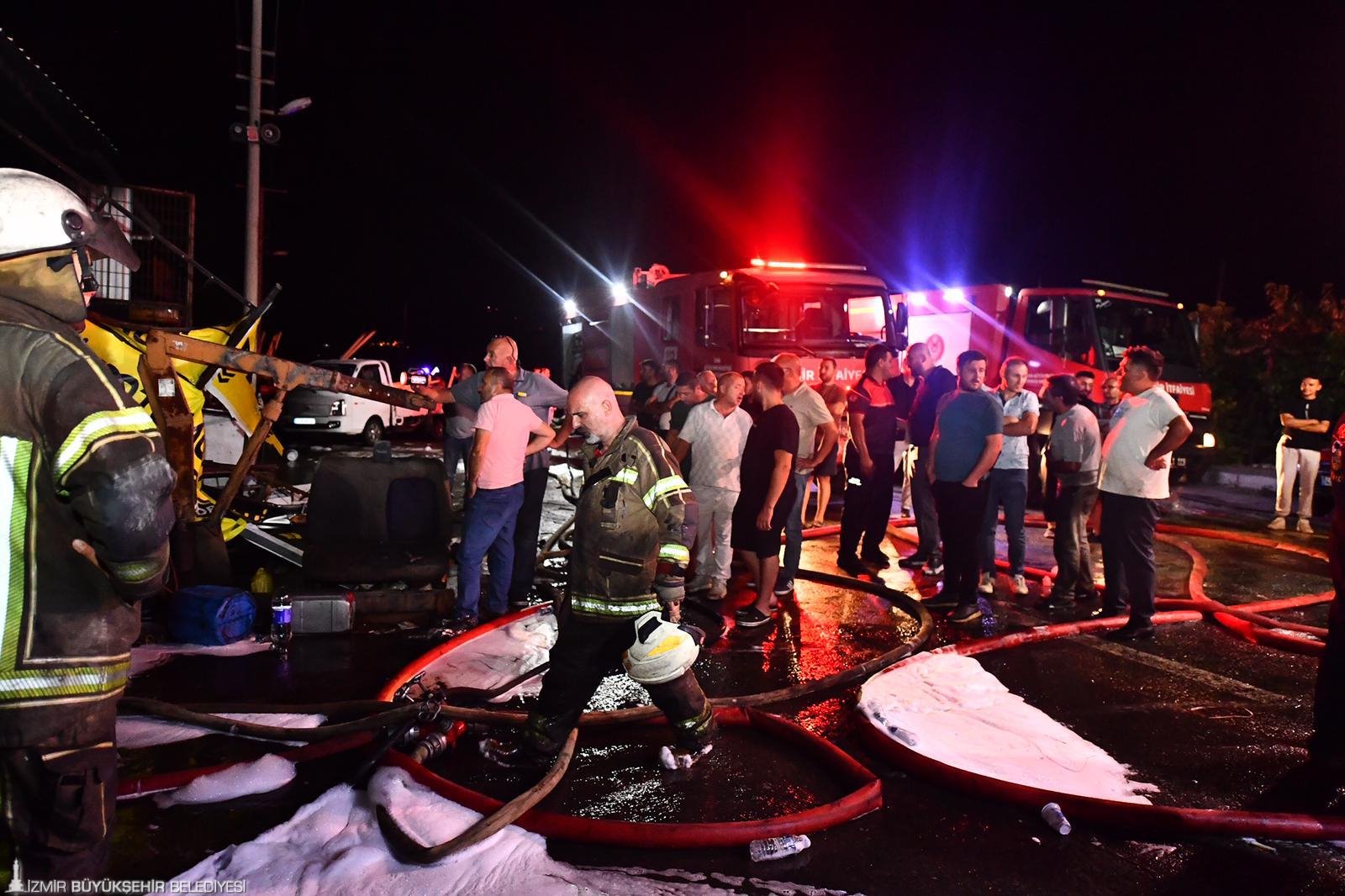İzmir’in Kemalpaşa ilçesine bağlı Bağyurdu Sanayi Sitesi’nde bulunan bir oto tamircide dün akşam 22.30 sıralarında yangın çıktı. Hızla büyüyen alevler yayılarak, civarda bulunan işyeri ve araçlara sıçradı. İhbar üzerine 8 araç 25 personel ile olay yerine sevk edilen İzmir Büyükşehir Belediyesi İtfaiye Dairesi Başkanlığı ekipleri, yangını yaklaşık bir buçuk saat süren çalışmalar sonucu kontrol altına aldı. Olayda can kaybı ya da yaralanma yaşanmaazken sanayi sitesindeki 7 işyeri ve 3 araç yangından etkilendi.
