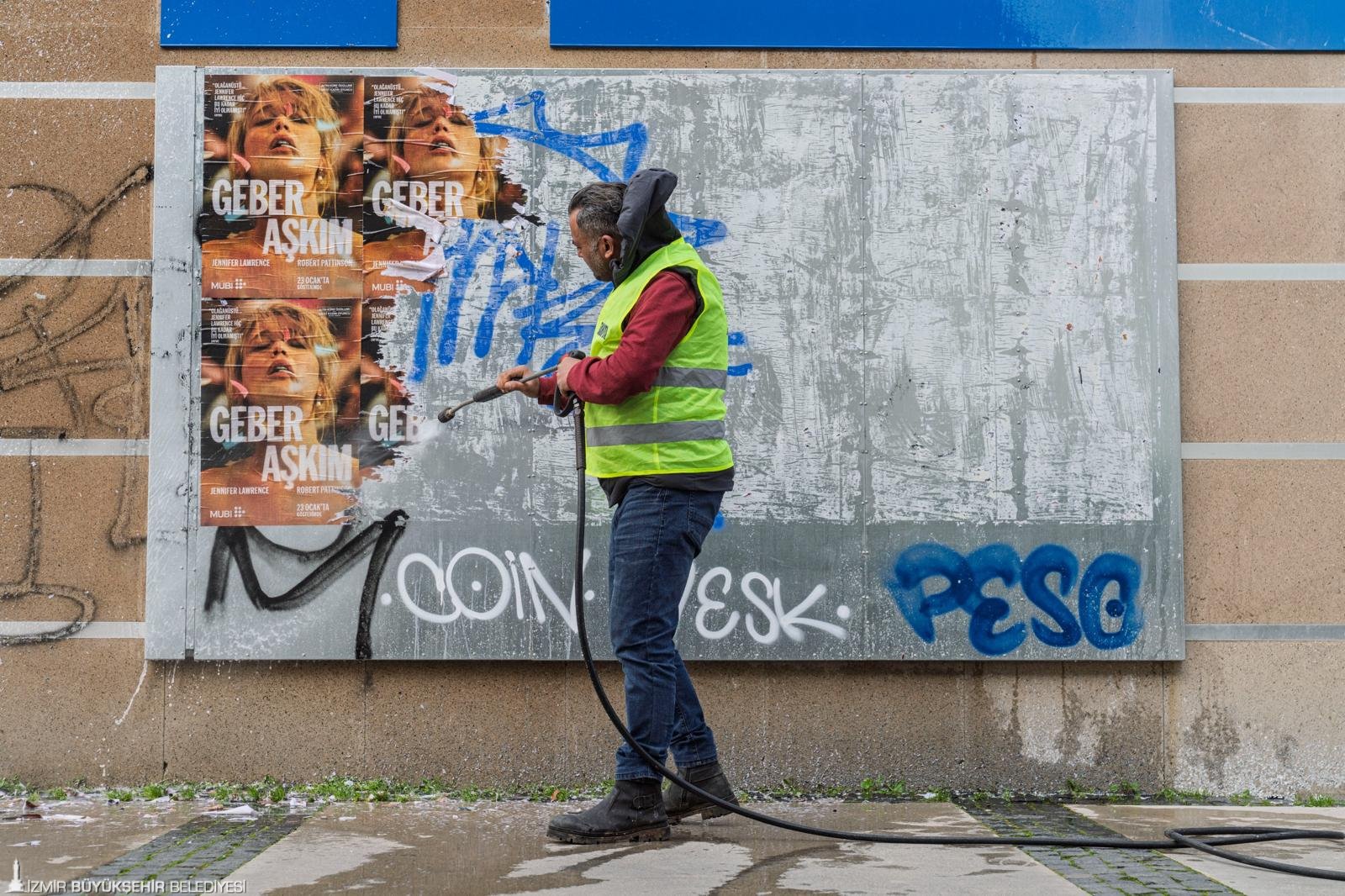 İzmir Büyükşehir Belediyesi Zabıta Dairesi Başkanlığı, kent estetiğini korumak ve kamusal alanların izinsiz kullanımını önlemek amacıyla izinsiz ilan ve reklamlara yönelik denetim ve kaldırma çalışmalarını sürdürüyor. Ekipler, belediye sınırları içinde elektrik direkleri, duvarlar, üst geçitler ve kamuya ait alanlara izinsiz asılan afişleri tek tek söküyor. İzmir Büyükşehir Belediyesi İlan ve Reklam Yönetmeliği’ne aykırı afişler kaldırılırken, gerekli temizlik çalışmaları da eş zamanlı olarak gerçekleştiriliyor. Ayrıca sorumlular hakkında İzmir Büyükşehir Belediyesi Emir ve Yasaklar Yönetmeliği ile 5326 sayılı Kabahatler Kanunu kapsamında idari yaptırımlar uygulanıyor. İzinsiz uygulamalar nedeniyle oluşan söküm ve temizlik masrafları ise ilgililerden tahsil ediliyor.