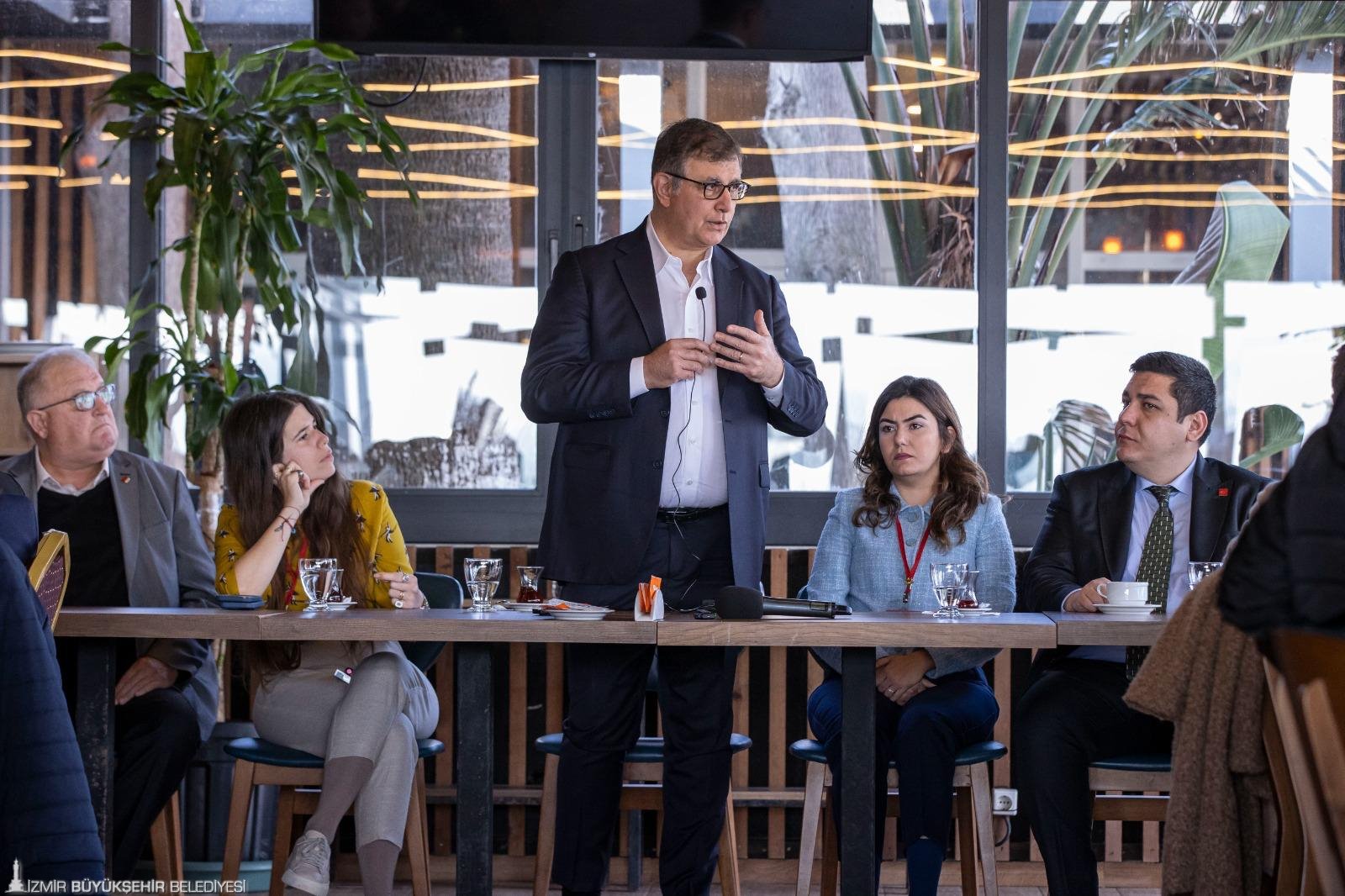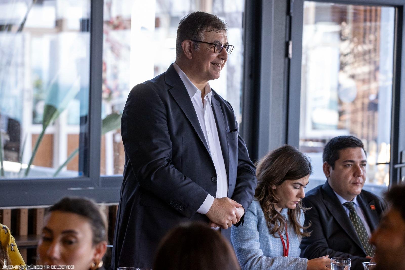 İzmir Büyükşehir Belediye Başkanı Dr. Cemil Tugay, "İnsanlara İzmir ile ilgili kötü şeyler söyleyerek İzmir'i kötülüyorlar ama ne hikmetse İzmir'de insanlar mutlu, özgür, hoşgörü içinde. İzmir'i bozmaya çalışan bütün güçlere karşı İzmir Türkiye'nin en düzgün şehirlerinden biri. Görevimiz, yerel hizmetleri çok daha iyi hale getirmek. Bunu da yapıyoruz zaten. İki aydır 3 milyar lira paramızı kestiler. 3 milyar, üç tane Karşıyaka Stadı demek. Sayısız anaokulu, sosyal tesis demek ama biz hizmetlerimize devam ediyoruz. İzmir Büyükşehir Belediyesi ve ilçe belediyeleri, kendi güçleri ve inançlı yöneticileri ile bunları yapacak. Neticede algı için sosyal medyayı kullanıyorlar. Medya zaten malum ama bizim gerçek bilgiye ihtiyacımız var" diye konuştu.