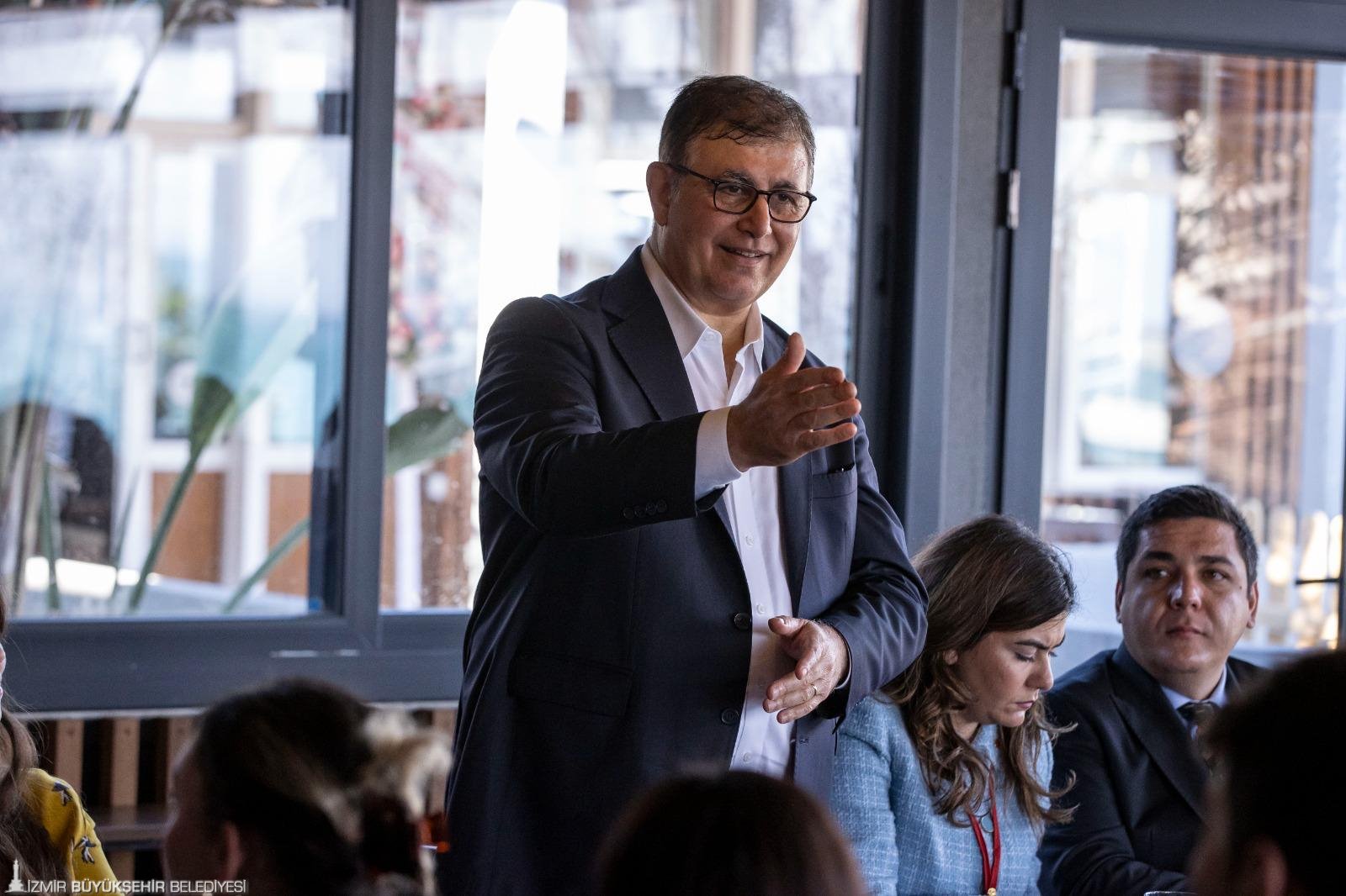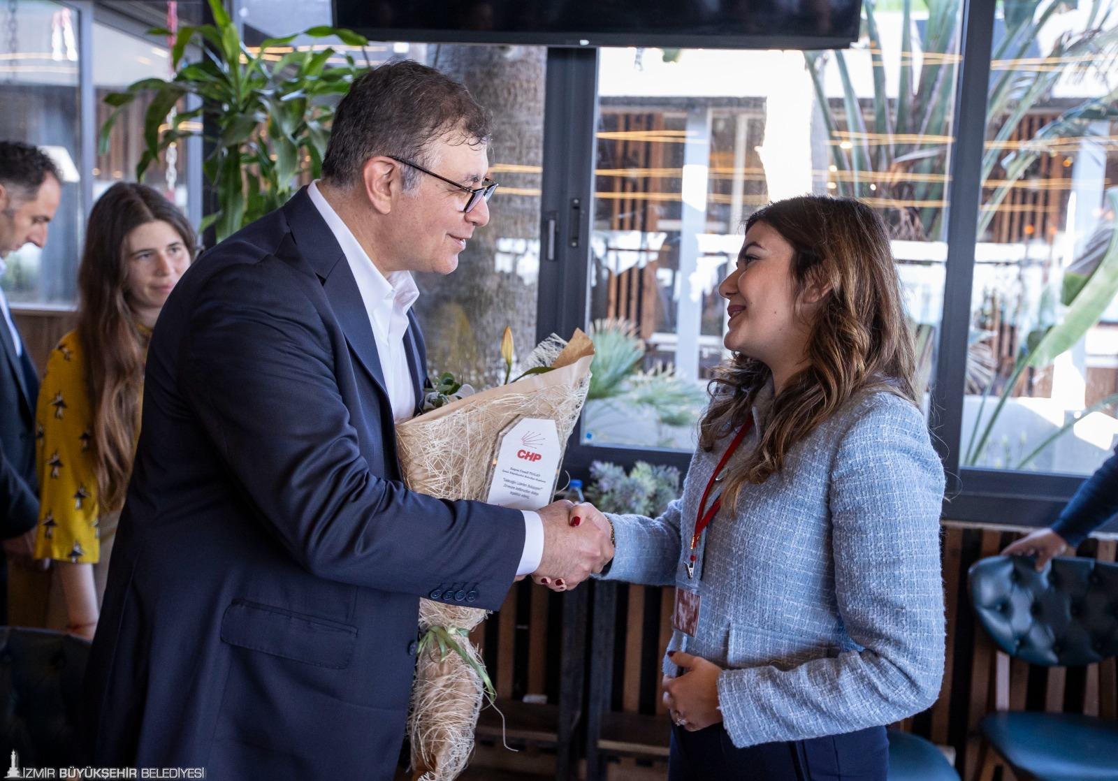Konuşmaların ardından CHP İzmir İl Gençlik Kolları Başkanı Ruhsar Selis Çelik tarafından Başkan Tugay'a plaket ve çiçek takdim edildi.