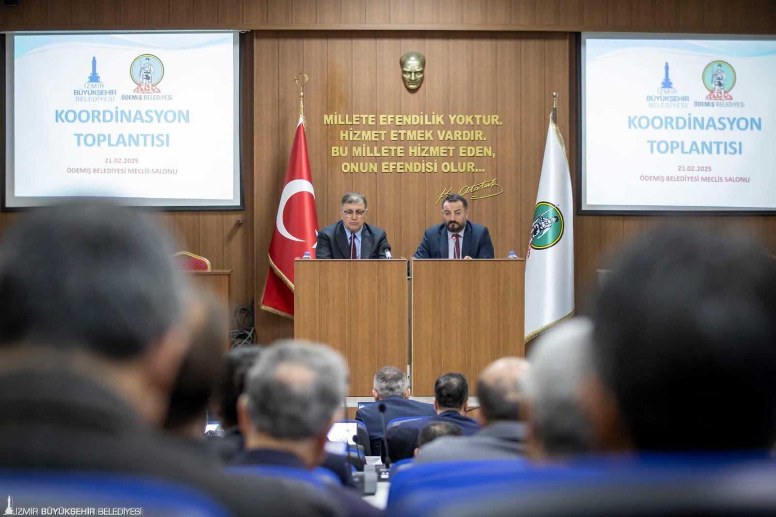 Başkan Tugay daha sonra Ödemiş Belediyesi Meclis Salonu’nda düzenlenen koordinasyon toplantısına geçti. Ödemiş Belediye Başkanı Mustafa Turan ve belediye bürokratlarının yer aldığı buluşmada ilçenin sorunları ve izlenecek yol haritası konuşuldu. Ödemiş’in tarım ve hayvancılığın merkezi olduğunu kaydeden Başkan Tugay, üreticinin her zaman yanında yer alacaklarını söyledi. Ödemiş Belediye Başkanı Mustafa Turan ise, İzmir Büyükşehir Belediyesi ile Ödemiş Belediyesi’nin yol arkadaşlığının ilçenin kültürel, sosyal ve ekonomik gelişimine katkı sağlayacağını, yaşam kalitesini artıracağını söyledi. İzmir Büyükşehir Belediyesi tarafından ihtiyaç duydukları alanlardaki çalışmaların yapılacağını aktaran Turan, Başkan Tugay’a destekleri için teşekkür etti.