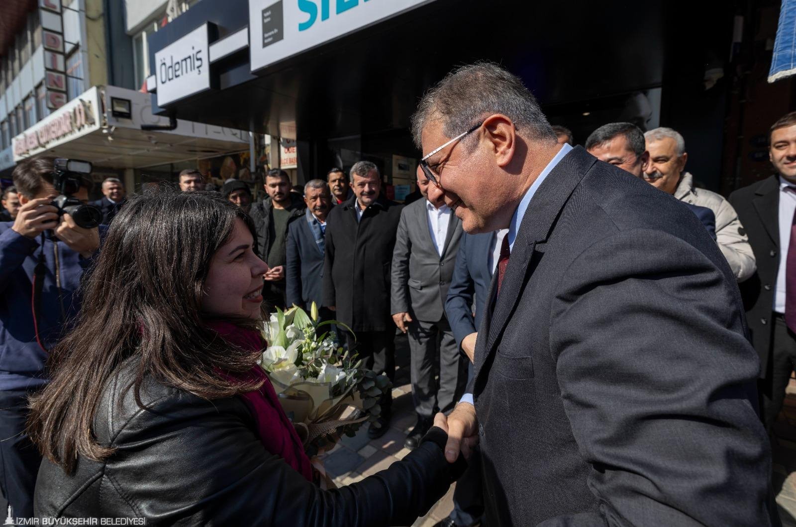 Ödemiş sokaklarında yürüyen, vatandaş ve esnafla sohbet eden Başkan Tugay yoğun ilgiyle karşılandı. Başkan Tugay Ödemiş programı kapsamında Ödemiş Belediye Başkanı Mustafa Turan’ı makamında ziyaret etti, İzmir Büyükşehir Belediyesi’nin Ödemiş Yerel Hizmetler Şube Müdürlüğü’nde çalışanlarla bir araya geldi.