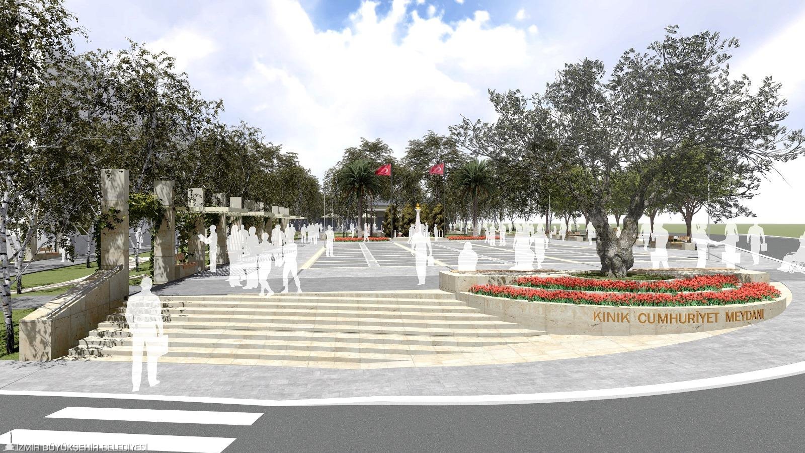 İzmir Büyükşehir Belediyesi tarafından hazırlanan Kınık Cumhuriyet Meydanı ve Çevresi Düzenleme Projesi, ilçenin çevresel ve mekânsal ihtiyaçlarını yeniden yorumlayarak, Kınık’ın kalbinde çağdaş bir kamusal yaşam alanı oluşturmayı amaçlıyor. Proje; toplumsal buluşmayı teşvik eden, her yaş ve kesimden kullanıcının güvenle ve konforla vakit geçirebileceği, erişilebilir ve sürdürülebilir bir mekân olarak tasarlandı. Proje kapsamında mevcut meydan alanı tamamen yenilenecek.