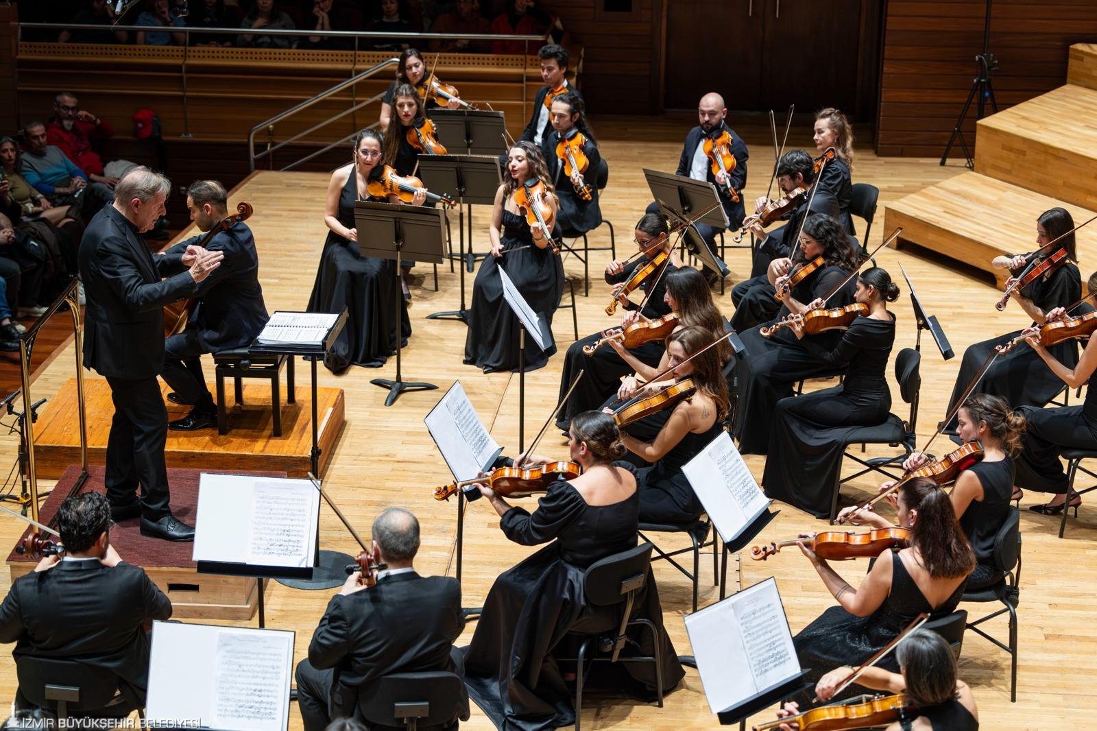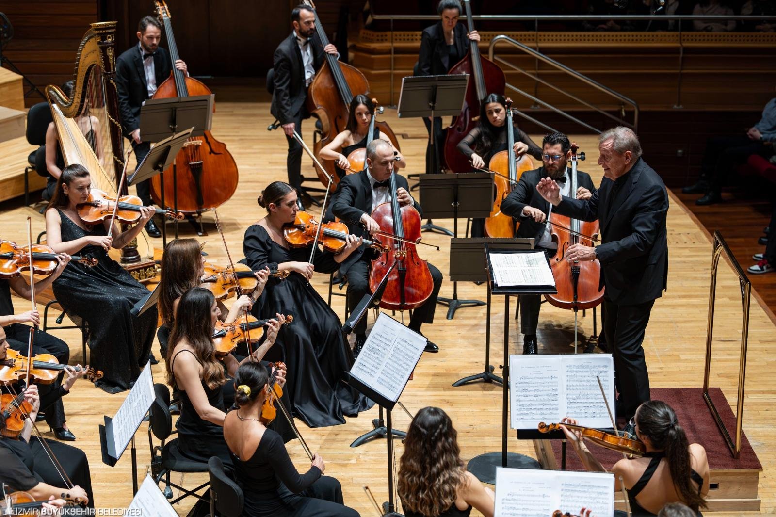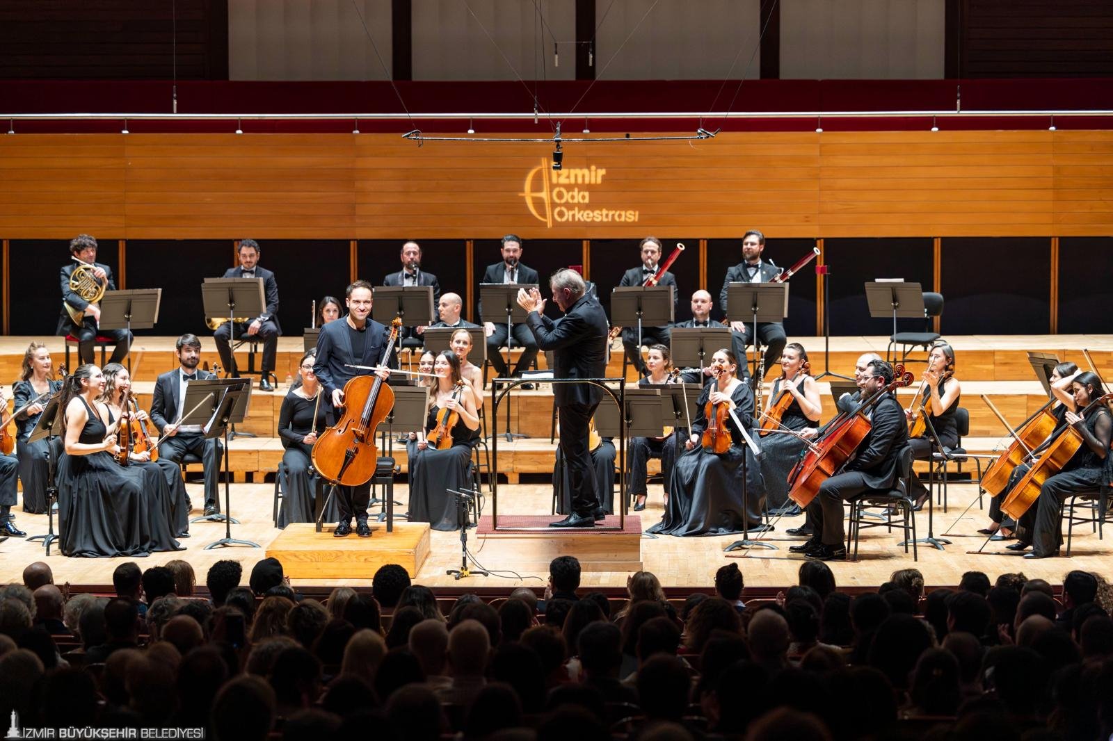 İzmir Büyükşehir Belediyesi İzmir Oda Orkestrası, Ahmed Adnan Saygun Sanat Merkezi’nde düzenlenen konserde sanatseverlerle buluştu. Geceyi, İzmir Büyükşehir Belediye Başkanı Dr. Cemil Tugay da izledi. Konser öncesinde salona giren Başkan Tugay, dinleyiciler tarafından alkışlarla karşılandı. Programın ilk bölümünde Tonhalle Orkestrası’nın birinci solo çellisti, başarılı viyolonsel sanatçısı Dorukhan Doruk sahne aldı. Sanatçı, viyolonseli ustalıkla yorumlayarak izleyicilerden yoğun alkış topladı. Dünyaca ünlü şef Howard Griffiths yönetimindeki gecede; Pyotr Ilyich Tchaikovsky’nin Rokoko Teması Üzerine Varyasyonlar eseriyle başlayan repertuvar, Jean-Philippe Rameau’nun Les Indes Galantes – Süit No. 1, Maurice Ravel’in Le Tombeau de Couperin ve Joseph Haydn’ın Sol minör 83. Senfonisi (“La Poule”) ile devam etti. Seçkin eserlerden oluşan program ve güçlü yorumlar, dinleyicilere unutulmaz bir müzik akşamı yaşattı.