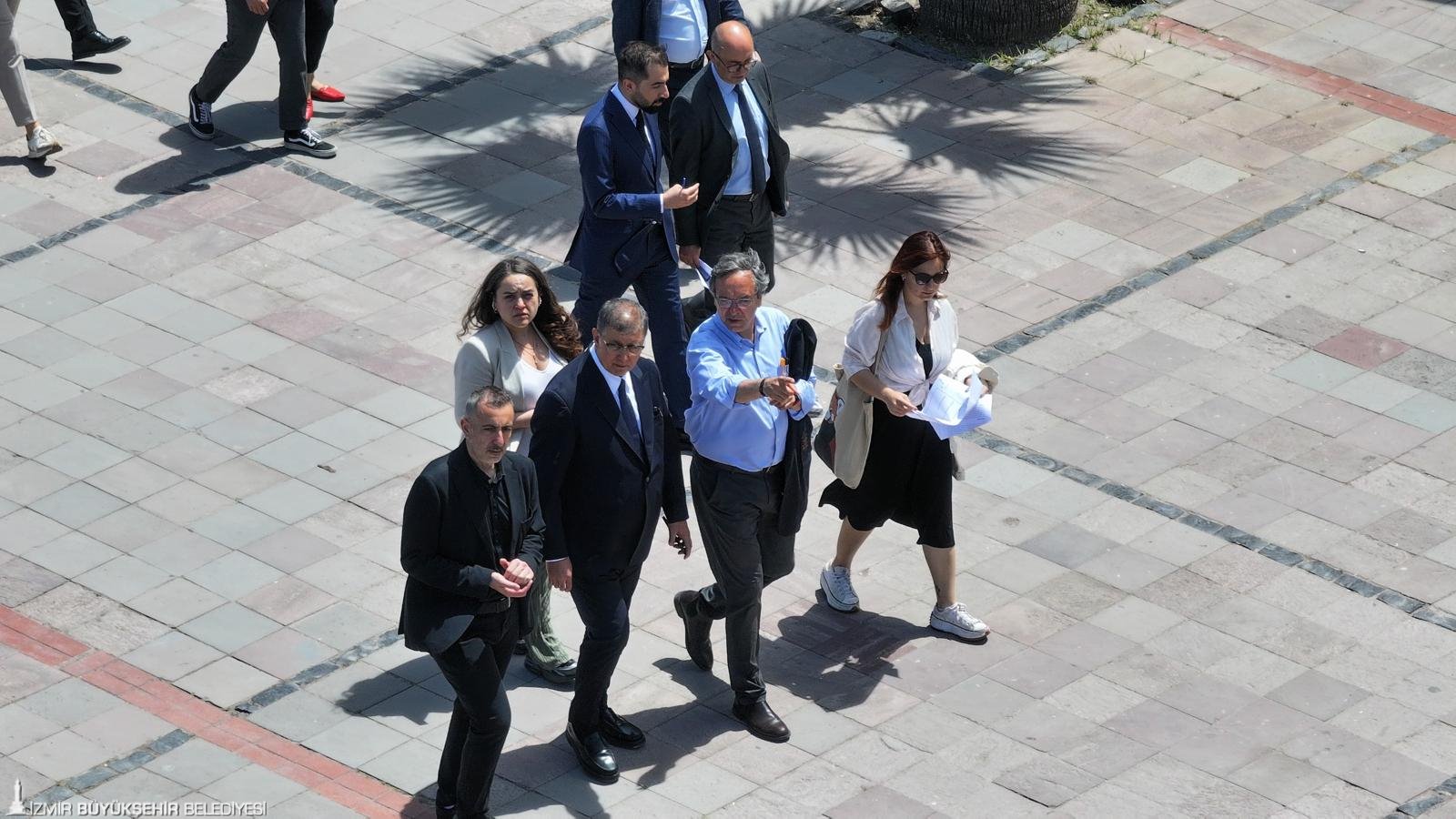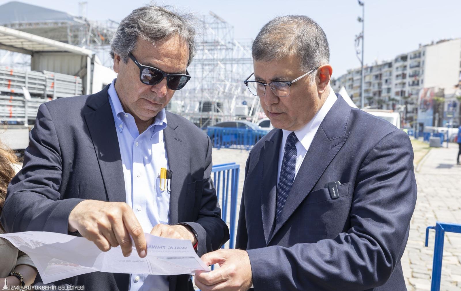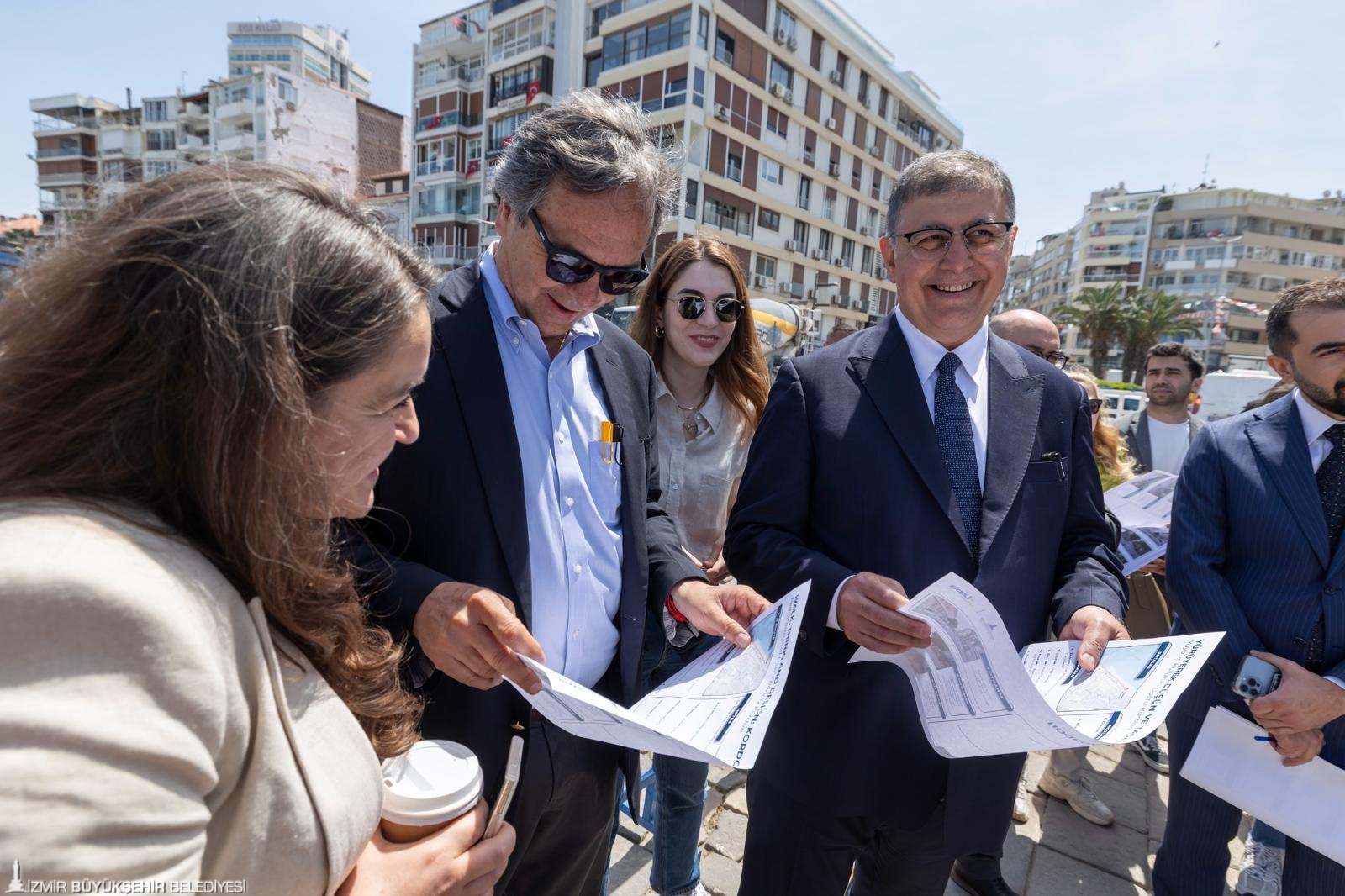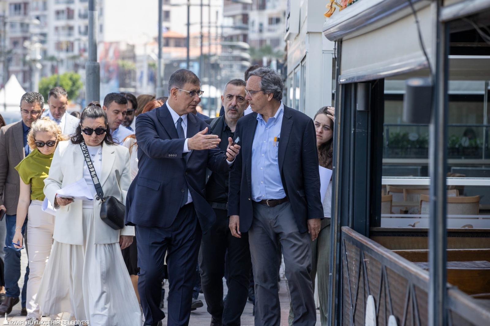 İzmir Büyükşehir Belediyesi’nin 19 Mayıs Atatürk’ü Anma, Gençlik ve Spor Bayramı kutlamaları kapsamında düzenlediği Tasarımcılar İzmir’de etkinliği için kente gelen dünyaca ünlü Kanadalı Şehir Plancısı Gil Penolasa’nın da katıldığı inceleme programında Başkan Dr. Cemil Tugay’a İZPA Başkanı Prof. Dr. Koray Velibeyoğlu, İzmir Büyükşehir Belediyesi Genel Sekreter Yardımcıları Zeki Yıldırım, Çağatay Güç, İsmail Mutaf, belediye bürokratları, İZPA bünyesindeki şehir plancıları ve akademisyenler de yer aldı. Gündoğdu Meydanı ile Cumhuriyet Meydanı arasındaki sahil boyunca belirlenen beş noktada gözlem yapan Başkan Tugay, Kordon’un gelişimi ve etkin kullanımı için Gil Penolasa’dan öneriler aldı.