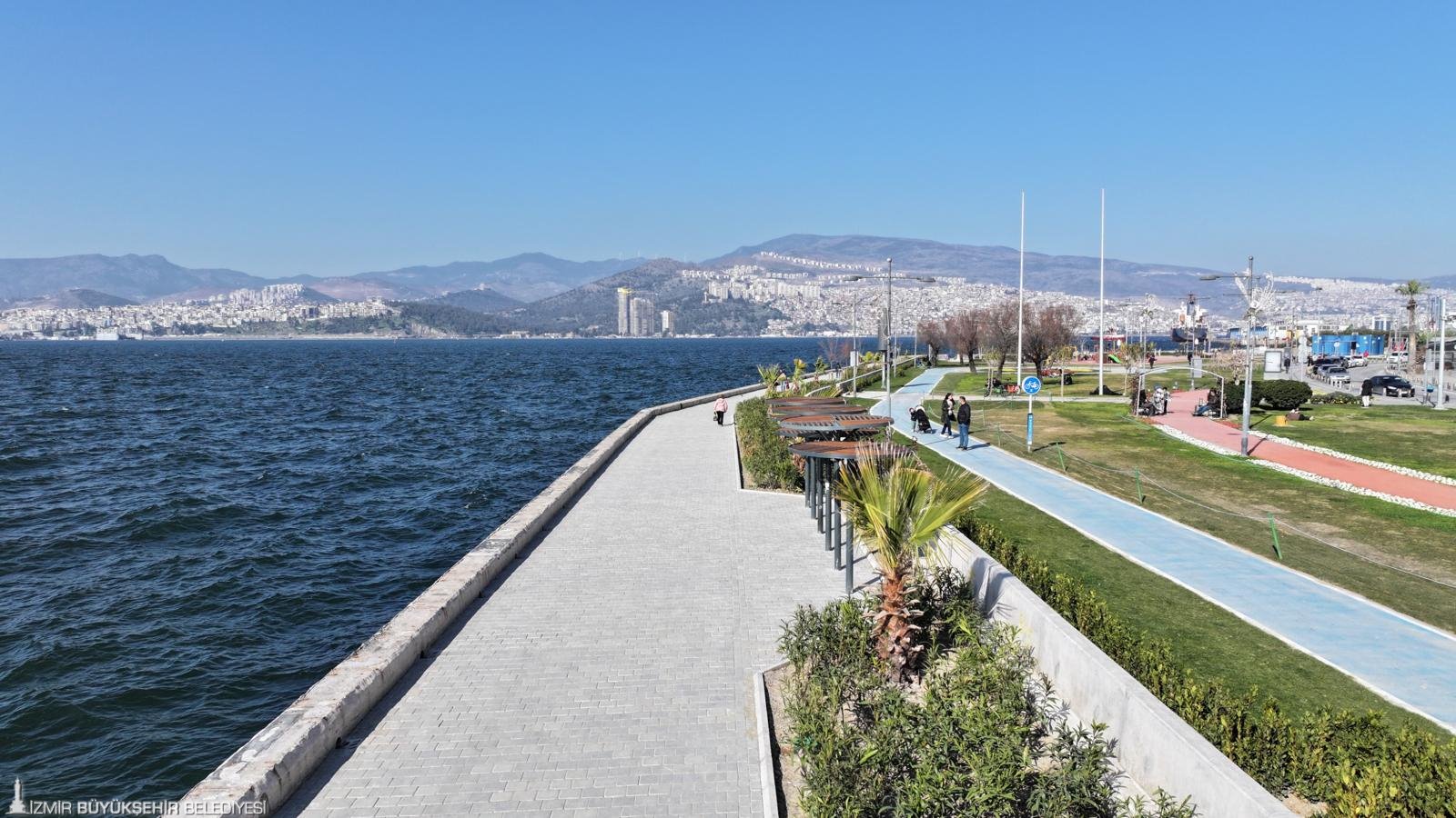 İzmir Büyükşehir Belediye Başkanı Dr. Cemil Tugay’ın Kordon’da deniz taşkınlarını önlemek ve İzmirlilerin kıyı şeridini daha konforlu kullanımını sağlamak için başlattığı “Acil Eylem Paketi” çalışmalarında sona gelindi. Alsancak Limanı’ndan Cumhuriyet Meydanı’na kadar olan bin 700 metrelik sahil şeridinde kıyıya paralel geçici fırtına duvarının yapımı tamamlanırken, kıyı boyunca yapılan peyzaj düzenlemeleriyle Kordon daha yeşil bir görünüme kavuştu. Park ve Bahçeler Dairesi Başkanlığı tarafından yürütülen peyzaj düzenlemesinde, su taşkınlarına ve iklim krizinin etkilerine dayanıklı bitkiler tercih edilerek Kordon’da yıl boyunca yeşil dokunun korunması hedeflendi. Alanda peyzaj düzenlemelerinin devam ettiği, kent mobilyaları, oturma ve yeni aktivite alanları ile seyir teraslarının montajının ardından çalışmaların tamamlanacağı bildirildi.