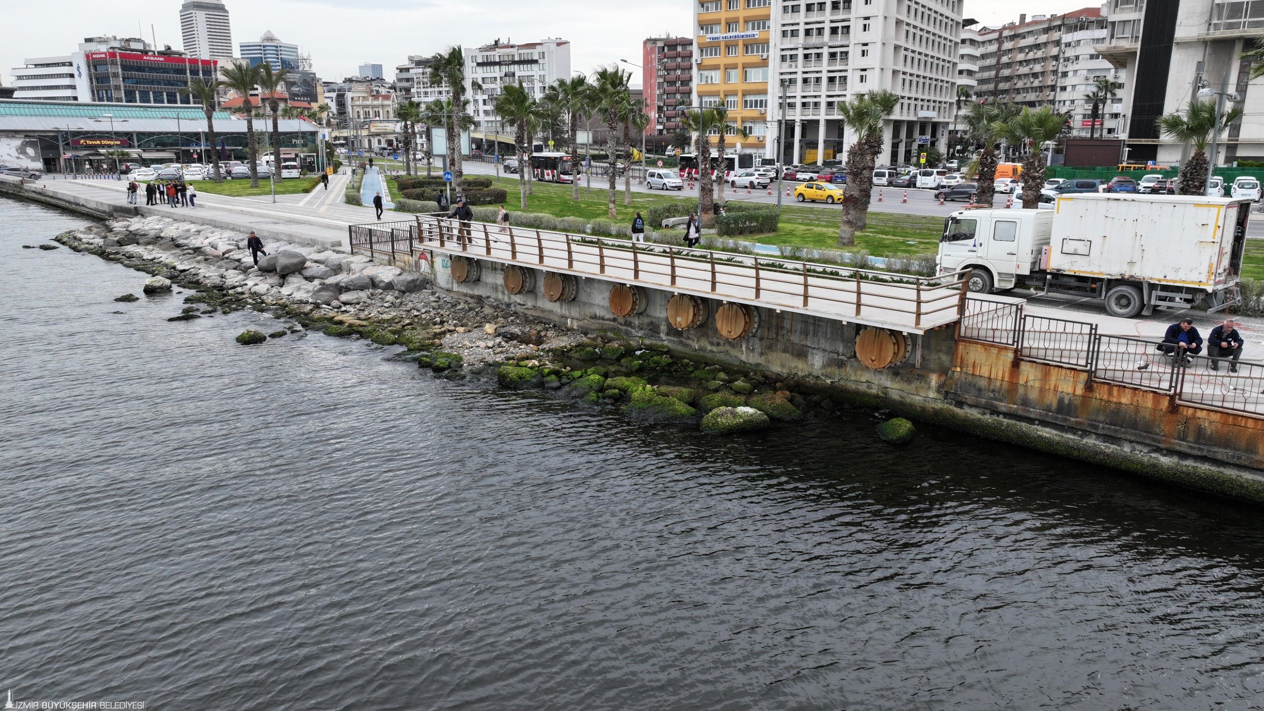 “Kemeraltı bölgesinde iki tane ayrık sistem var. Yağmur suyu ve atık su toplama sistemi. Sistem şöyle çalışıyor. Aşırı yağışlarda İkiçeşmelik ve yüksek kesimlerden gelerek Kemeraltı’nda baskınlara neden olan yağmur sularının terfi merkezinde toplanıp denize deşarj edilmesini sağlıyor. Bu sürekli olan bir durum değil. Terfi merkezinde biriktirilen yağmur suları belli bir seviyeye geldiği zaman taşkınlara sebebiyet verilmemesi için denize yağmur suyu deşarj ediliyor. Derelerdeki sistem gibi düşünebilir. Kemeraltı’ndan gelen ve denize dökülen sular yağmur sularıdır. Atık su değildir.”