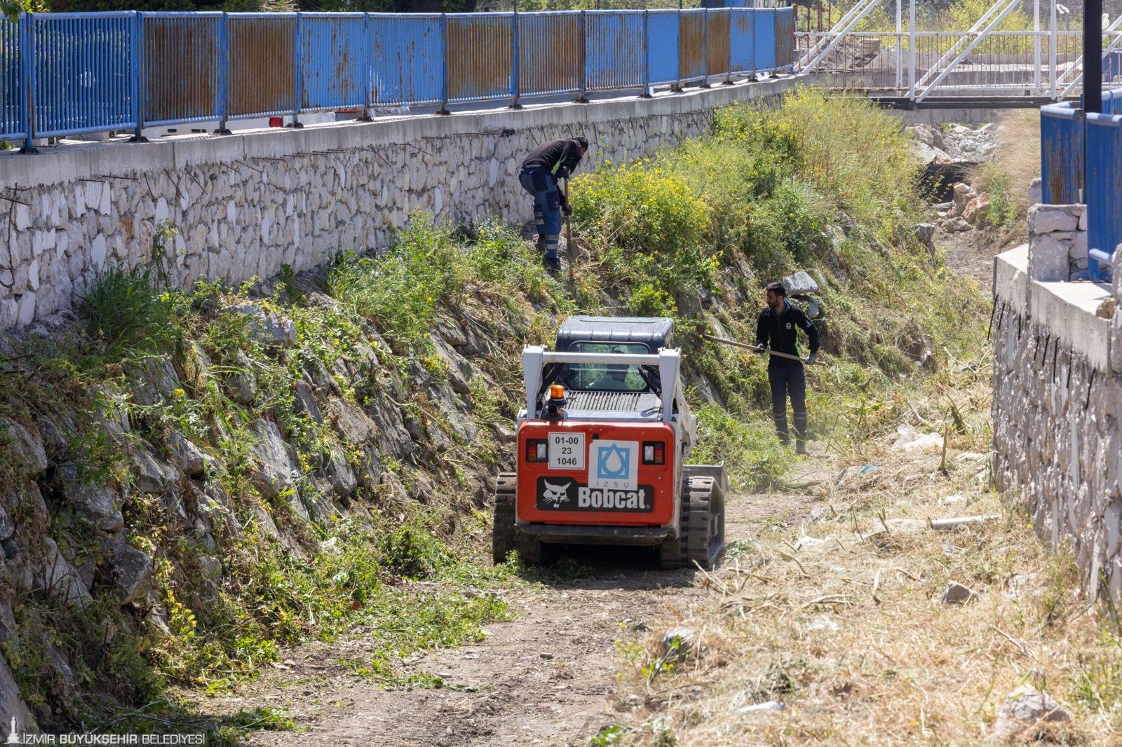 İzmir Büyükşehir Belediyesi, temiz Körfez için dört koldan çalışıyor. Bir yandan Körfez’de dip tarama çalışmaları devam ederken diğer yandan 11 ilçede Körfez’e dökülen derelerde temizlik çalışması yapılıyor. Körfez’deki iyileşmeyi desteklemek için sürdürülen temizlik seferberliğinde kullanılan iş makinesi sayısı ise yeni temin edilen 17 iş makinesi ile birlikte 41’e çıktı. 62 personelden oluşan 20 ekiple ile sahada çalışan İZSU, yaza kadar dereleri pırıl pırıl hale getirecek.