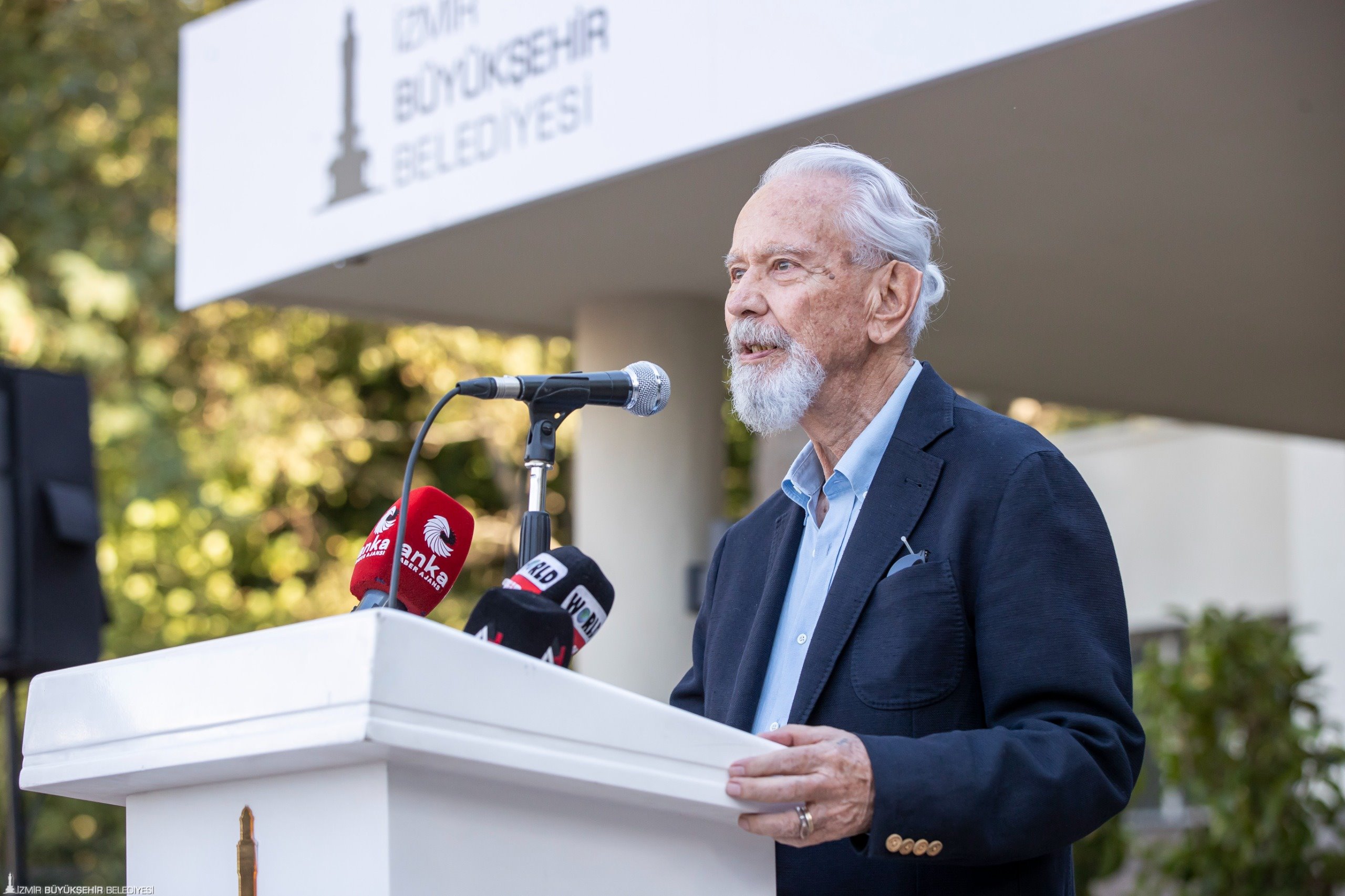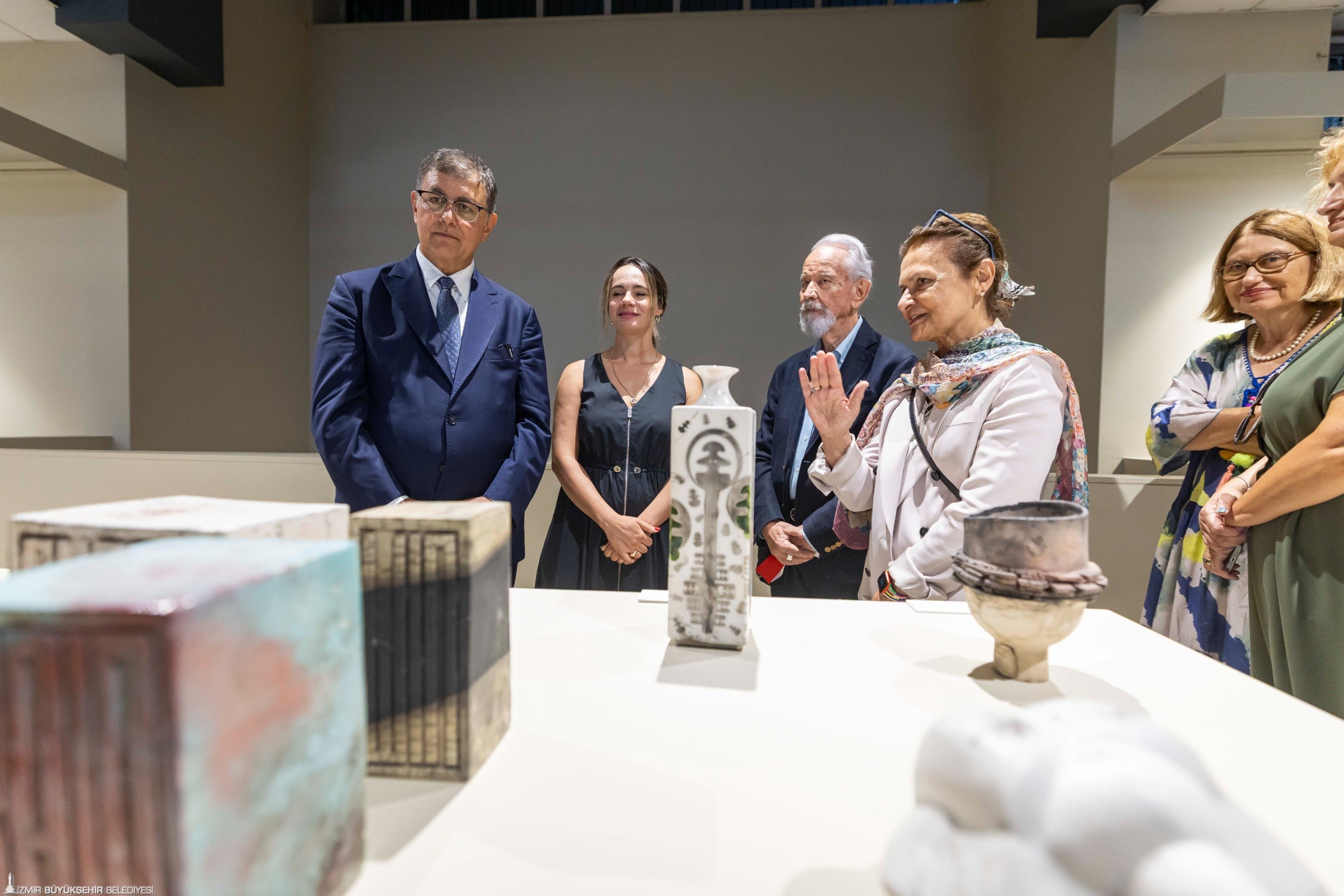 Başkan Dr. Cemil Tugay, İzmirli seramik sanatçısı Mehmet Tüzüm Kızılcan ve uluslararası dokuma sanatçısı Fırat Neziroğlu’nun konuşmasının ardından “Dünyanın en güzel ve en özel şehri olduğuna inandığım şehrimizde, bu şehrin toprağında doğmuş, bağrında yetişmiş, İzmir’in ona verdiği duyguyla yoğrulmuş, bir taraftan üretip bir taraftan paylaşmayı bilen o güzel yüreğe sahip olmuş iki değerli insanın konuşmasını gururla dinledim. Ben İzmir ile her zaman gurur duydum. ‘İzmirliyim’ dediğiniz zaman bilirsiniz ki bu şehrin insanı başkadır. Bu şehrin doğası başkadır. Burada çocuk olmak da genç olmak da yaşlanmak da ayrı güzeldir. Bu şehre bir şeyler katabilmek, bir insanın sahip olabileceği en büyük onurlardan biridir. O nedenle şehrin yaşayanı olarak ya da şehre hizmet edeni olarak İzmir’in bir parçası olmak, büyük bir onur” ifadelerini kullandı.