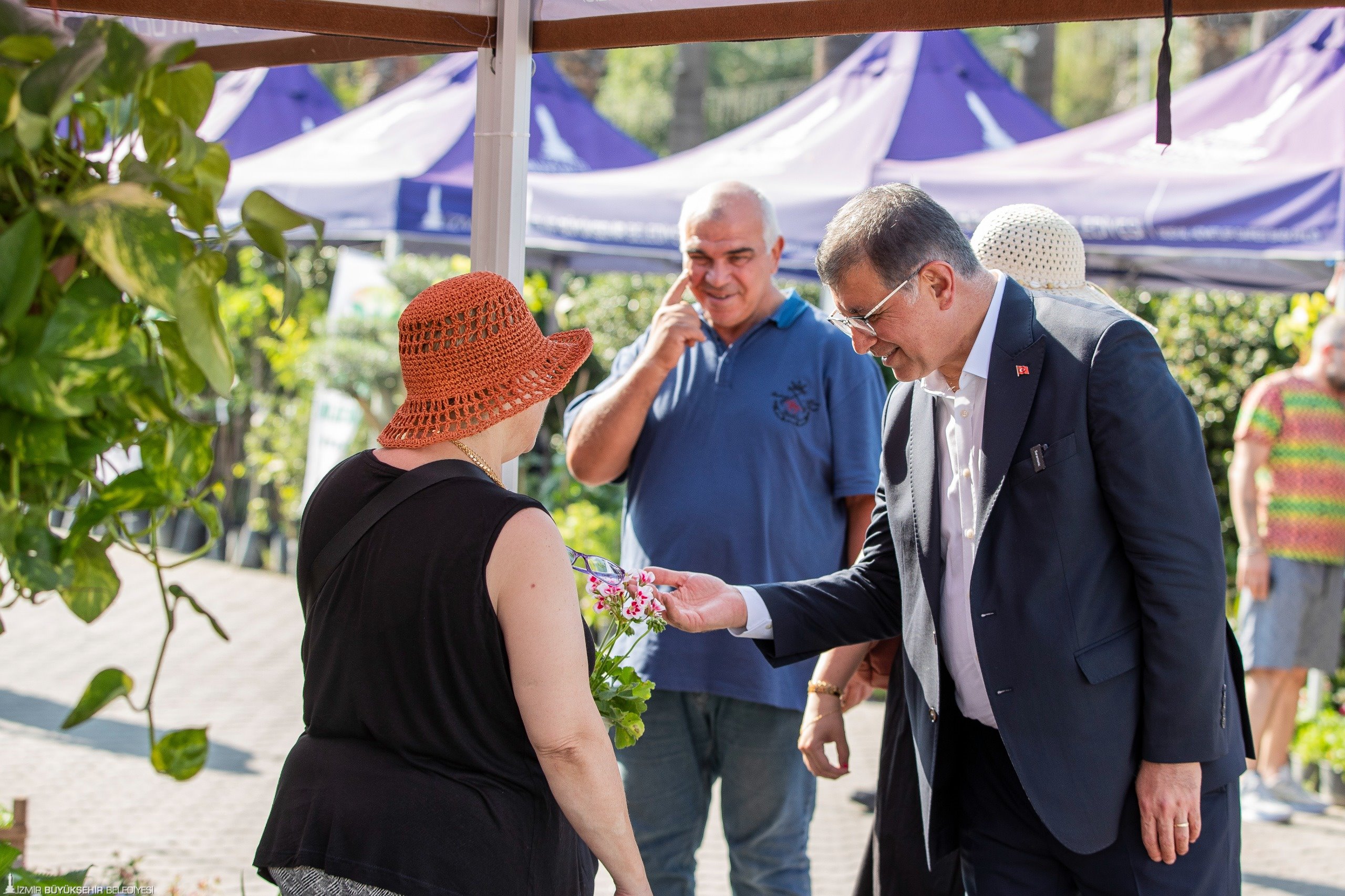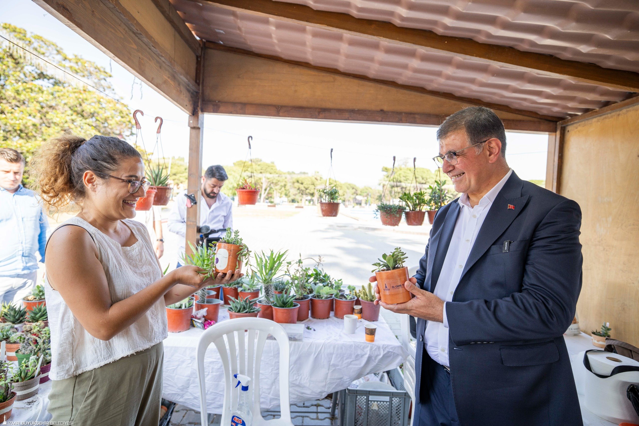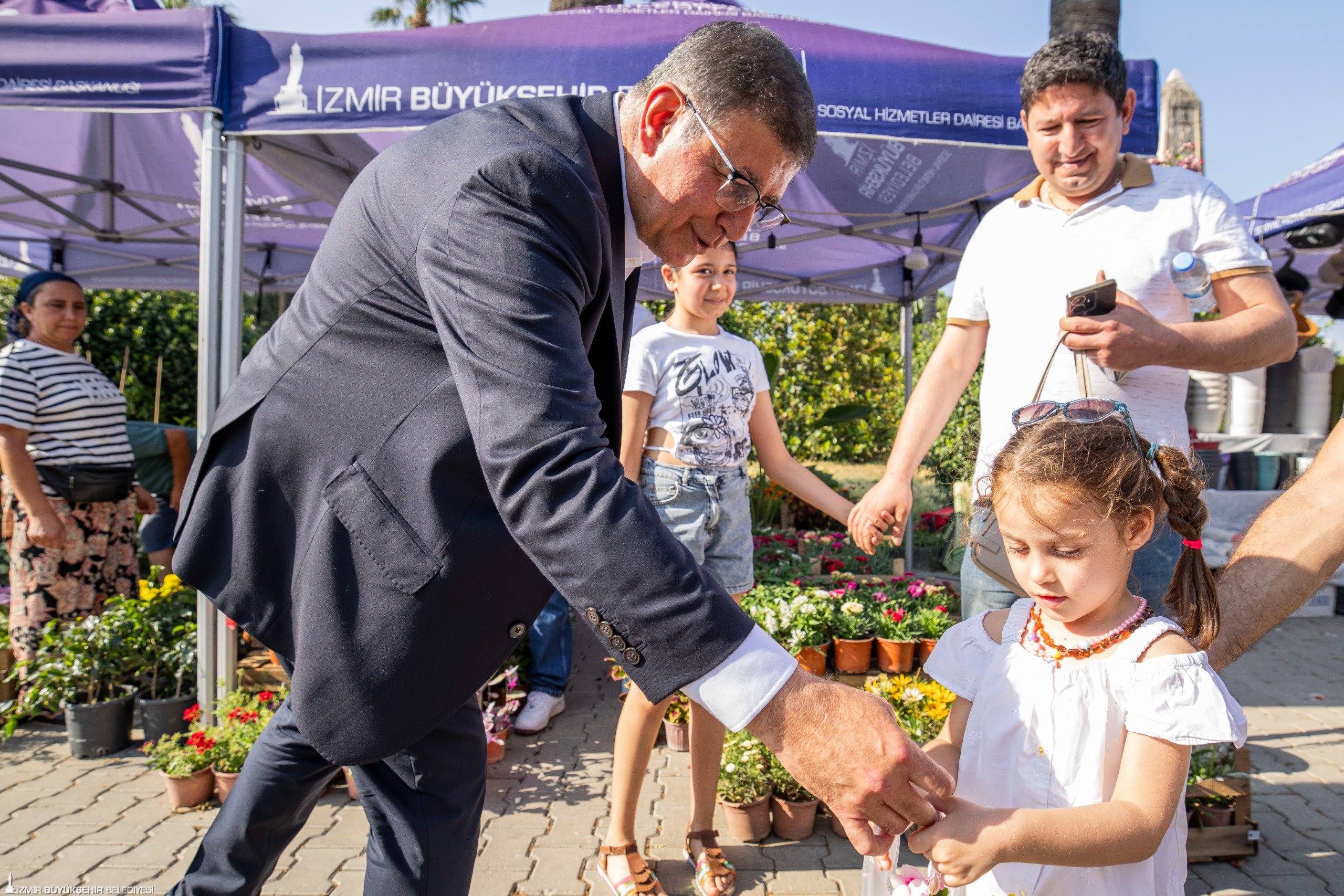 Stant gezisi sırasında 4 yaşındaki Şevval Yılmaz ve 12 yaşındaki Kumsal Göylüsü'ye çiçek hediye eden Başkan Tugay, İzmir Büyükşehir Belediyesi’nin “Güçlendirme Tohumları Projesi” kapsamında oluşturulan serada kaktüs ve sukulent bitkileri üreten üretici kadınların standını da ziyaret etti. Burada üretici kadınlarla sohbet ederek alışveriş yapan Başkan Tugay, 10 yaşındaki Ecem Akdoğan'ın sürprizi ile karşılaştı. Akdoğan, Başkan Tugay'a çiçek hediye ederek Babalar Günü'nü kutladı.
