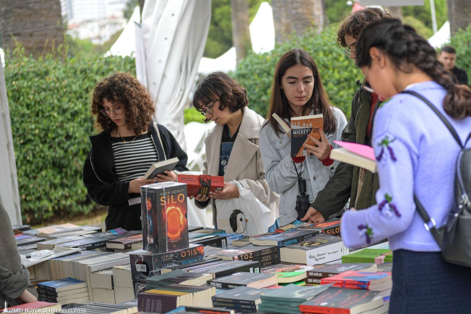 İzmir Büyükşehir Belediyesi’nin ev sahipliğinde, İZFAŞ ve TACT Fuarcılık iş birliğiyle 17-26 Ekim tarihlerinde Kültürpark’ta düzenlenen İZKİTAPFEST – 6. İzmir Kitap Fuarı’na İzmirliler ikinci gününde yoğun ilgi gösterdi. Kültürpark’ta kitapseverlerle kucaklaşan organizasyonda Türk ve dünya edebiyatının birbirinden değerli yazarları söyleşi, imza stantları ve çok sayıda etkinlik sayesinde okurlarla buluştu. 7’den 70’e İzmirliler yağışlı havaya rağmen Kültürpark’a akın ederek kitap fuarının tadını doyasıya çıkardı.