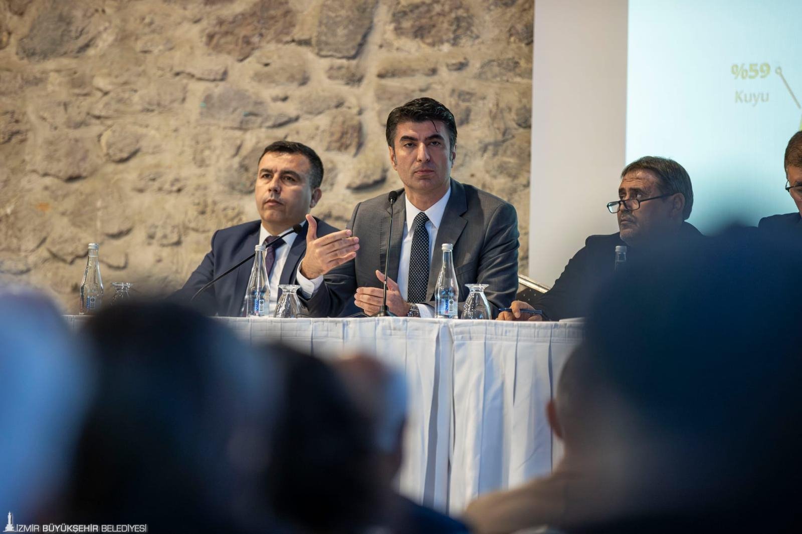 Toplantıda su krizinin yalnızca teknik bir başlık değil, aynı zamanda toplumsal ve ekonomik bir mesele olduğuna dikkat çeken İzmir Büyükşehir Belediye Başkanı Dr. Cemil Tugay, 2025 yılının beklenenden çok daha kurak geçtiğini vurguladı. Tugay, “2025 yılı hiçbirimizin öngöremediği kadar kurak bir yıl oldu. En kurak yıllardan birini yaşadık. Biz hiçbir soruna sırtımızı dönmüyoruz. Konu Devlet Su İşleri’nin sorumluluk alanında olsa da ‘bu başkasının sorunu’ demiyoruz. İzmir’in bugün bir numaralı sorunu sudur” dedi. Yer altı sularının kontrolsüz kullanımının ciddi riskler taşıdığına işaret eden Tugay, kaçak ve ruhsatsız kuyuların her geçen gün arttığını belirtti. Su tüketimindeki dağılıma da değinen Tugay, “Toplam su tüketiminin yaklaşık yüzde 10’u kentlerde içme ve kullanma suyu, yüzde 20’si sanayi, yüzde 70’i ise tarımsal sulama amacıyla kullanılıyor. Bu nedenle yalnızca bireysel tasarruf çağrılarıyla bu sorunu çözemeyiz. Tarımsal sulamada verimliliği artıracak ortak adımlara ve sizlerin desteğine ihtiyacımız var” diye konuştu.