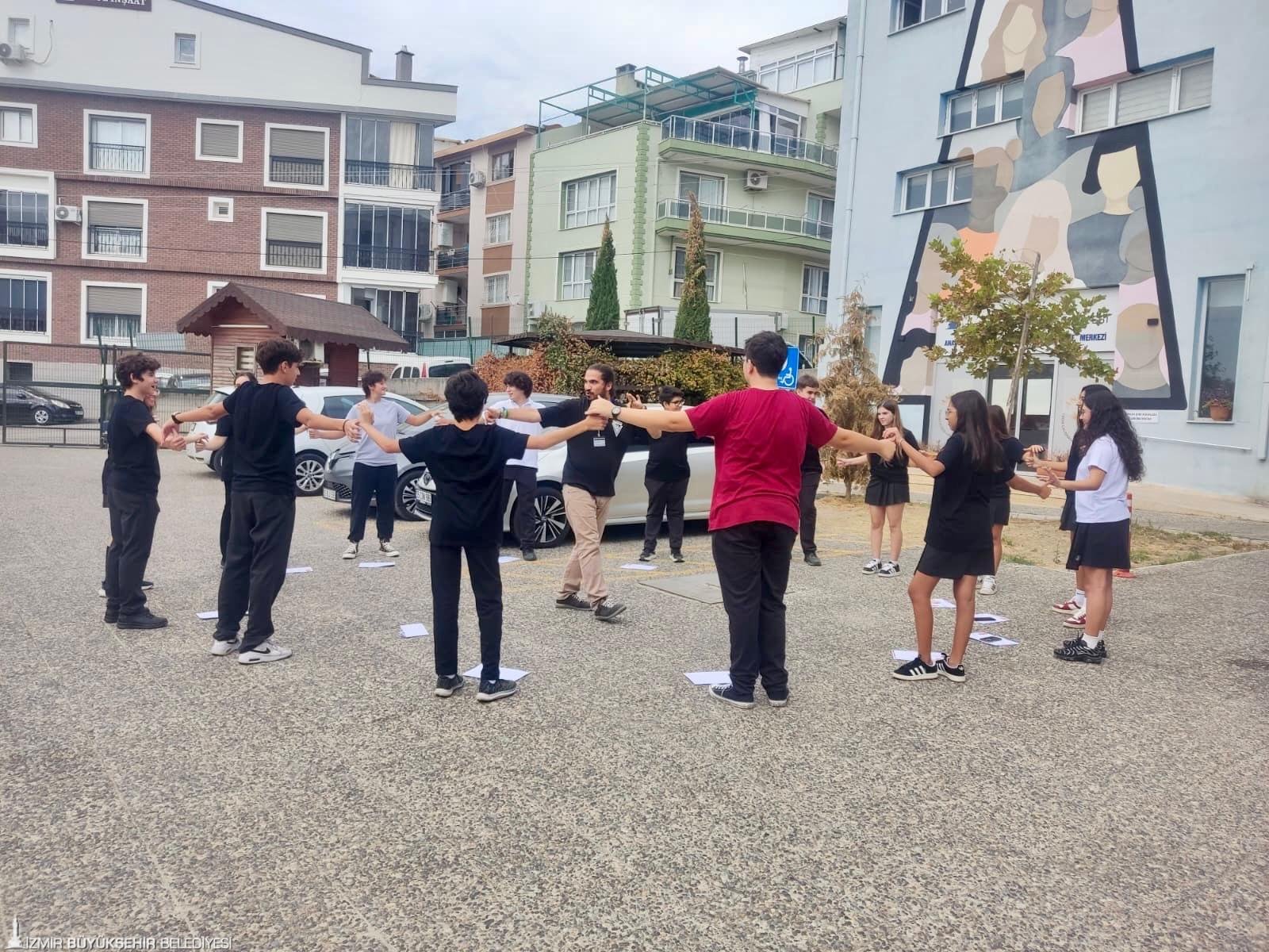 İzmir Büyükşehir Belediye Başkanı Dr. Cemil Tugay'ın, toplumsal cinsiyet eşitliği temelinde kenti kadınlar için daha güvenli, konforlu ve yaşanabilir hale getirme çalışmaları kapsamında hizmet üreten Kadın ve Aile Hizmetleri Dairesi Başkanlığı'na bağlı Kadın Çalışmaları Şube Müdürlüğü, lise öğrencilerine ev sahipliği yaptı. İzmir'de bir özel okulda eğitim gören lise öğrencileri, Örnekköy'de bulunan Kadın Dayanışma Merkezi'ndeki uzmanlar tarafından toplumsal cinsiyet eşitliği, flört şiddeti, akran zorbalığı ve dijital şiddet konularında bilgi edindi. İzmir Büyükşehir Belediyesi'nin kadınlar için ürettiği politikalar ve hizmetler hakkında bilgi aldı. Daha sonra "Buz Kırıcı Atölye" çalışmasına katılan öğrenciler, daha iyi iletişim kurma becerisi kazandı.