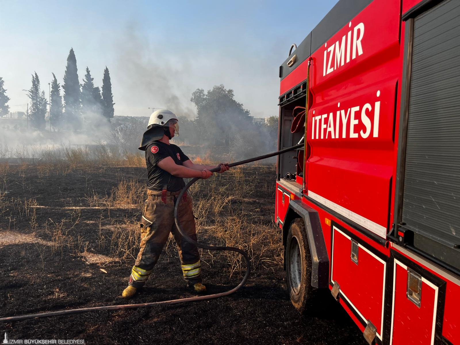 İzmir’de bugün 16.00 sularında Menemen ilçesine bağlı Maltepe Mahallesi Serbest Bölge mevkiinde ot yangını çıktı. Yangına İzmir Büyükşehir Belediyesi İtfaiye Dairesi Başkanlığı ekipleri ile İzmir Orman Bölge Müdürlüğü ekipleri hemen müdahale etti. İzmir İtfaiyesi’nin 8 araç ve 24 personelle katıldığı söndürme çalışmaları sayesinde yangın çevrede bulunan fabrikalara sıçramadan kontrol altına alındı. Bölgede soğutma çalışmaları devam ediyor.