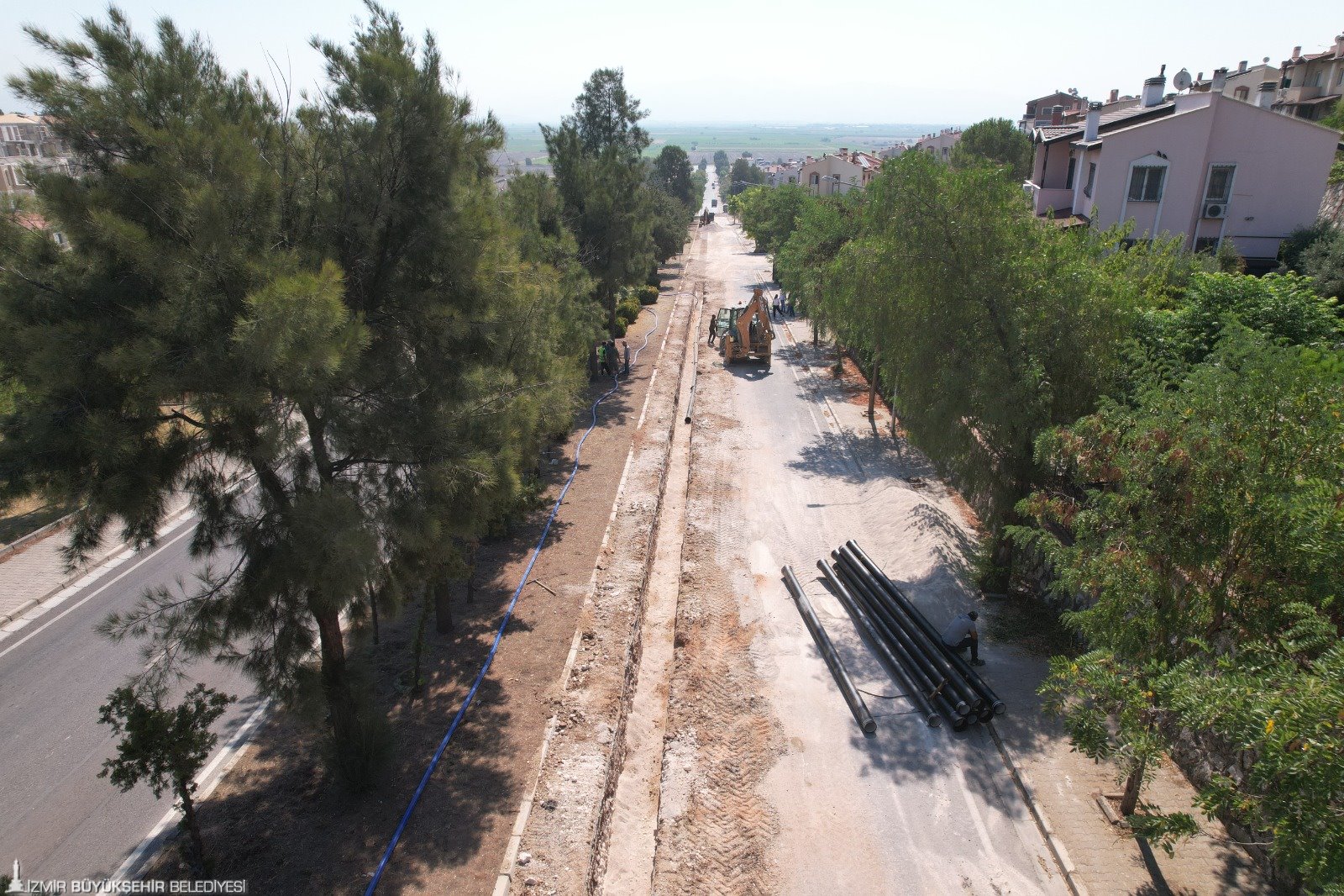 İzmir Büyükşehir Belediyesi İZSU Genel Müdürlüğü, su verimliliği yatırımları kapsamında kentin dört bir yanında ekonomik ömrünü tamamlayan içme suyu hatlarını yeniliyor. Su kayıp kaçaklarını azaltmak, hanelere kesintisiz içme suyu ulaştırmak için Menemen’de yürütülen 200 kilometrelik içme suyu hattının 150 kilometresi döşendi. İçme suyu hattının yanı sıra bölgede parke çalışmaları da devam ediyor.
