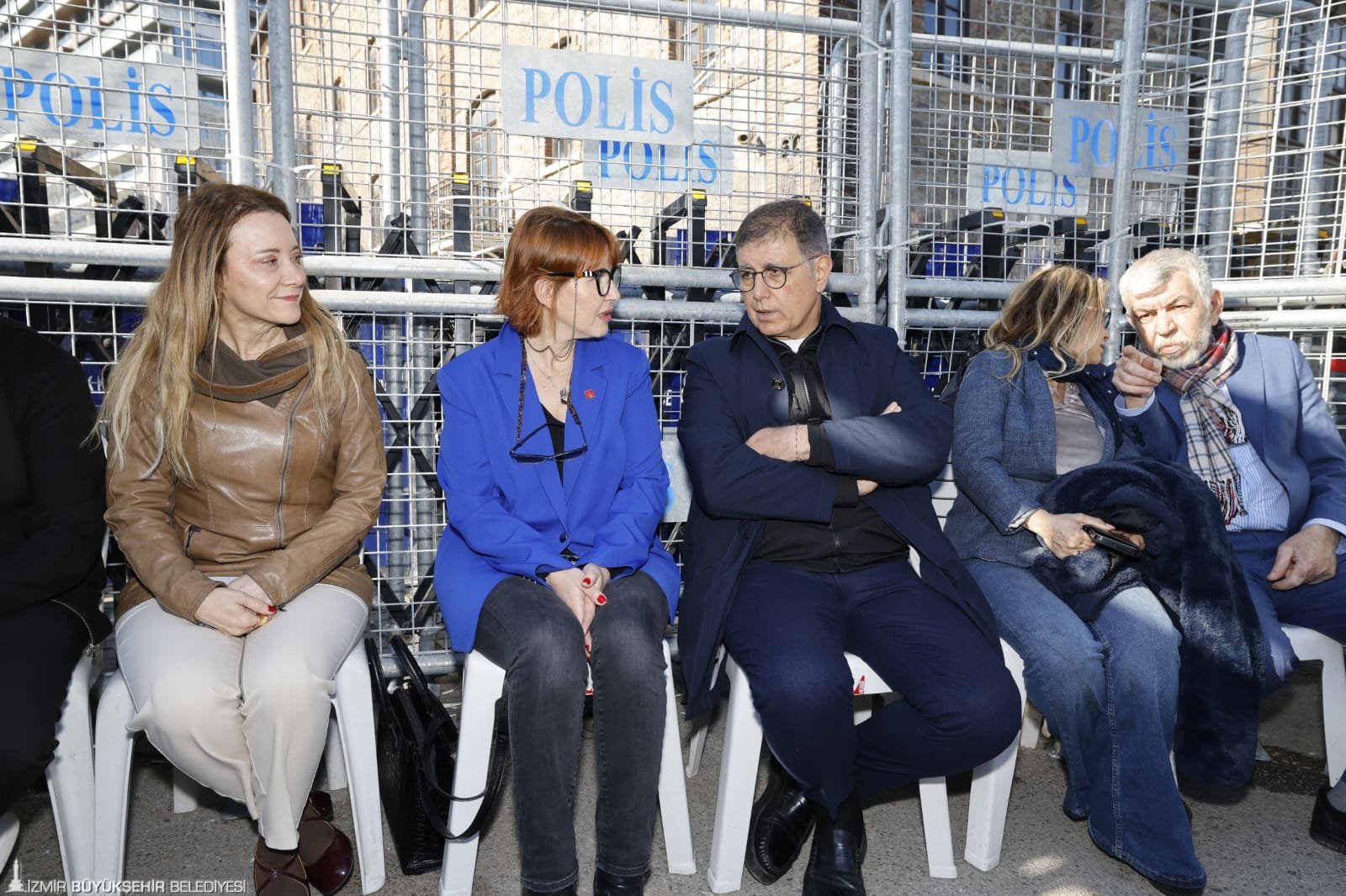 Meslek Fabrikası'nın birçok yurttaşa istihdam olanağı sağladığını vurgulayan CHP Genel Başkan Yardımcısı Güldem Atabay, “Bu sabah buraya geldim. Başkanımız Cemil Tugay'ın bu haklı davasında yanında yer almak istedim. Dayanışma için buradayız. Ben İzmirliyim. Bu binalar ben doğduğumda buradaydı. Şehir gelişirken bunların nasıl yapıldığını, belediyenin ciddi kaynaklar harcayarak burayı nasıl değiştirdiğini biliyoruz. Çok faydalı işler için kullanıldı. Genç, kadın istihdamı yaratmak için kullanıldı. Şimdi bu şekilde el konulması hem vicdanen dayanılır gibi değil, hem de hukuken doğru değil. Hukukun bir kez daha araçsallaştırılmasını doğru bulmuyoruz. O yüzden de beraberiz, beraber olmaya devam edeceğiz ve direneceğiz. Buradayız. Ne kadar gerekiyorsa da burada olacağız” dedi.