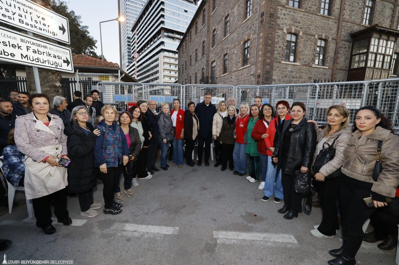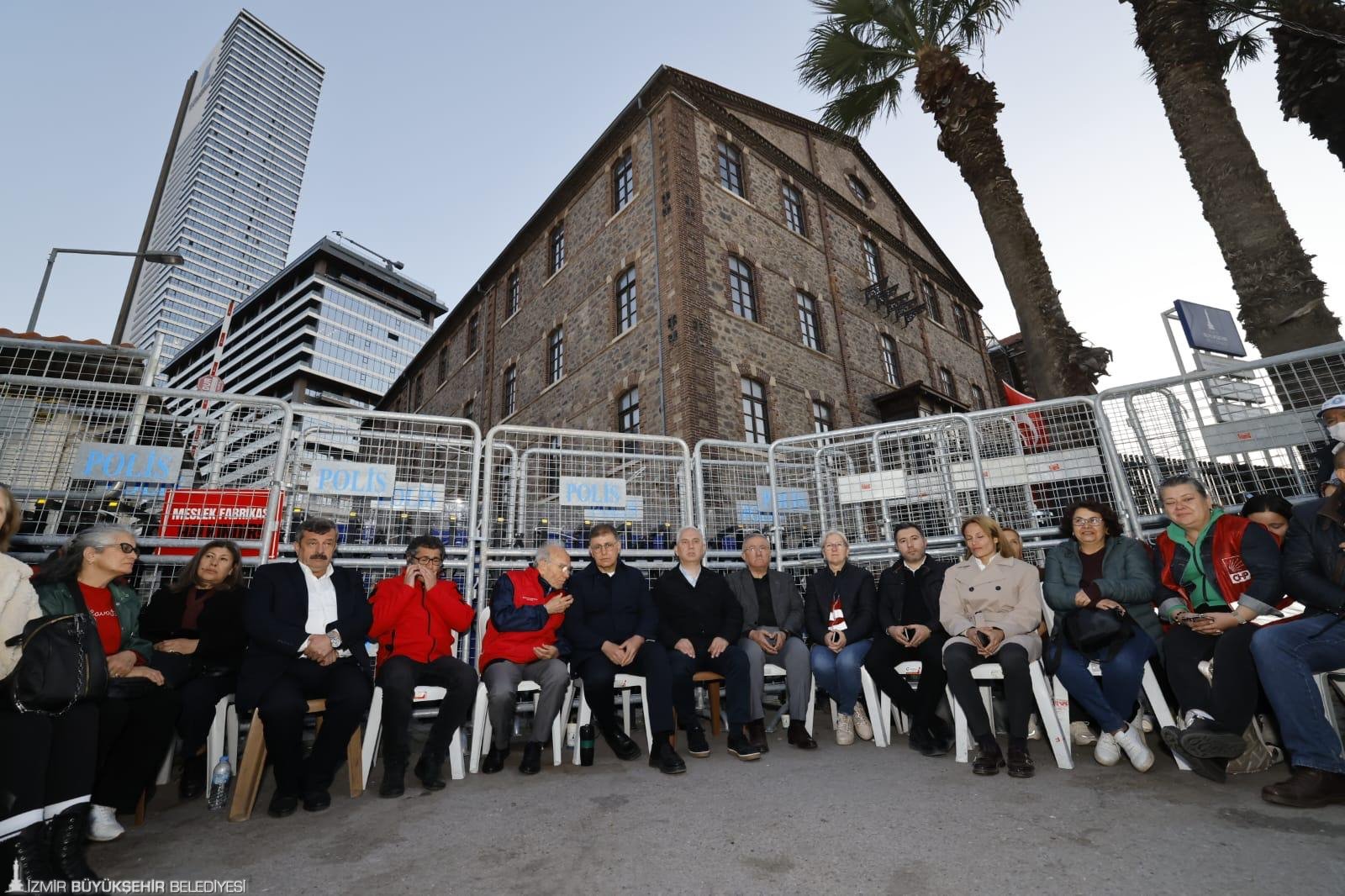 CHP Ankara Milletvekili Umut Akdoğan, İzmir Büyükşehir Belediye Başkanı Dr. Cemil Tugay'ın Meslek Fabrikası için başlattığı nöbete destek vermeye geldiklerini belirterek, hukuksuzluklara taviz vermenin, başka hukuksuz uygulamaları doğuracağına dikkat çekti. Akdoğan, “Başkan Tugay, 'Bir bina değil mi? Biz kullansak ne olur, başkası kullansa ne olur' demedi. Hem tarihi önemi bakımından hem hukuki gerekçeleri bakımından hem İzmir'in direniş ruhuna uygunluk bakımından çok önemli bir tavır sergiliyor. Biz de Cemil Başkanımızın, İzmir'in bu direnişinin, haklı mücadelenizin arkasındayız. Sizi direnişle selamlıyoruz” dedi.