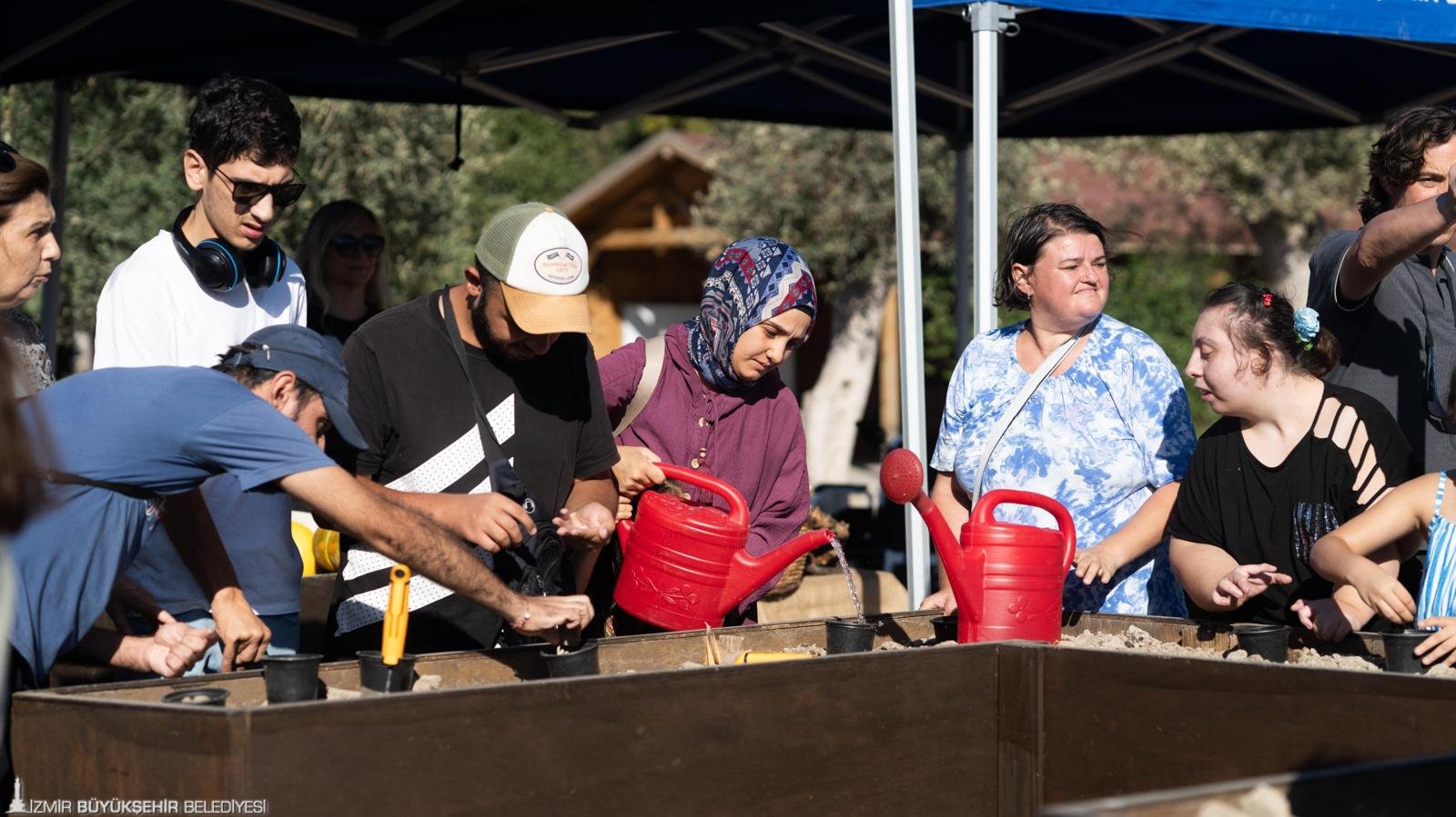 İzmir Büyükşehir Belediyesi’nin parkların daha etkin kullanılması ve İzmir’in eşsiz doğasının öğrenilerek keşfedilmesi amacıyla başlattığı Parkta Etkinlik Var projesi, hayatlara dokunmaya devam ediyor. İzmir Büyükşehir Belediyesi Park ve Bahçeler Dairesi Başkanlığı tarafından geliştirilen projenin sevilen etkinliklerinden biri olan “Tohumdan Sofraya” buluşmasında ekosistem ve toprak bilinci uygulamalı olarak tanıtılıyor. İnciraltı Terapi Bahçesi’nde düzenlenen etkinlikte İzmir Büyükşehir Belediyesi Engelli Çalışmaları Şube Müdürlüğü’nde eğitim gören otizmli öğrenciler de diğer çocuklarla kaynaştı. Çocukların birçoğu ilk kez tohumu toprakla buluşturmanın heyecanını yaşadı.