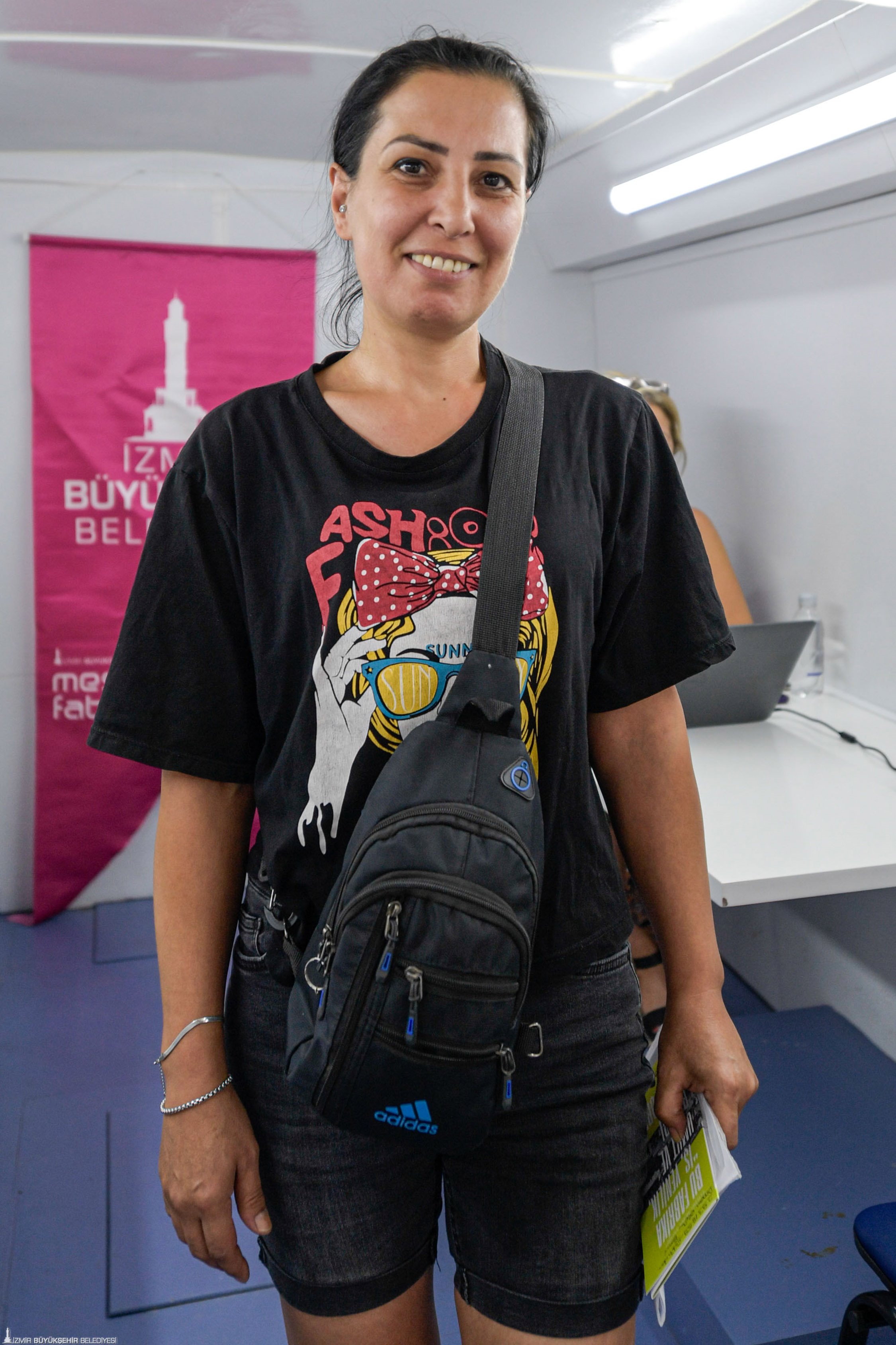 45 yaşındaki Sevda Bayındır da eşini kaybettikten sonra iş hayatına atılmak durumunda kaldığı için Mobil İstihdam Aracı’nı ziyaret ettiğini belirtti. Bayındır şöyle konuştu: “Hayat şartlarının ne kadar zor olduğu ortada. Herkes bir şekilde tutunmaya çalışıyor. Eşimi yakın zamanda kaybettiğim için çocuklarımla beraber hayat mücadelesi içindeyim. Bu yüzden buraya gelip iş başvurusunda bulundum. Bugüne kadar çalışmadım. İnsan hayatta başına neler gelebileceğini kestiremiyor. Eşimi kaybettikten sonra güvenlik sertifikası aldım. Ayrıca gelinlik işleri ile uğraştım. Şu an güvenlik, el işçiliği, çaycılık gibi işler arıyorum. Burada çok güzel bir hizmet veriliyor. Personelin yardımıyla inşallah herkes gönlüne göre bir iş sahibi olur. Böyle bir hizmeti bizlere sunduğu için İzmir Büyükşehir Belediye Başkanımız Cemil Tugay’a çok teşekkür ediyoruz.”
