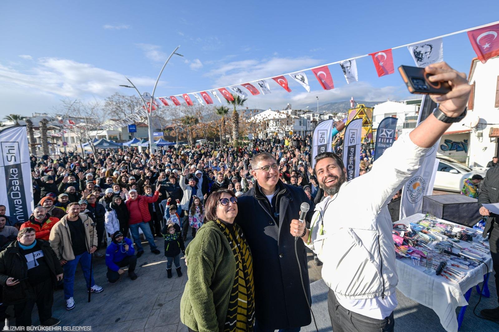 Vatandaşlar tarafından büyük ilgiyle karşılanan Başkan Dr. Cemil Tugay, yarışma alanında kurulan stantları gezerek balıkçıları selamladı ve başarılı bir yarışma diledi. Yarışmanın startını veren Başkan Tugay, “İnanılmaz keyifli ve mutluyum. Karaburun, Mordoğan inanılmaz güzel bir yer. Avın spor amaçlı, spor ruhuyla yapılan bir etkinlik olduğunu görüyorum. Bu ruhu taşıyan herkesi tebrik ediyorum. İzmir'e her zaman centilmenlik, iyilik ve güzellik yakışmıştır. Bu etkinlik daha fazla insan tarafından duyulsun diye biz de elimizden gelen katkıyı vermeye çalıştık. Herkese başarılar diliyorum. Levrek bahane dostluk şahane” diye konuştu.