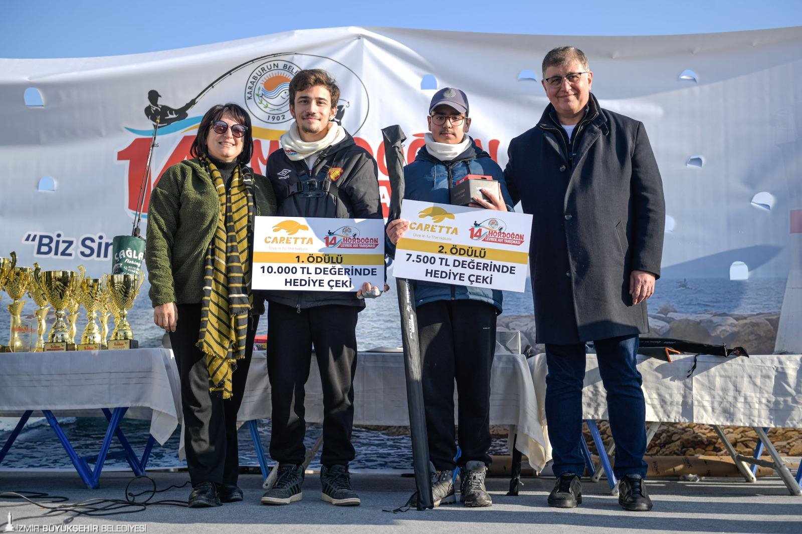 Levrek kategorisinde levrek tutulmadığı için baraküda tutan 2 kişi ödülün sahibi oldu. Başkan Tugay; birinci olan Atakan Duman ve ikinci olan Yağız Kesici'ye ödüllerini verdi. Kategoride geri kalan 3 ödül, katılanlar arasından çekilişle belirlendi. Kalamar ve LFR avı kategorilerinde de ödüller dağıtıldı.