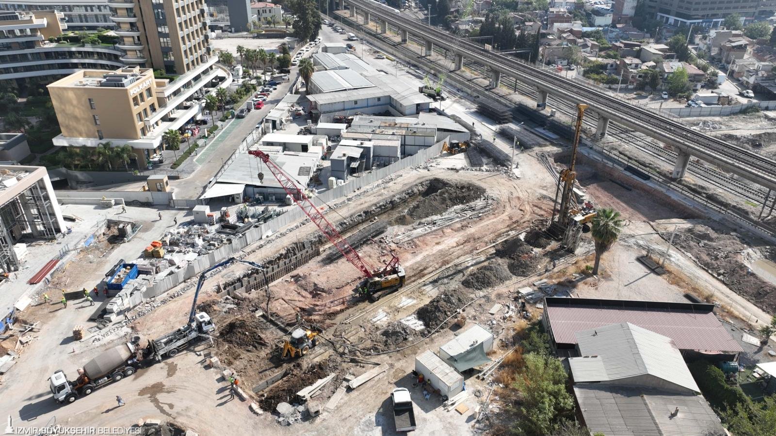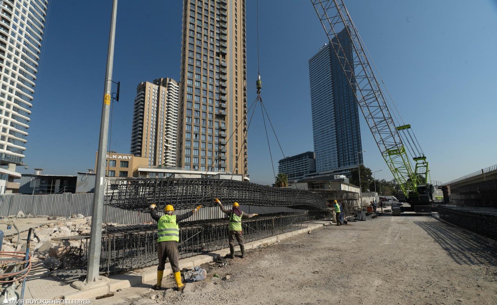 Halkapınar Mahallesi’nde süren çalışmalar ile ilgili bilgi veren İzmir Büyükşehir Belediyesi Fen İşleri Dairesi Başkanlığı Yol Üst Yapı Şube Müdürlüğü Şefi Okan Demir, “Gıda Çarşısı ile Mürselpaşa Bulvarı arasından geçmekte olan tren ve metro hattının altından bir karayolu geçişi sağlayarak bu bölgedeki ticaret merkezleri ile Gıda Çarşısı’nı birbirine bağlamayı amaçlıyoruz. İmalatlarda yüzde 26 seviyesindeyiz. 311 diyafram duvarının 140’ını, 30 kuyu temel imalatının 4’ünü tamamlandık. Gıda Çarşısı tarafında temele beton döküyoruz. Mürselpaşa Bulvarı tarafında diyafram duvarı yapımımız devam ediyor. Çok sayıda araç ve 50 personelimizle çalışmaları en kısa sürede tamamlamak için çalışıyoruz” şeklinde konuştu.