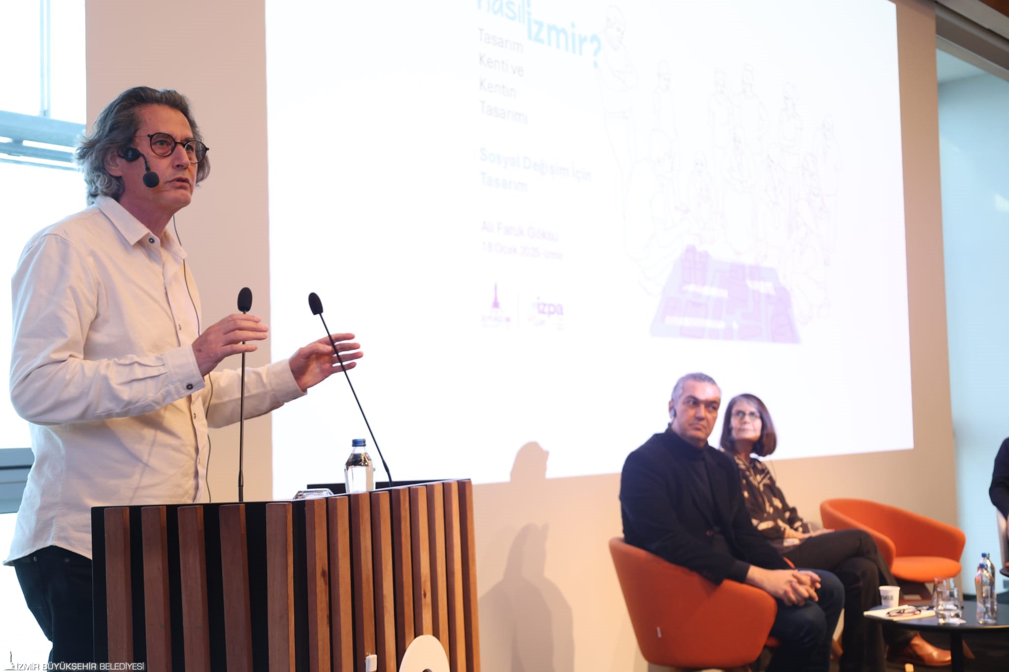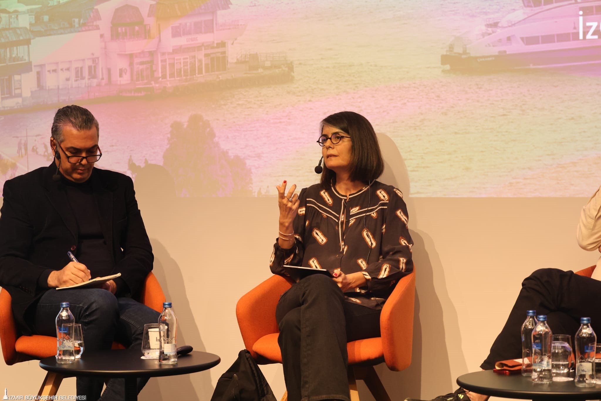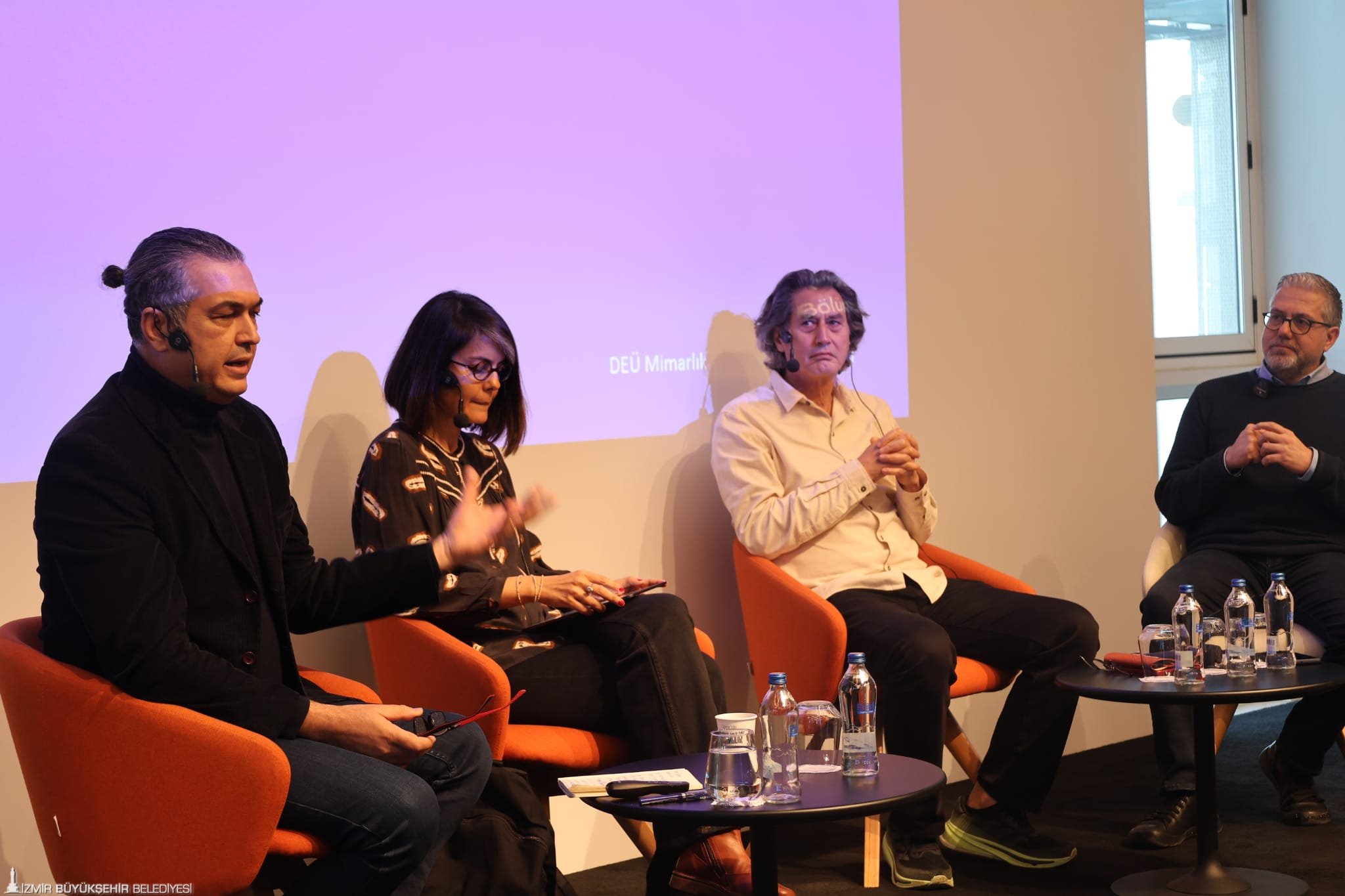 “Tasarım Kenti ve Kentin Tasarımı” başlıklı panelin ilk konuşmacısı Dokuz Eylül Üniversitesi Öğretim Üyesi Deniz Güner, 20. ve 21. yüzyılda İzmir’e dair gerçekleştirilen planlama girişimlerini odağına alan bir sunum yaptı. İzmir’in 1922 yangını, 1929 ekonomik buhranı, mübadele ve dünya savaşlarının olduğu dönemde molozlar içinde yaşayan bir kent olduğunu, bu durumun ise Kültürpark’ın kurulması ile değiştiğini vurguladı. İzmir’in tasarım ithal eden bir kent olmaktan çıkarak zamanla bir ‘tasarım kenti’ halini aldığını ve tasarım ihraç etmeye başladığını ifade eden Deniz Güner, toplumsal cinsiyet ve feminist bakış açısıyla mimarlık ve şehirciliğe, böylece kadınlar için güvenli kentler oluşturulmasına büyük ihtiyaç duyulduğunu belirtti.