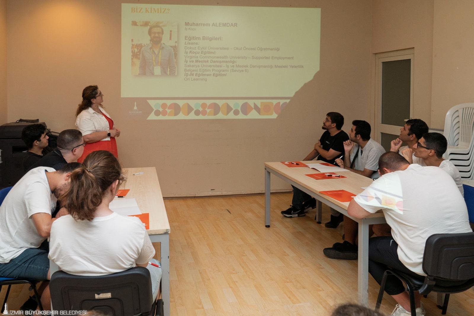 İzmir Büyükşehir Belediyesi Destekli İstihdam Ofisi, kentte yaşayan nöroçeşitli bireyler için istihdam olanağı sağlanması ve iş koçluğu hizmeti verilmesi için çalışmalarını sürdürüyor. Özellikle otizmli ve zihinsel engelli gençler ve aileleri için önemli bir hizmet yürüten Destekli İstihdam Ofisi, gençleri istihdam etmenin yanı sıra onları iş hayatına hazırlamak için de farklı bir çalışma yürütüyor. Bu kapsamda Dr. Gülser Vardarcı Kacar tarafından geliştirilen İŞ İN eğitimleri, Destekli İstihdam Ofisi’nde 2. grup dersleri ile devam ediyor. Gençlerin sosyal, iletişim ve işe uyum becerilerini geliştirmeyi amaçlayan programda iş koçları eşliğinde özgeçmiş hazırlama, iş arama süreci, iş hayatında nasıl davranılması gerektiği, mail atma, iş yeri kuralları gibi kapsamlı bir eğitim veriliyor. İki aylık eğitimi tamamlayacak gençler, sertifikalarını aldıktan sonra iş hayatına atılmaya hazır hale gelecek. İŞ İN’e kayıt ve bilgi için 0232 293 98 34-35 numaralı telefondan ya da destekliistihdam@izmir.bel.tr adresinden ulaşım sağlanabiliyor.