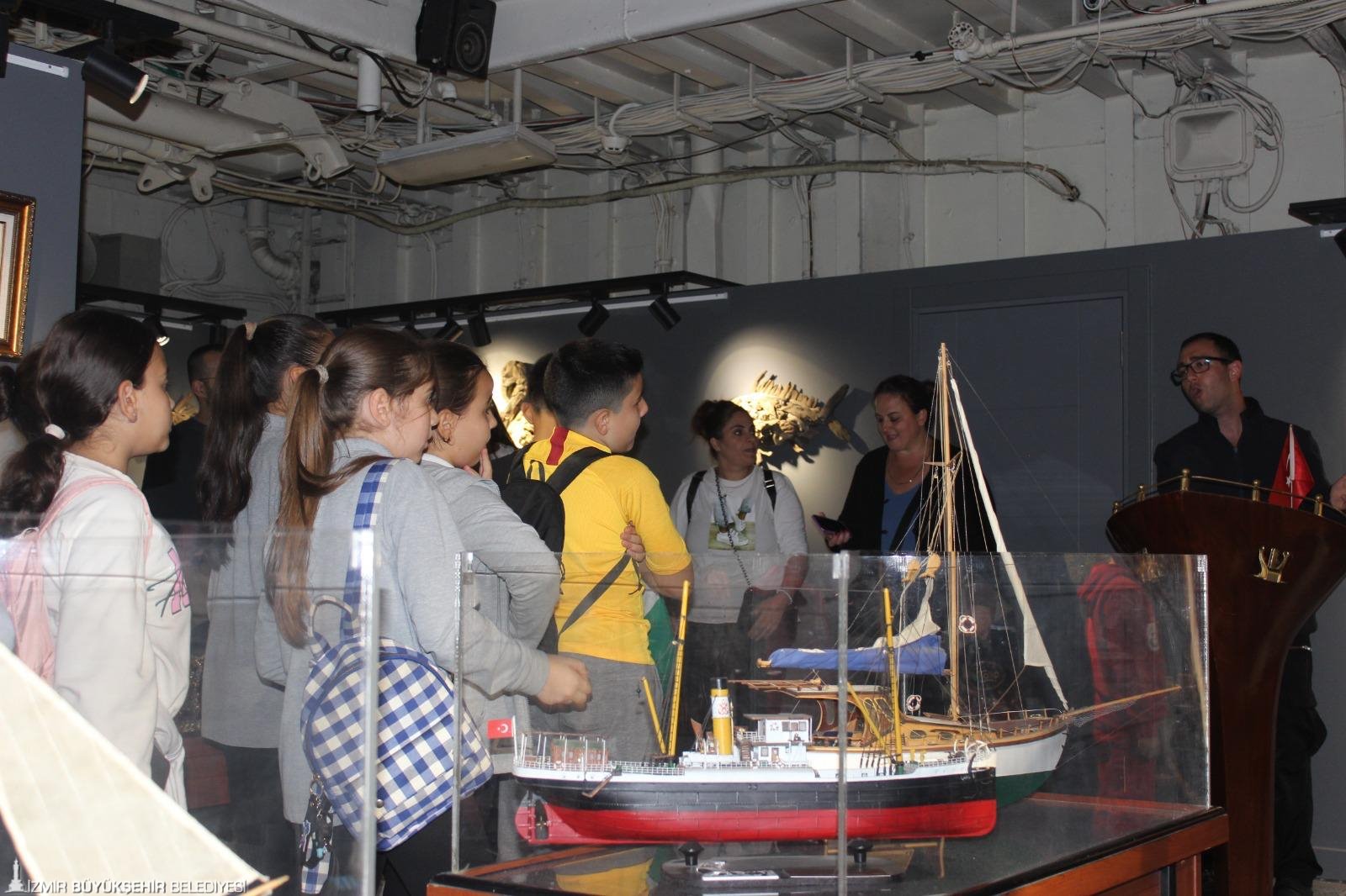 İzmir Büyükşehir Belediyesi, İzmir Müze Gemiler Müdürlüğü iş birliğiyle 4. ve 5. sınıf öğrencilerine yönelik Geri Dönüşüm Atölyesi ve Gemi Müzesi gezisi düzenledi. İzmir Büyükşehir Belediyesi Gürçeşme İngilizce Speaking Club öğrencilerinin katılımıyla gerçekleştirilen etkinliğe veli ve öğretmenler de katıldı. Öğrenciler hem öğretmenleriyle ve birbirleriyle konuşarak dil pratiğini geliştirdi, hem de karton, kil gibi geri dönüştürülebilir malzemeler ile yapılan atölye çalışmasına katıldı. Ayrıca, öğrencilerin motor becerilerinin ve sosyal etkileşim becerilerinin desteklenmesine yönelik çeşitli uygulamalar yapıldı. Etkinlik kapsamında, İzmir Müze Gemiler Müdürlüğü tarafından sunulan “Denizcilik Kültürü ve Denizci Ustalar Sergisi” de ziyaret edildi. Bu sayede öğrencilerin denizcilik tarihine ve kültürüne dair farkındalık kazanmaları sağlandı.