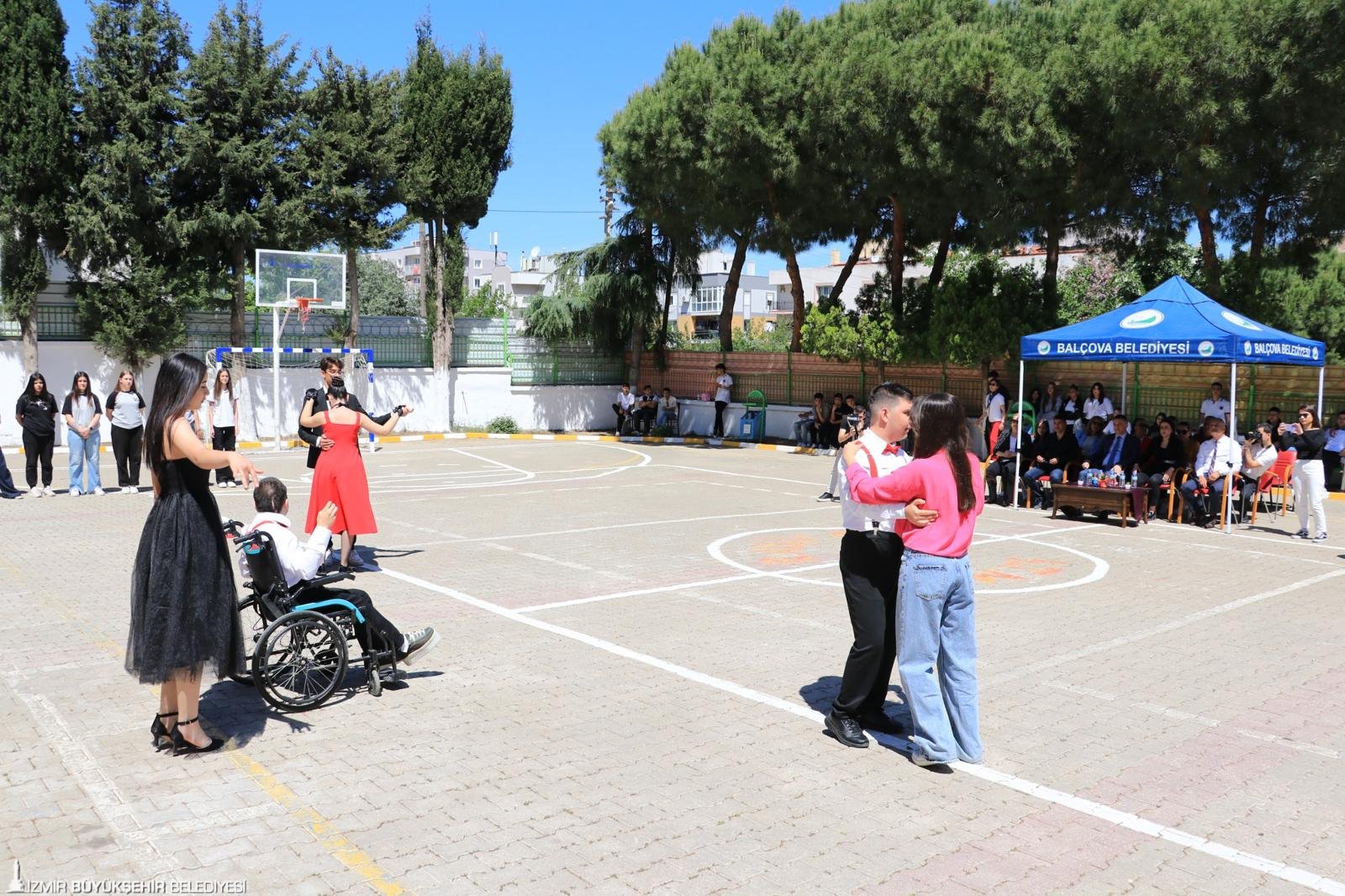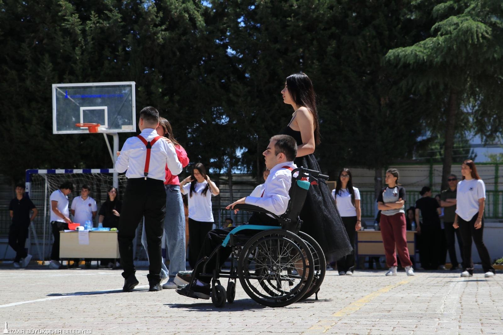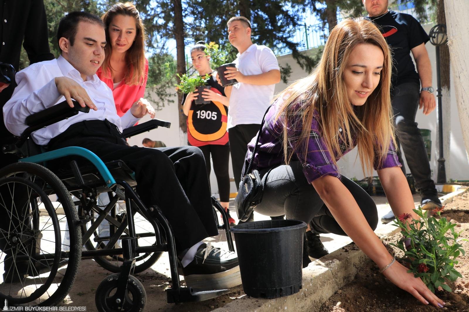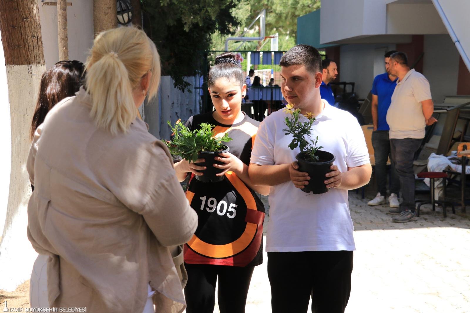 İzmir Büyükşehir Belediyesi Sosyal Hizmetler Dairesi Başkanlığı Çocuk Çalışmaları ve Eğitim Destekleri Şube Müdürlüğü ekipleri, Narlıdere'de bulunan Rasim Önel Ticaret Mesleki ve Teknik Anadolu Lisesi'nin Engelliler Haftası kapsamında düzenledikleri gösteriye katıldı. Bu anlamlı günde, öğrencilerin isteği üzerine Park ve Bahçeler Dairesi Başkanlığı'nın desteğiyle okulun bahçesine piknik masası da kazandırılarak çocuklar için güzel anılar biriktirebilecekleri özel bir alan oluşturuldu. Ayrıca alana çiçek dikildi. Buluşmaya Engelli Çalışmaları Şube Müdürlüğü'nden eğitim danışmanları da katıldı.