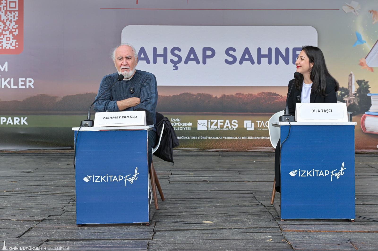 İzmir Büyükşehir Belediyesi tarafından düzenlenen İZKİTAP – 6. İzmir Kitap Fuarı’nın onur konuğu yazarı Mehmet Eroğlu, Dila Taşçı moderatörlüğünde düzenlenen “Mehmet Eroğlu’nun 50 Yılı Aşkın Edebiyat Serüveni” başlıklı söyleşide okurlarıyla bir araya geldi.