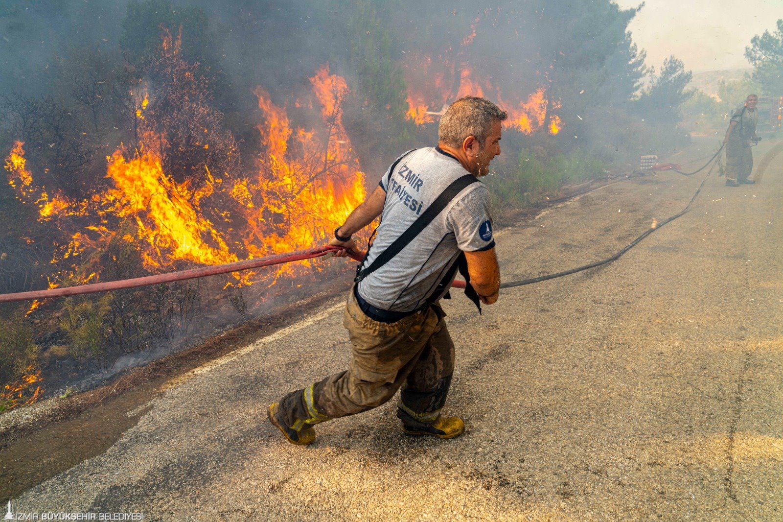 32 yıldır İtfaiye Dairesi Başkanlığı’nda görev yaptığını belirten İtfaiye Yangın ve Acil Müdahale Şube Müdürü Aydın Mutlu da bu yıl üst üste çok büyük yangınların çıktığını anımsatarak, “Yangınların biri bitmeden diğeri başladı. Tüm yangınlar farklı noktalarda çıktı. Özellikle Çeşme’deki yangında rüzgar bizi çok zorladı. Yerleşim yerlerini korumak için elimizden geleni yaptık. Bizim şehir itfaiyesi olarak öncelikle yerleşim yerlerini tehdit eden bölgelerde tedbir almamız gerekiyor. Orman yangınları, Orman Genel Müdürlüğü’nün sorumluluğunda. Fakat biz hiçbir zaman ‘Burası bizim konumuz, orası bizim konumuz değil’ demedik. Tüm yangınlara müdahale etmeye çalıştık. Bizim üzerinde durmamız gereken asıl konu, bu yangınların çıkmasını önlemek. Yangının çıkmaması için alınması gereken tedbirleri anlatmamız lazım. Yangınlar, büyük hasara neden oldu. Fakat şu da bilinmeli ki kurtardığımız çok yer var” dedi.
