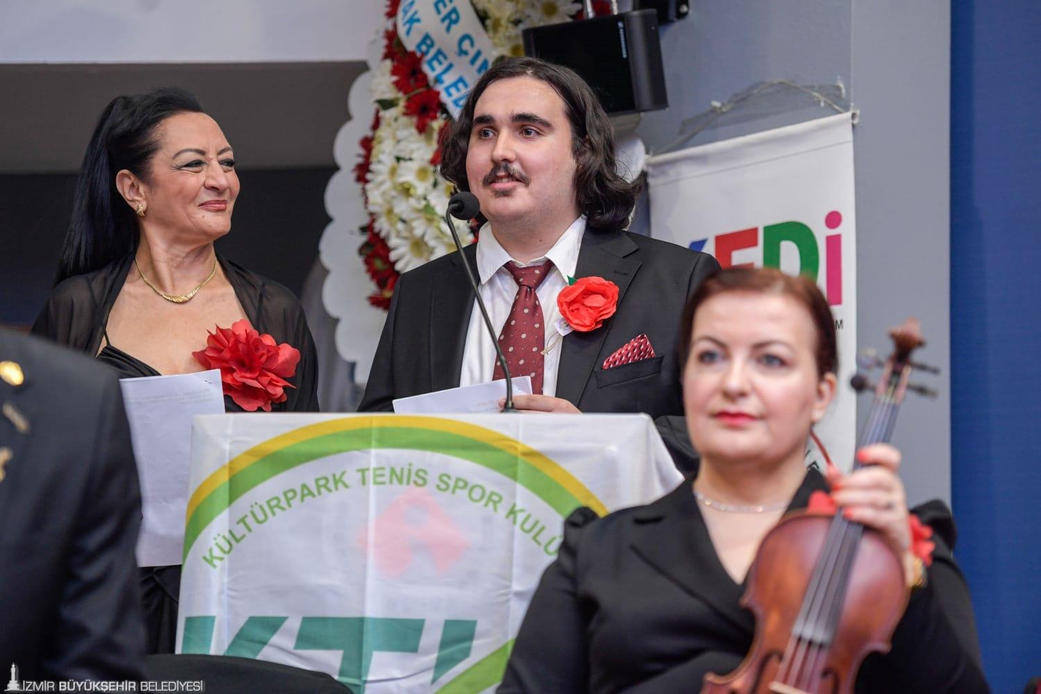 Kültürpark Tenis Spor Kulübü Korosu, Otizme Farkındalık Konseri ile dinleyicilere unutulmaz bir akşam yaşattı. İzmir Büyükşehir Belediyesi, Kültürpark Tenis Spor Kulübü ve KEDİ Otizm Derneği iş birliğiyle Ekonomi Üniversitesi Konferans Salonu’nda düzenlenen konserde, en güzel şarkılar farkındalık için seslendirildi. Bu yıl otizme dikkat çekmek amacıyla kırmızı rengin tercih edilmesi nedeniyle koristler kırmızı giysiler giydi. Ayrıca hem koristler hem de katılımcılar, yakalarına otizmli çocuklar tarafından hazırlanan kırmızı güller taktı. Koroda, otizmli korist Cem Vardarcı ile annesi Gülçin Vardarcı da yer aldı. Konserin sunuculuğunu üstlenen Mehmet Atalay Sağlık, atipik otizm tanısı bulunduğunu ve öğrenimini İzmir Katip Çelebi Üniversitesi Sosyal ve Beşeri Bilimler Fakültesi Tarih Bölümü’nde tamamladığını belirtti. Sağlık, “Sizler sayesinde farkımız ve farkındalığımız daha gür bir sesle daha fazla insana ulaşacak” dedi.