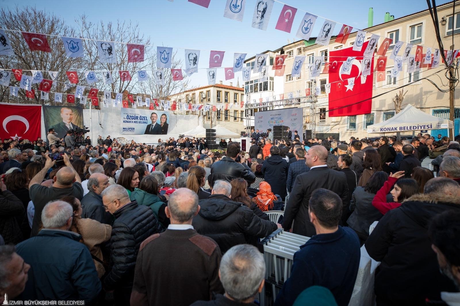 Belediyelerin SGK borçlarından bahseden ve İzmir Büyükşehir Belediye Başkanı Dr. Cemil Tugay'ın yanında olduğunu belirten Özel, “Kendisi gemileri denetlemiyor, izin istedik vermiyor. Körfez'i temizleme görevi bakanlıkta; yapmıyor. İzmir'i kokutuyor, sonra gelip onun da hesabını Cemil Tugay'dan sormaya kalkıyor. O da ben olsam yapmam belediyenin bütçesinden milyarlar harcayıp körfezi temizliyor. Vallahi de billahi de İzmir'deki kokudan; kokuşmuş AK Parti zihniyeti mesuldür, başkası değil. Ama belediyenin parasıyla körfezi temizleyen biziz. Onun aç bıraktığı yoksul bıraktığı insanlara sosyal yardım yapan biziz, yakacak yardımı yapan biziz, çocuğunun beslenme çantasını dolduran biziz, öğrenciye çorbayı veren biziz, okul sütü projesini yapan biziz, hoş geldin bebek diyen biziz, ilacını, mamasını sağlayan biziz. Bunlar yapılınca, CHP'li belediyelerden altı aylık memnuniyet yüzde 58 çıkınca, 'aman bunları durdurun'. Buradan Tayyip Erdoğan'ı bir kez daha uyarıyorum; sen 31 Mart'ta vatandaşın gönlünden düştün. Çok çalışırsın sen de kent lokantası, Hoş Geldin Bebek, Anne Kart, kreş, yurt yaparsın vatandaşın gönlüne girersin. Ama bu yaptığınla belediye arabasının tekerine çomak sokarak, arkadan gelip Cemil Tugay'a, CHP'li belediyelere çelme takarak, hasetlikle, 'ben yapamıyorum onlar da yapamasın' deyince düştüğün gönle giremezsin, vatandaşın gözünden düşersin. Gönlünden düşen gönüle girer ama vatandaşın gözünden düşen bir daha gözüne asla giremez” dedi.