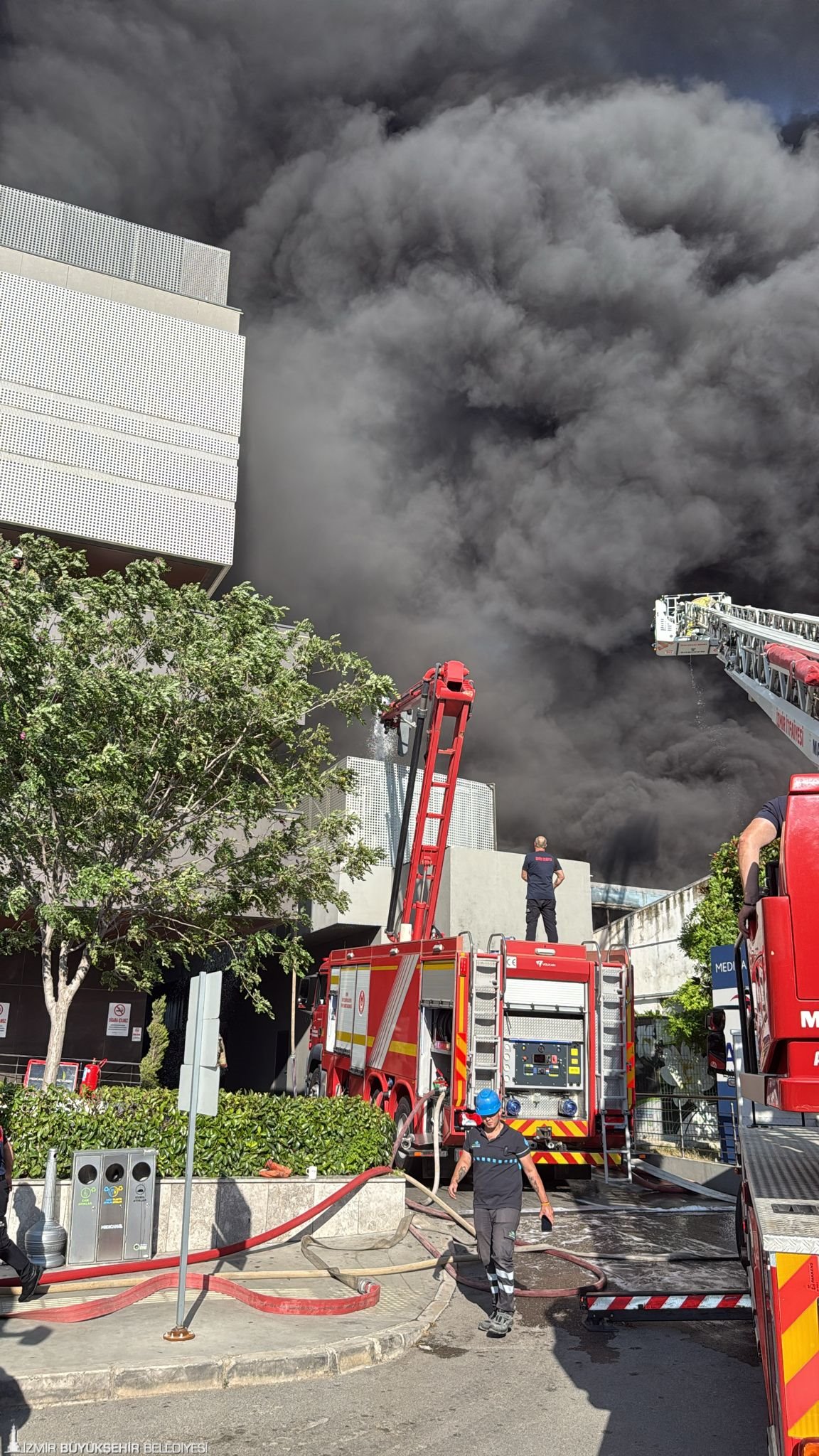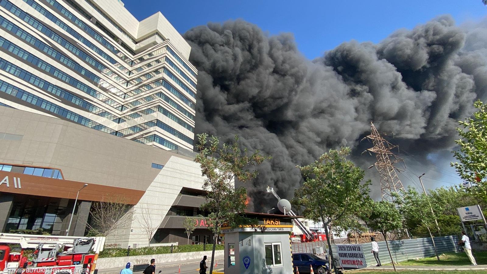 İzmir İfaiyesi'nin Medicana Hastanesi'ne yakın plastik fabrikasında çıkan yangına müdahalesi sürüyor. 16.57'de fabrikada ot yangını olduğuna dair ihbar alan ekipler adrese gittiğinde yangının depolarda olduğu belirlendi. 16 itfaiye aracı, Park Bahçeler ve İZSU ile ilçe belediyelerinden gelen su tankerleri ile yangına müdahale ediliyor. Ayrıca Aliğa bölgesinden 7 arazöz, 3 tonajlı araç, 2 endüstriyel tipi yangın söndürücü araç ile 3 merdivenli araç bölgeye gönderildi. Ekipler yangının hastaneye sıçramaması için mücadele verdi. Yangının hastaneye sirayeti önlendi. Önlem amaçlı hastanedeki hastalar tahliye edildi. İZBAN seferlerinde ise kısa süre yaşanan sinyalizasyon sorunun çözüldüğü ve seferlerin normal şekilde devam ettiği bildirildi.