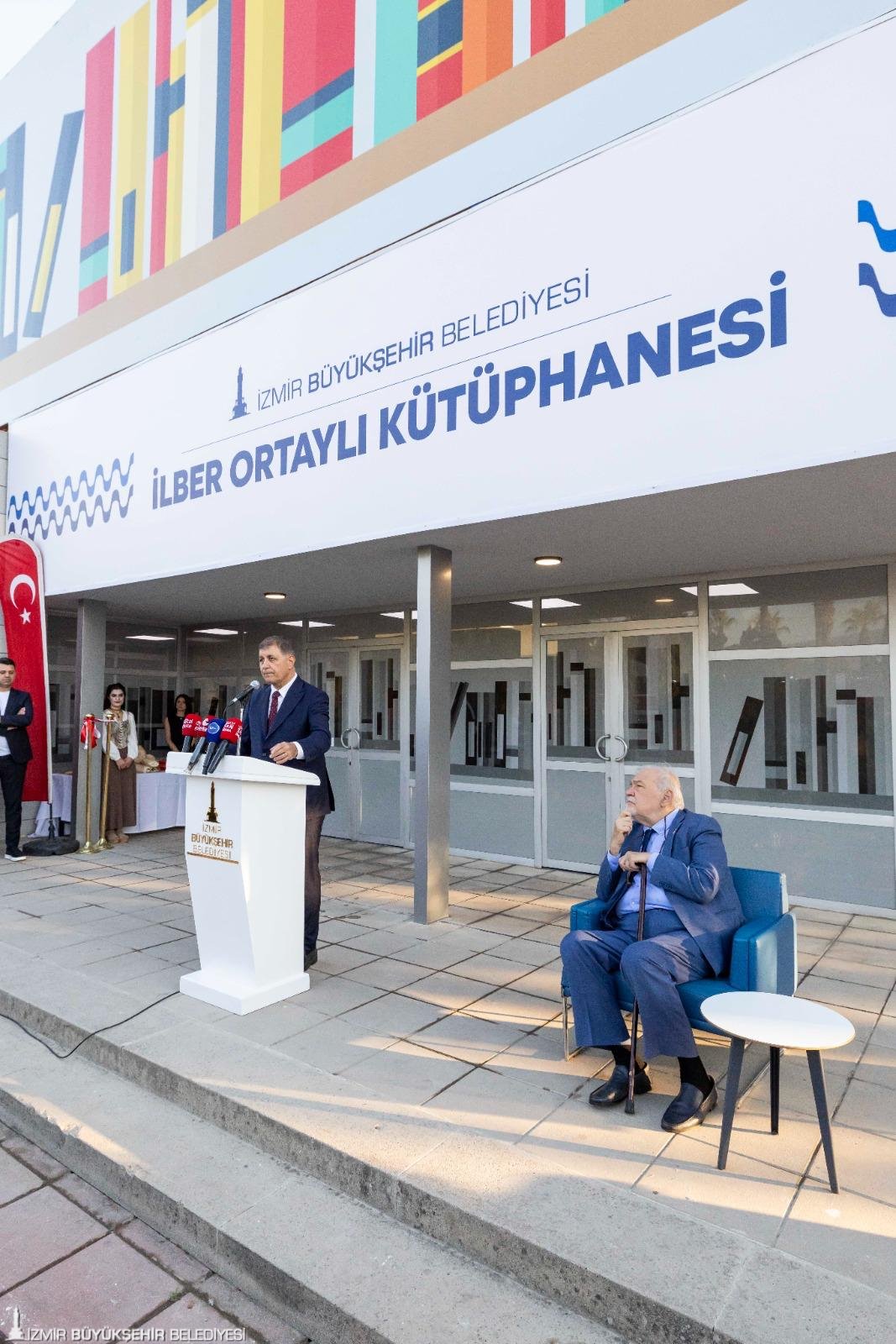 Açılış töreninde konuşan Prof. Dr. İlber Ortaylı da kütüphaneye isminin verilmesinden dolayı çok mutlu olduğunu dile getirdi. İzmirli olmasa da 1963 yılının eylül ayında bir dönem İzmir’de bulunduğunu ve o dönem İzmir’ine dair gözlemlerini anlattı. Ortaylı, “Burada herkes birbiriyle kolay diyalog kuruyordu. Giyim kuşam farklıydı ama kütüphane yoktu. Kemeraltı’nda bir kitabevi vardı. Zamanla okuma gelişti. Bugün kütüphaneler açılıyor. O yıllarda burada gezerken adımla bir kütüphane açılacağını söyleseler ‘Kafayı yiyorum herhalde, doktora gideyim’ derdim. Kabiliyetli milletin bazı şeylerden mahrum yaşaması hoş değil. Onu inşallah telafi edeceğiz. Bu millet kütüphaneleri hak ediyor” dedi.